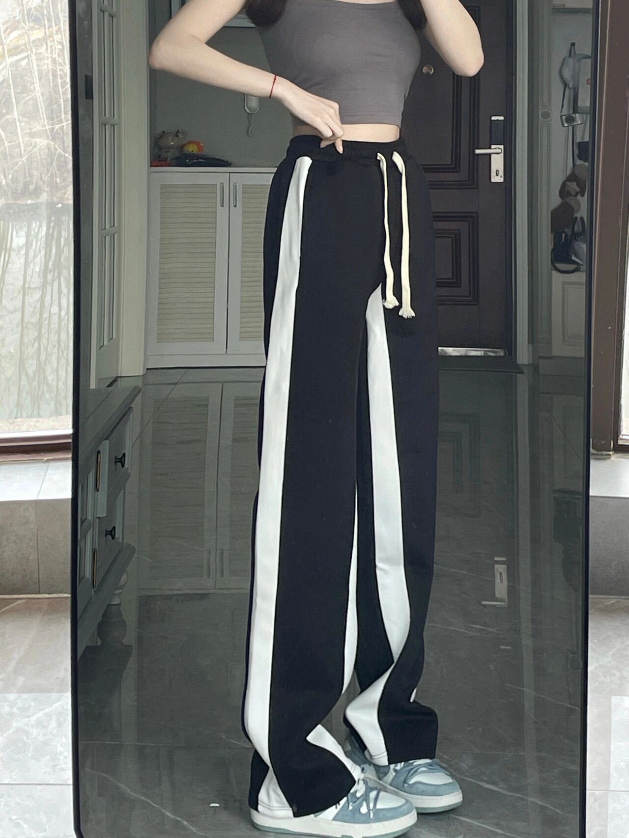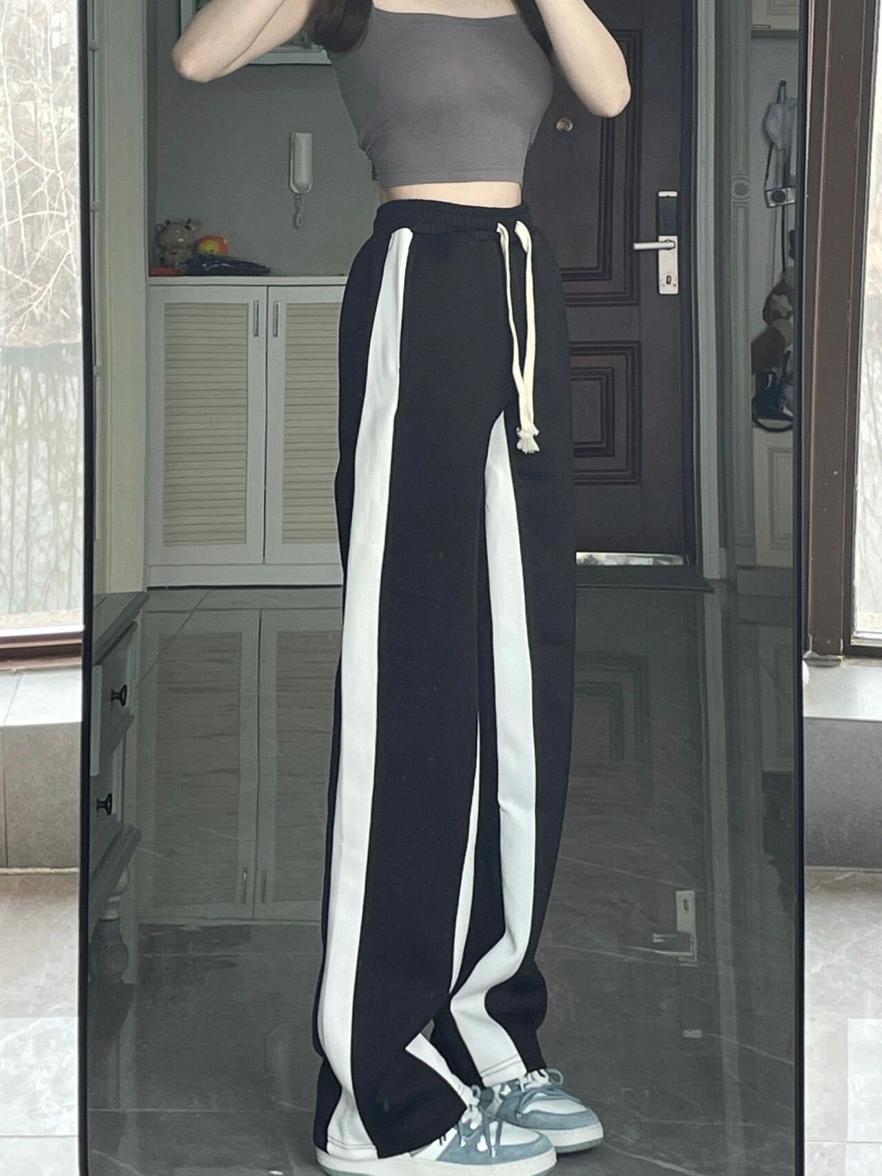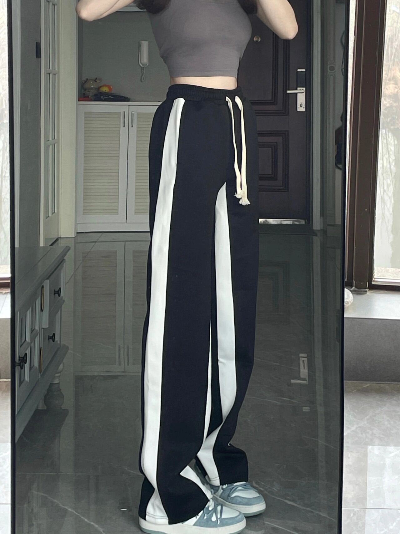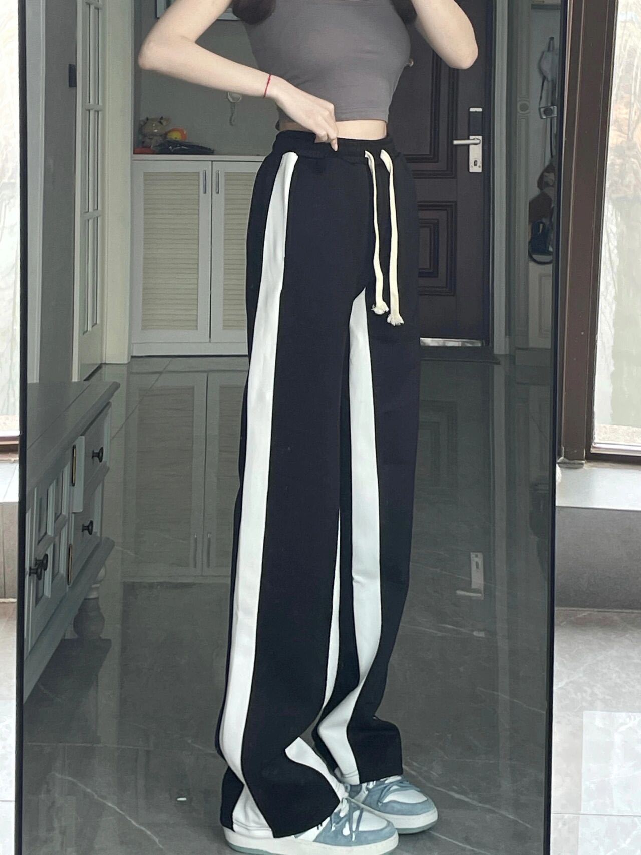 Pantalones casuales de tela de alta calidad 250g para mujer, pantalones de primavera, holgados, de cintura alta, rectos, adelgazantes, de pierna ancha