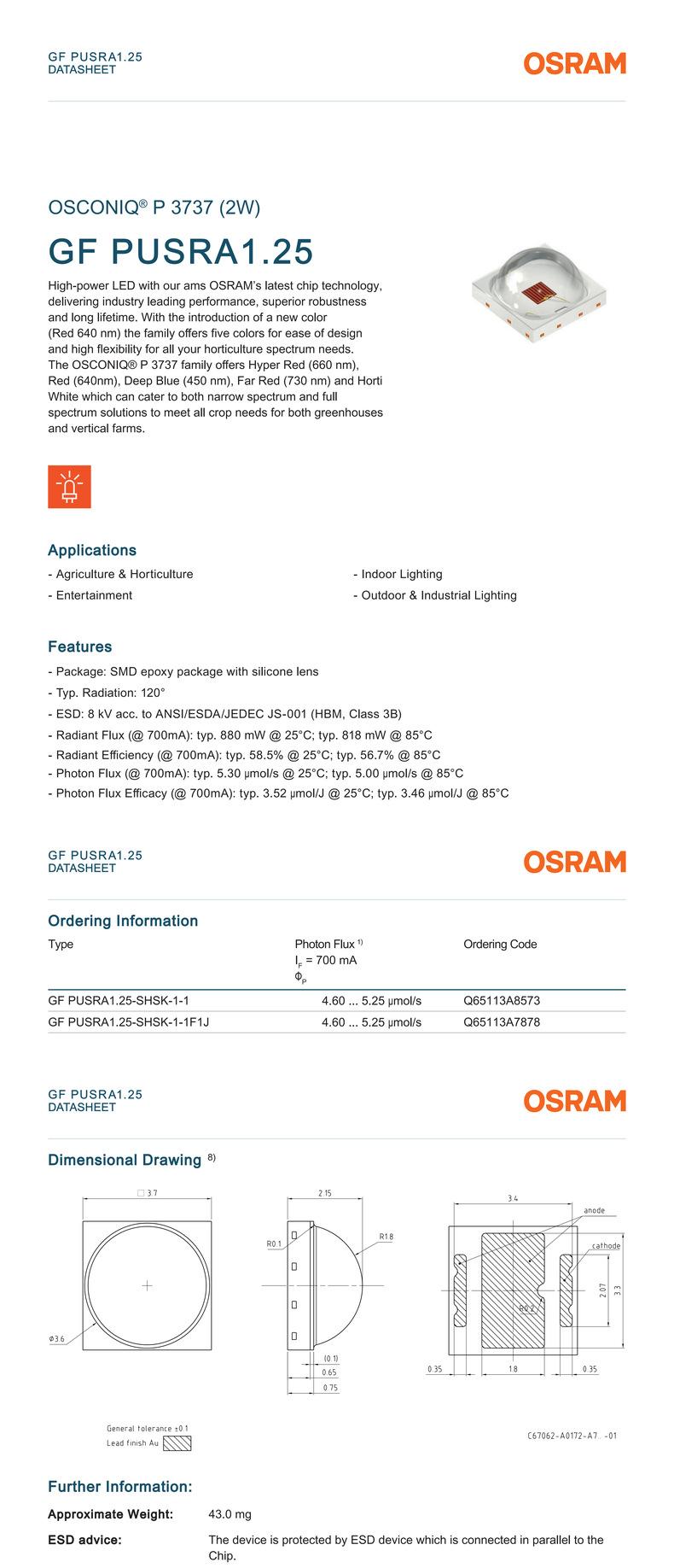 OSRAM Cuentas de Luz de Color P83737GFPUSRA1253W5W Rojo 730nmOSRAMOSCONIQ3737