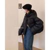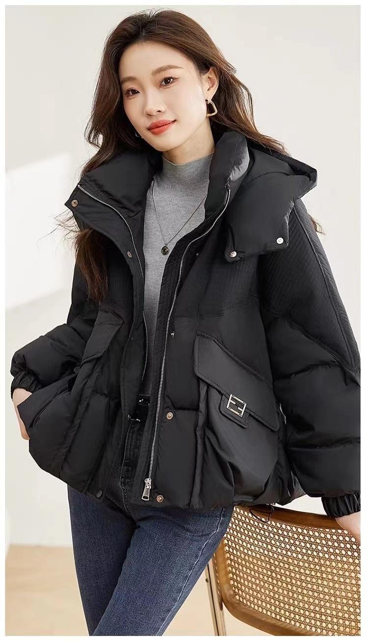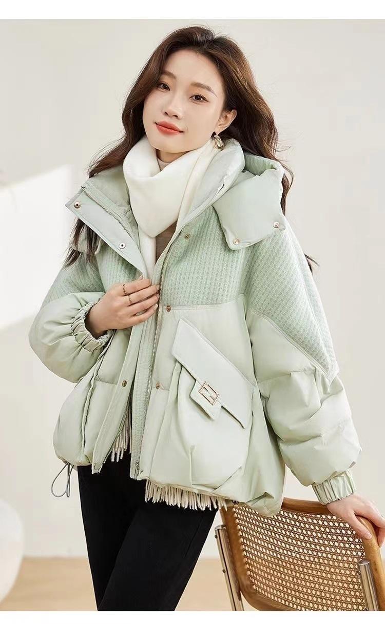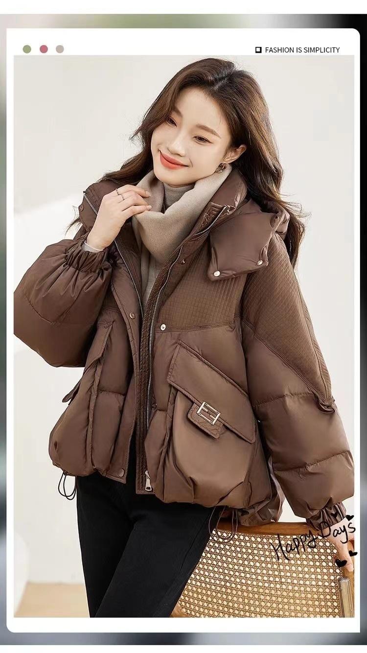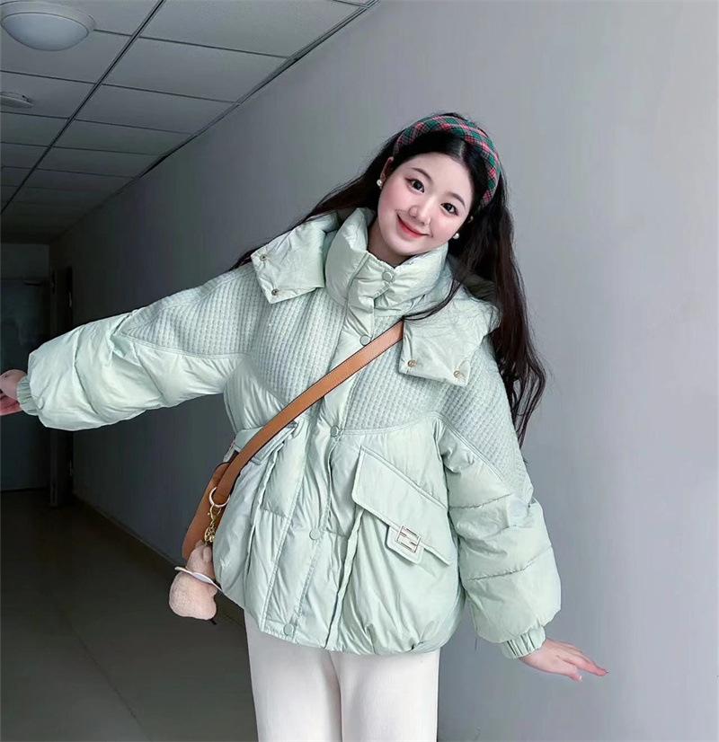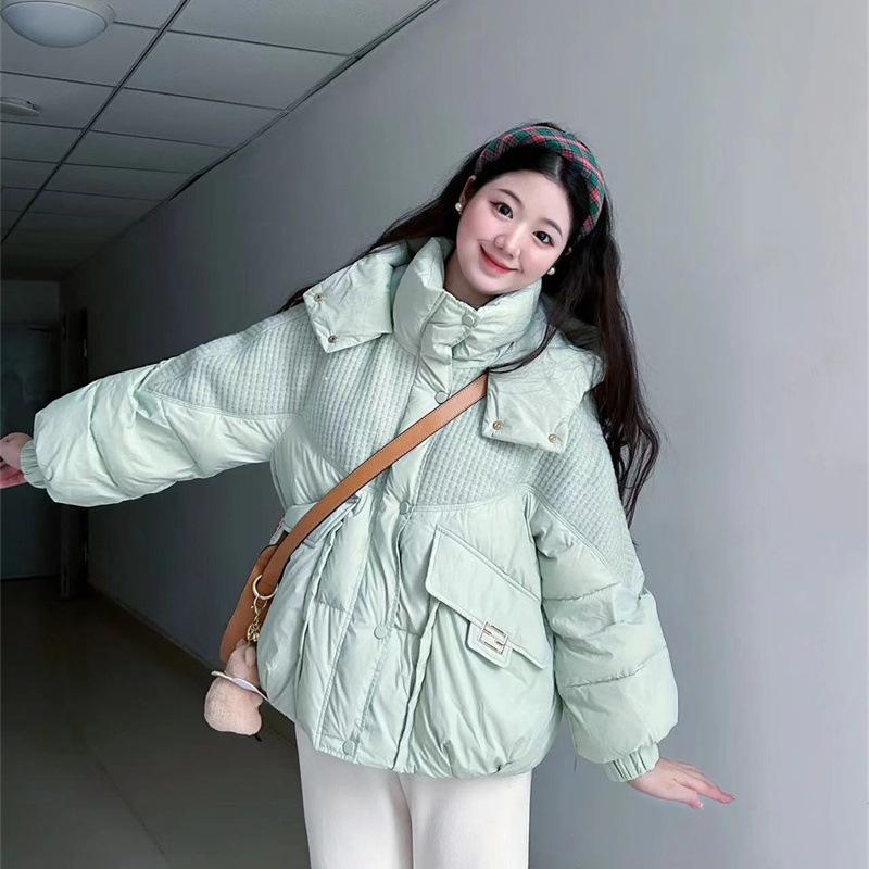 Chaqueta acolchada de algodón blanca, corta, nueva, holgada, gruesa, cálida, de invierno, para mujer de baja estatura, con capucha gruesa.