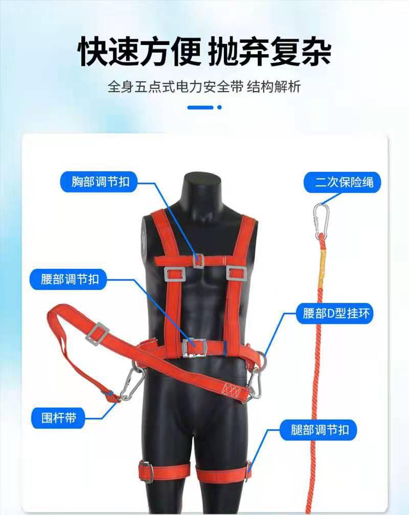 Double claws + 2 straps + 2 foot straps + blue double safety belt + protective rope (3.6kg)