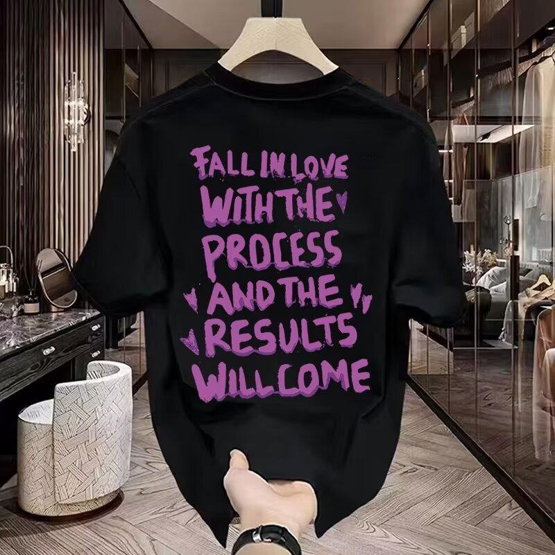 Camiseta de Manga Corta con Letra Personalizada Estampada para Hombre y Mujer 2024 Verano Nuevo Creativo Casual Top de Pareja
