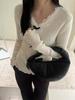 Suéter de Punto de Lana con Cuello en V y Lazo de Encaje para Mujer 2024 Otoño e Invierno Nuevo Estilo Francés Color Sólido Top Camisa Base Ajuste Delgado