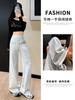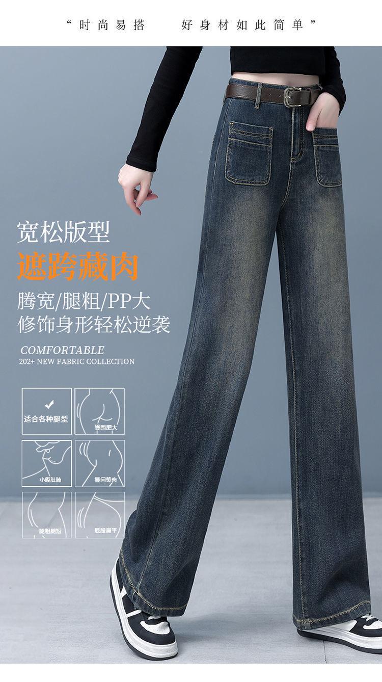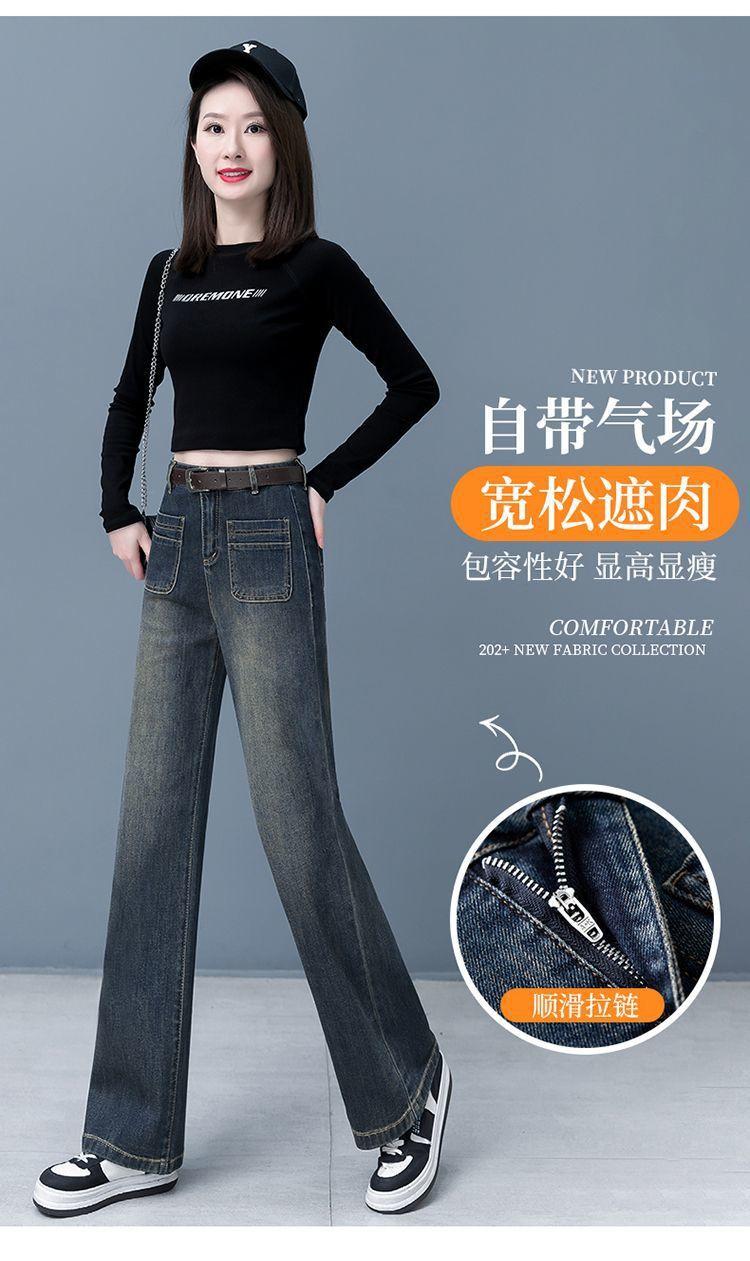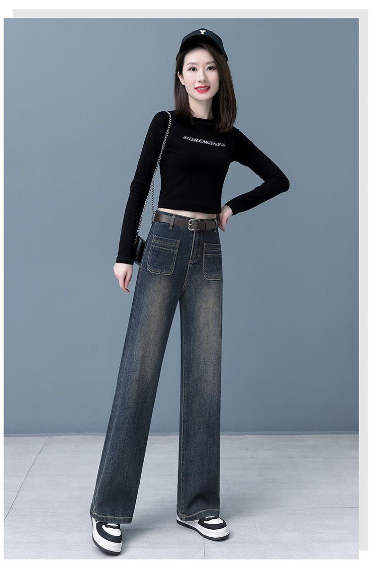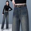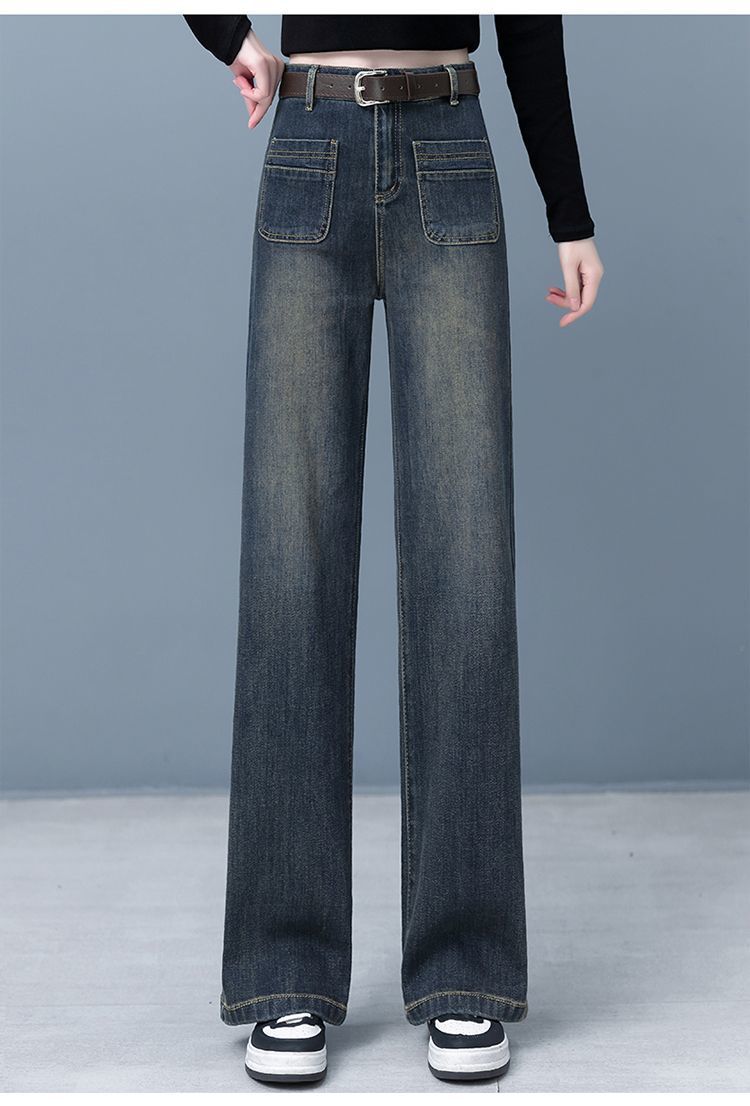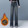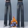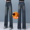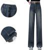 Pantalones vaqueros casuales retro blancos para mujer, nuevos pantalones de otoño con forro polar, gruesos, de pierna recta, de cintura alta, sueltos y de pierna ancha.