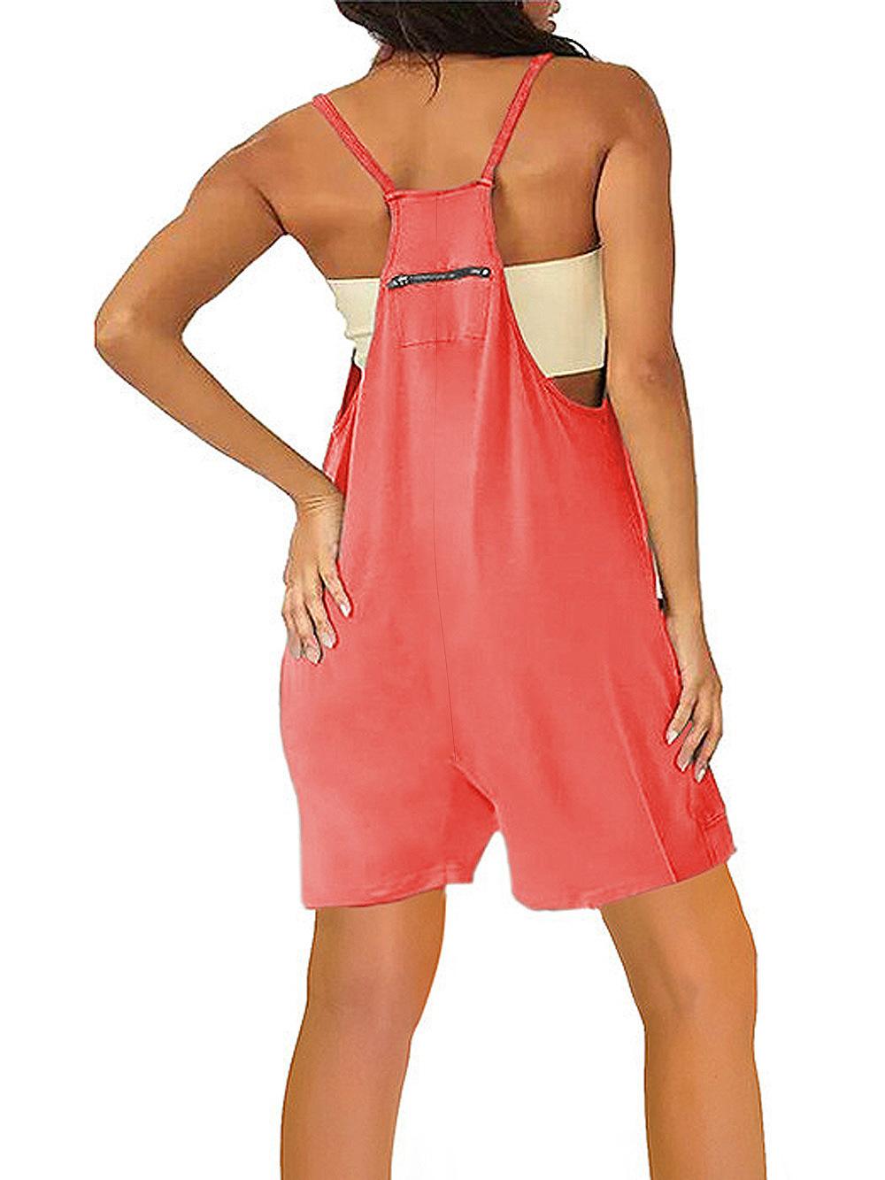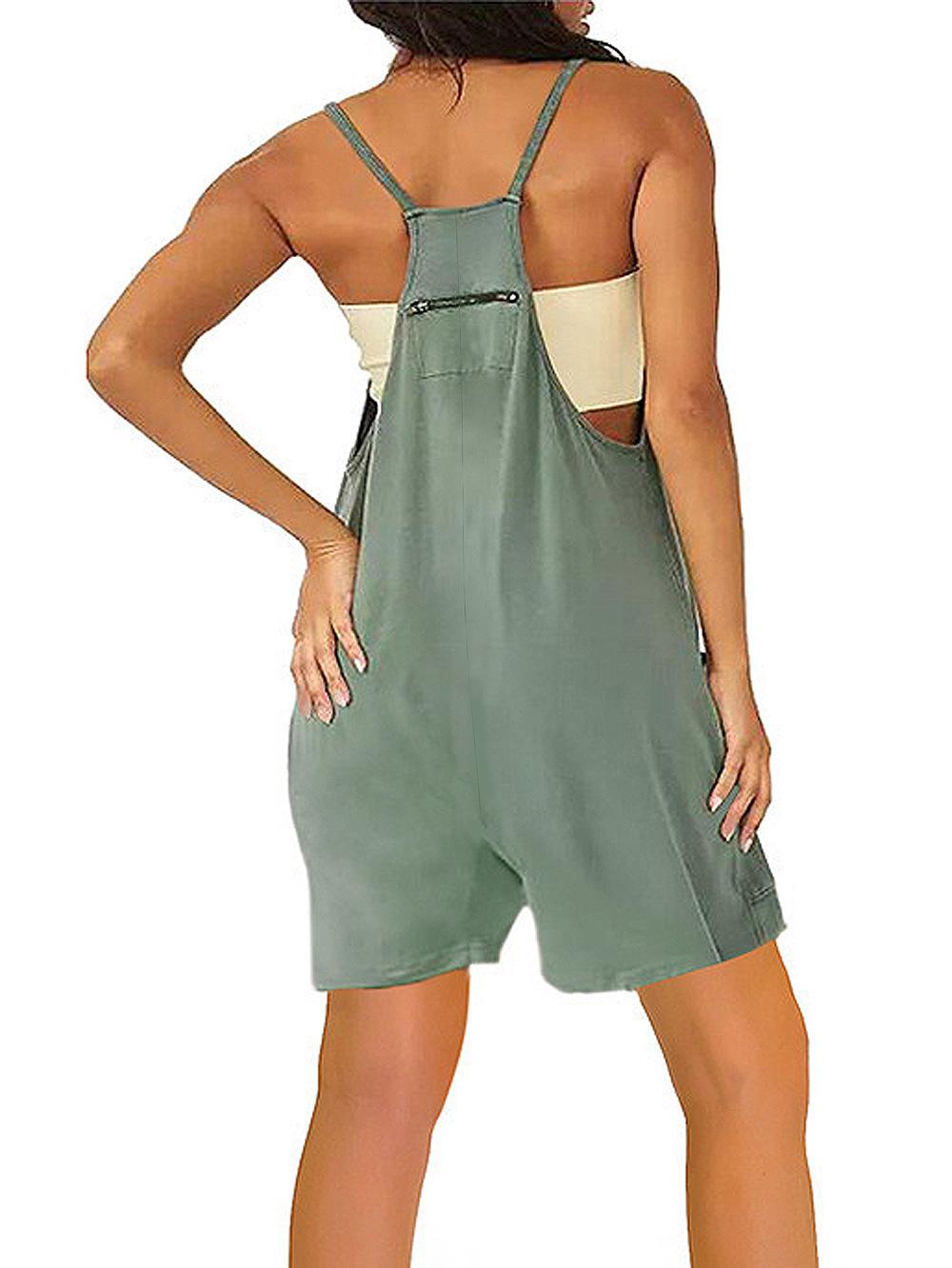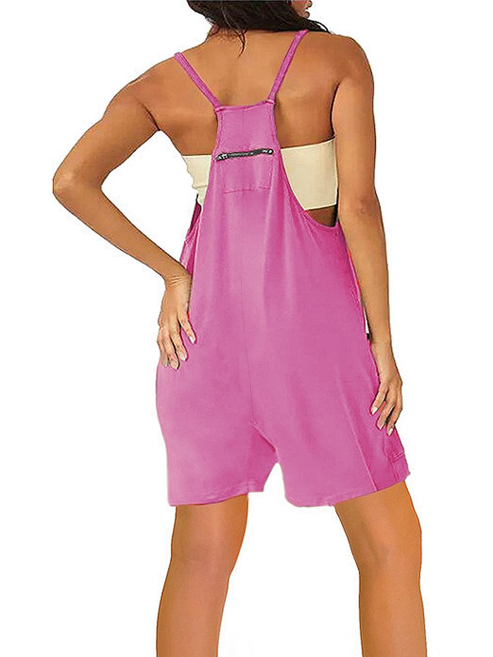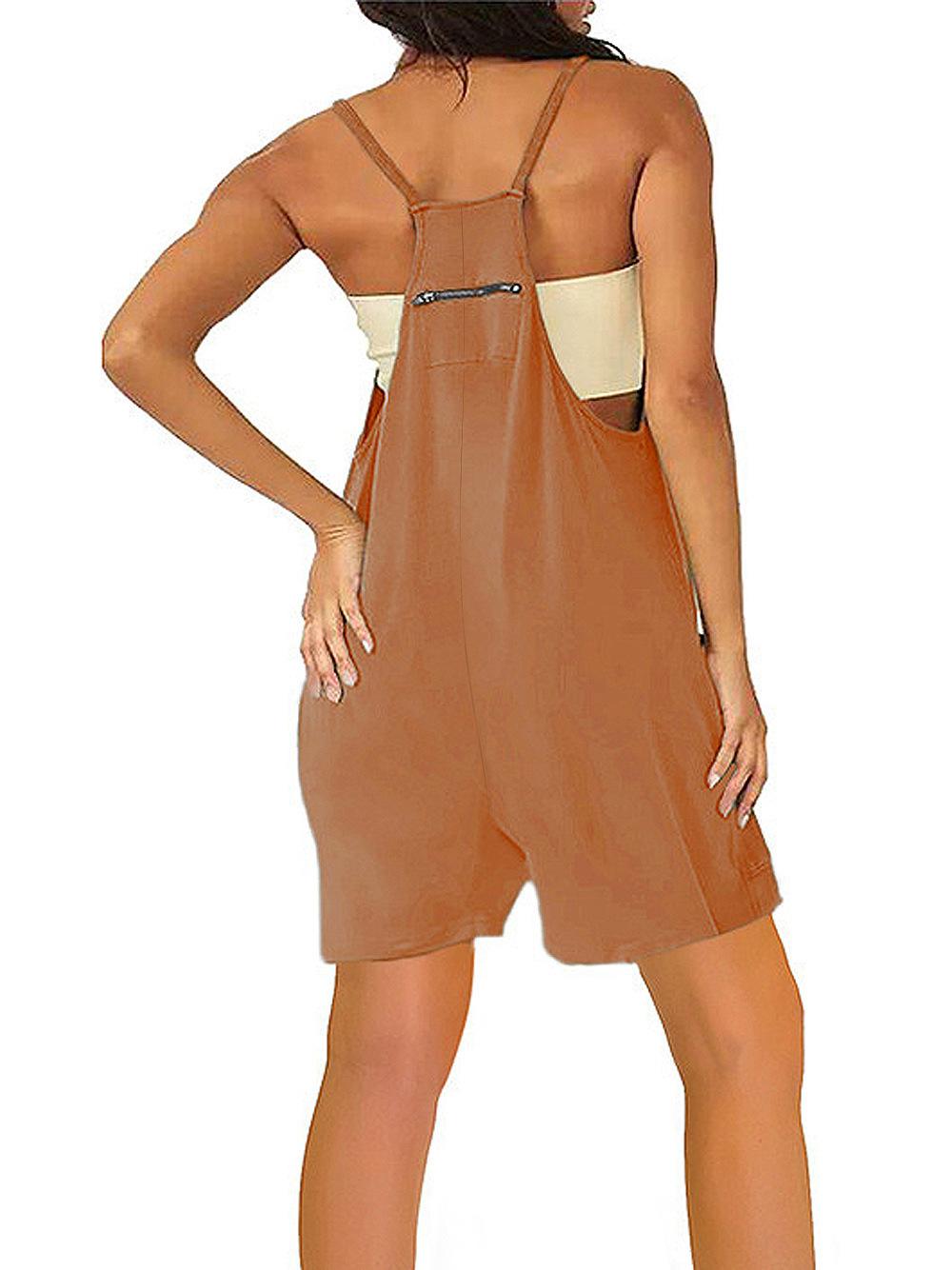 2025 Moda Casual de Verano Transfronteriza Europea y Americana Color Sólido Cuello en V Tirantes Bolsillo con Cremallera Mono Ropa de Mujer
