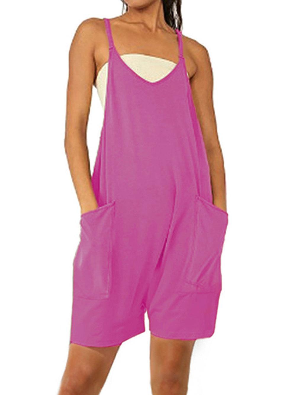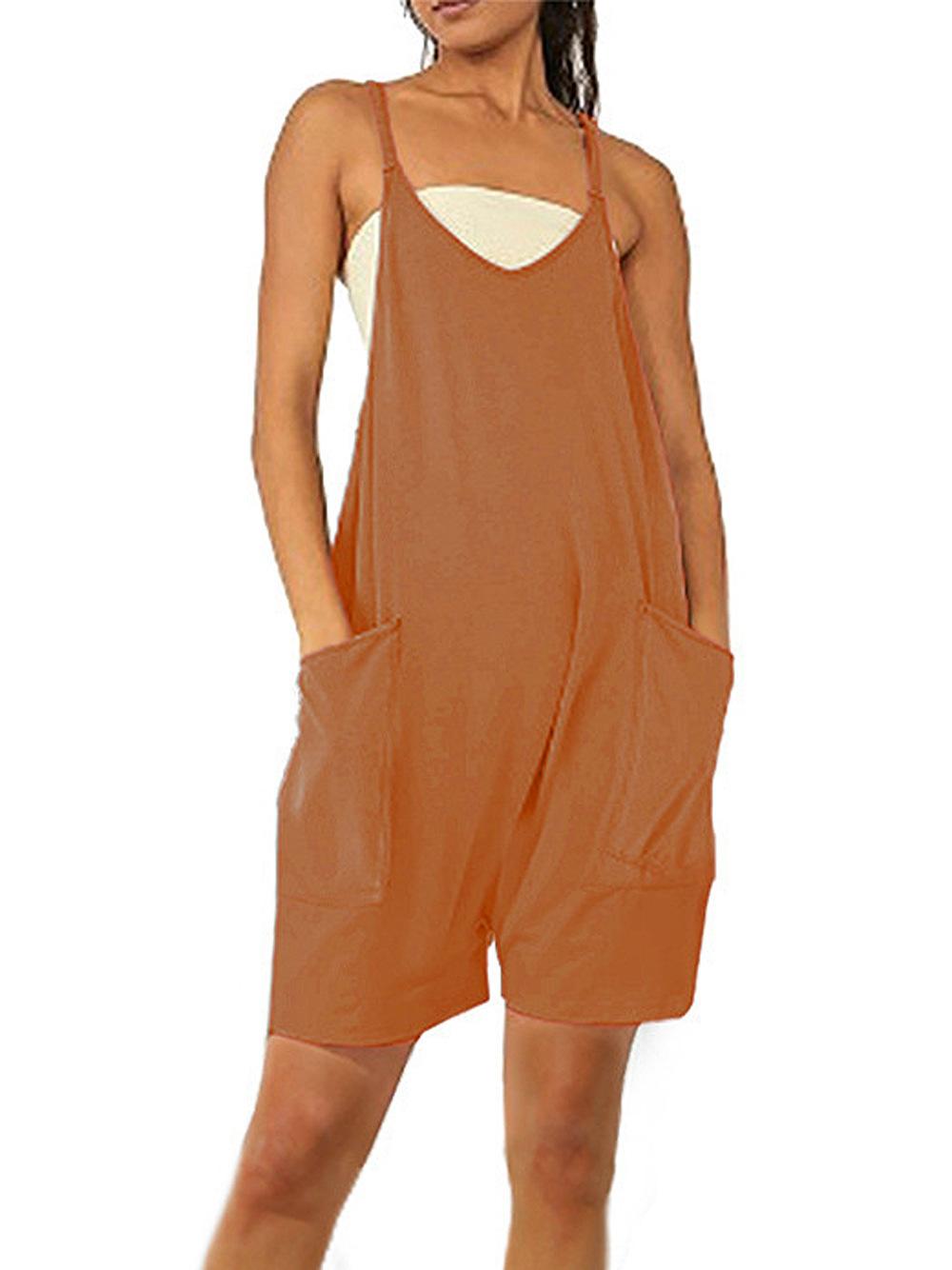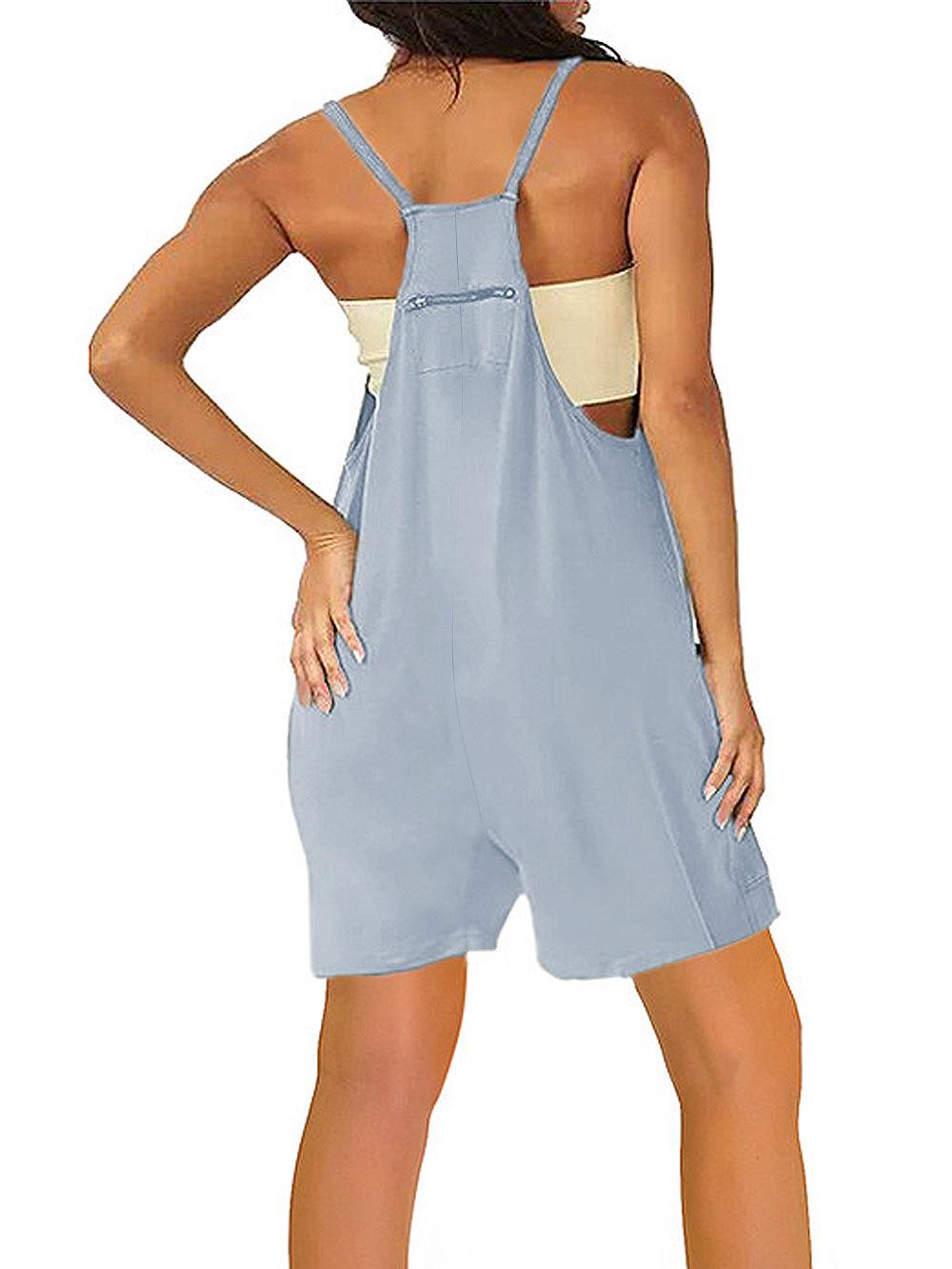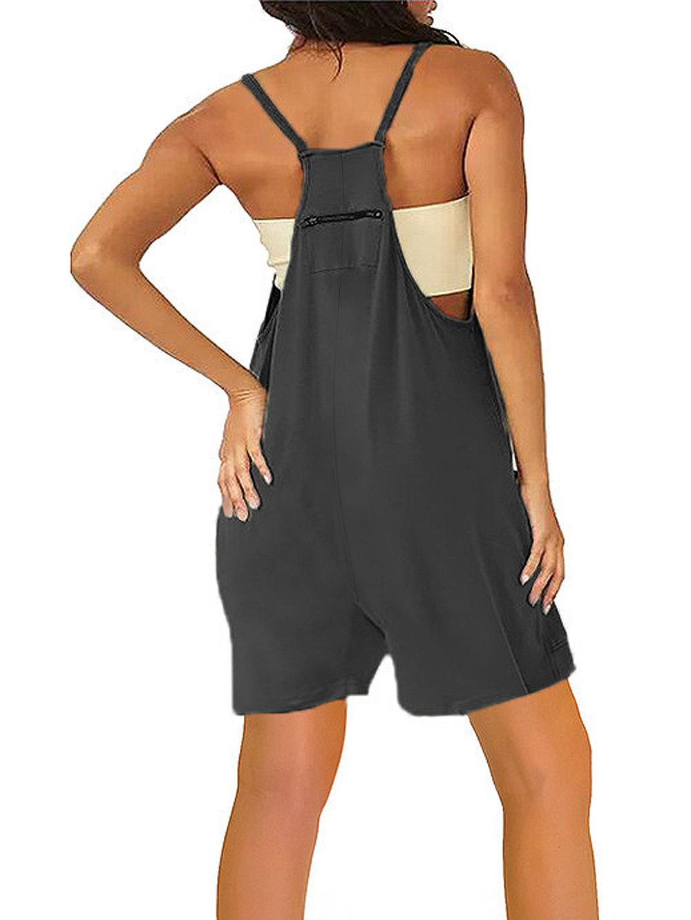 2025 Moda Casual de Verano Transfronteriza Europea y Americana Color Sólido Cuello en V Tirantes Bolsillo con Cremallera Mono Ropa de Mujer