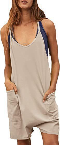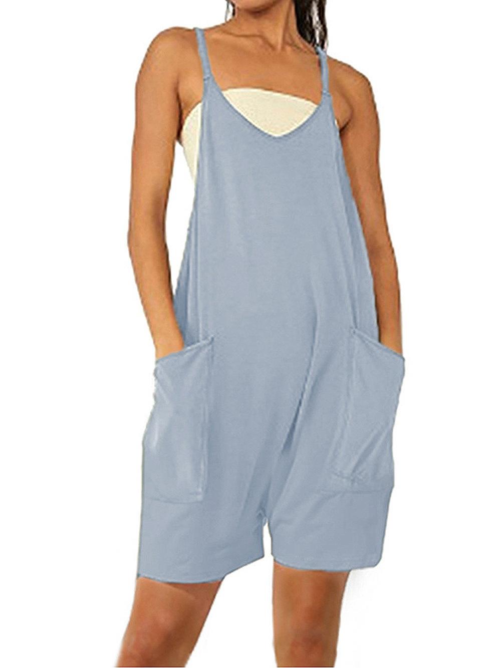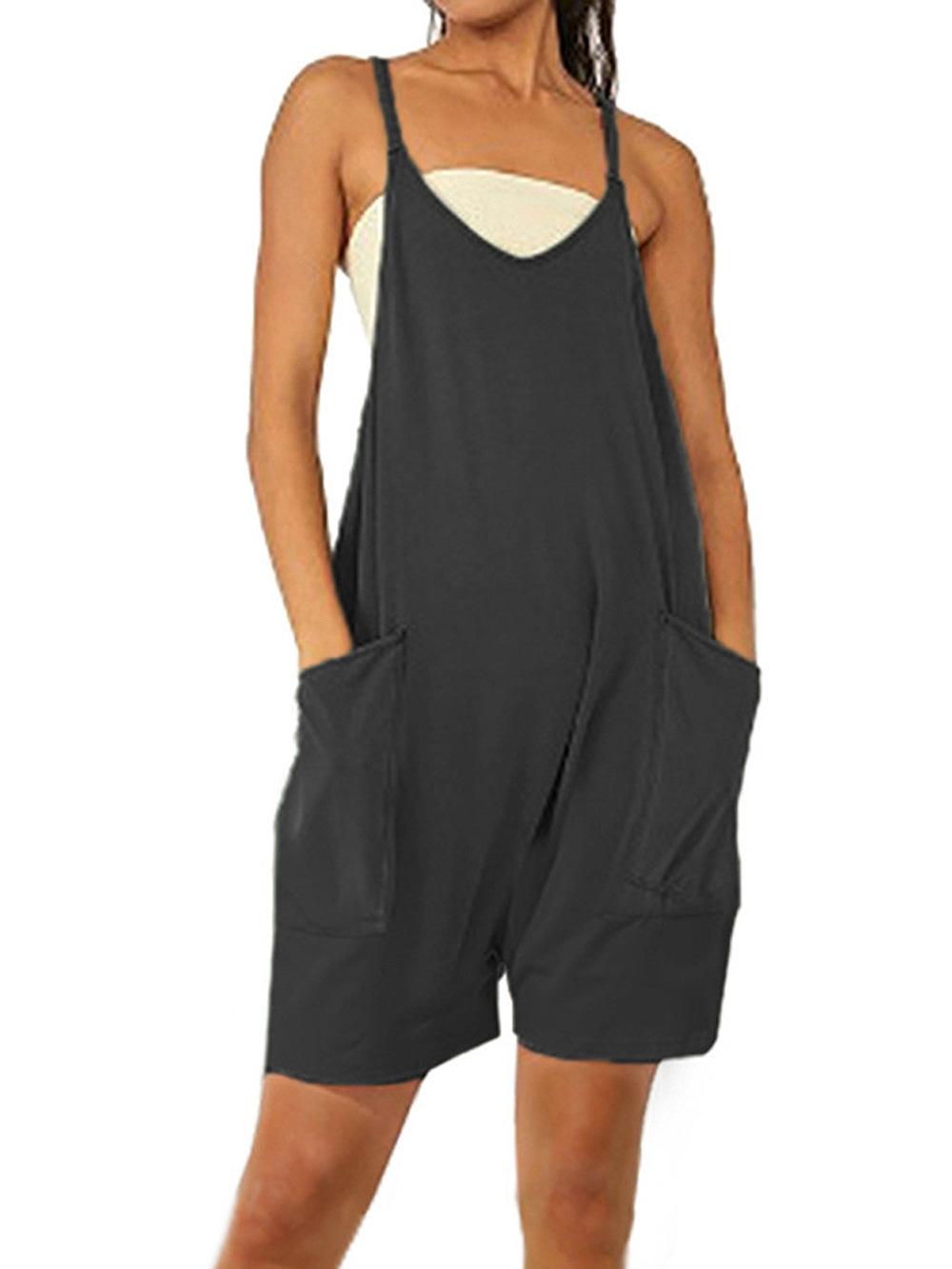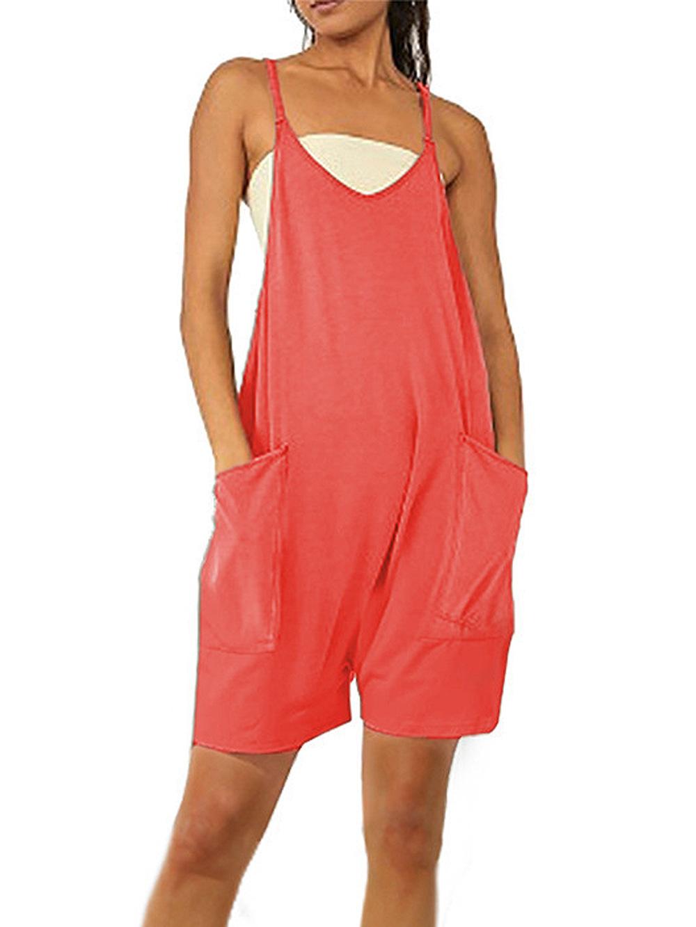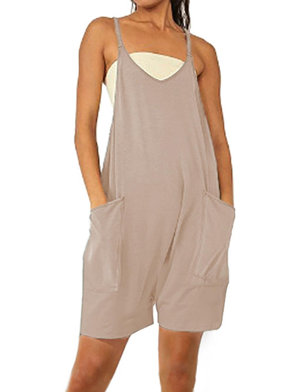 2025 Moda Casual de Verano Transfronteriza Europea y Americana Color Sólido Cuello en V Tirantes Bolsillo con Cremallera Mono Ropa de Mujer