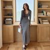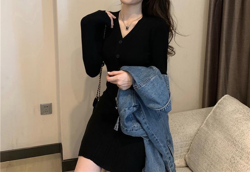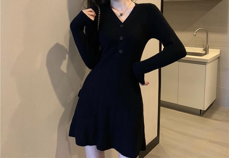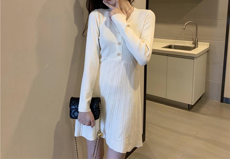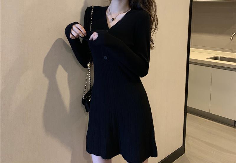 Vestido de Punto Nuevo Otoño e Invierno para Mujer Adelgazante de Cintura Falda Corta Temperamento Interior Francés Falda Básica Moderna