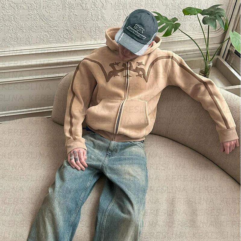 Chaqueta con capucha estilo callejero americano de comercio exterior, abrigo con estampado de espuma retro, suéter holgado de estación independiente, chaqueta con capucha al por mayor