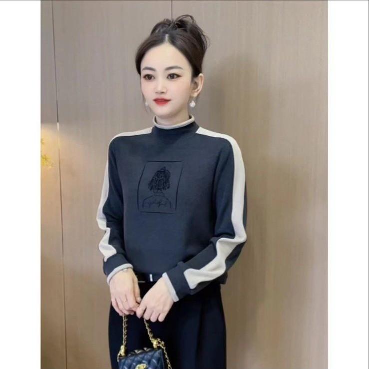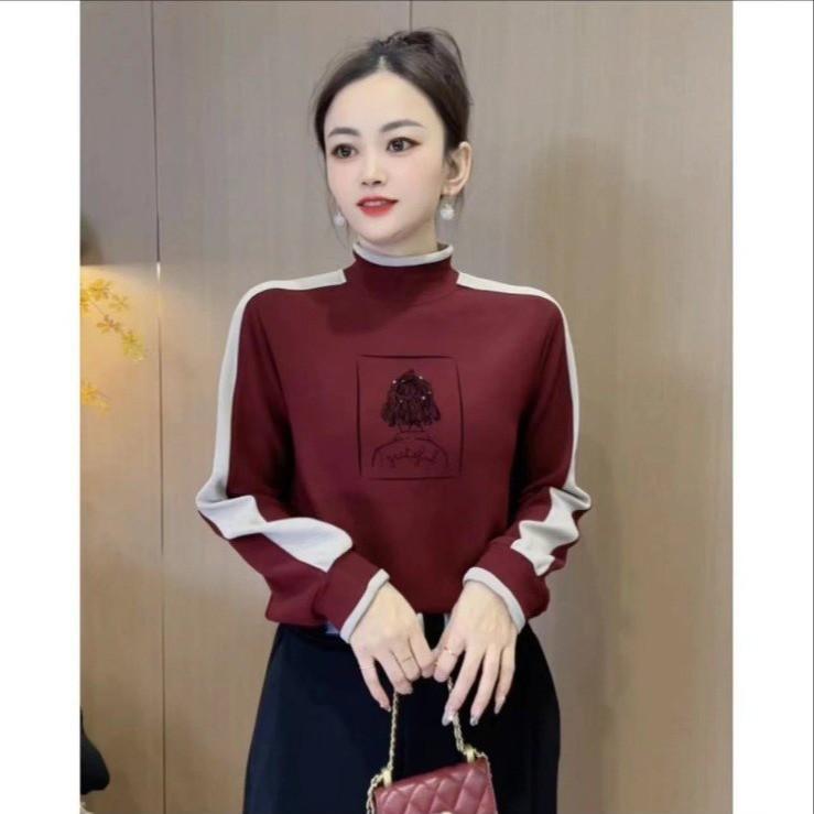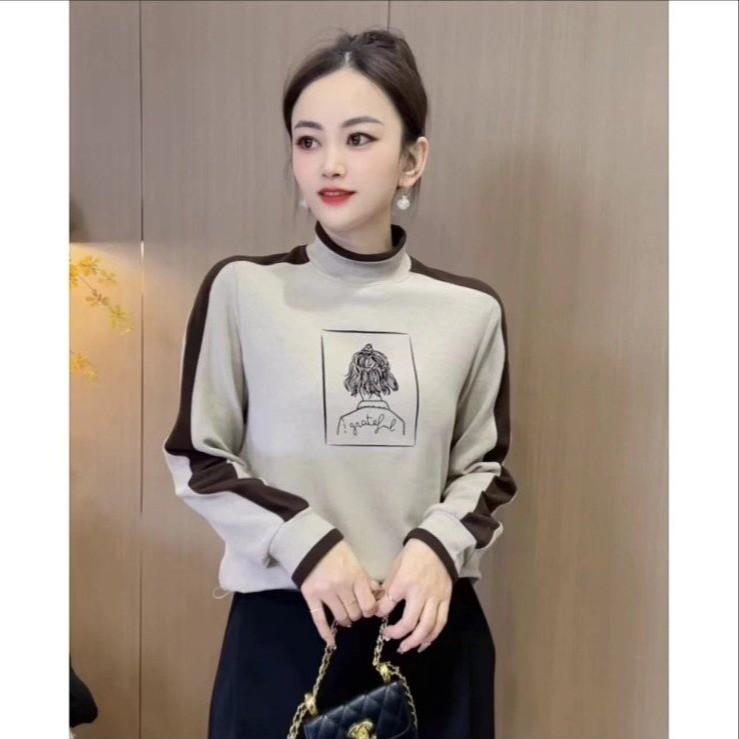 Camiseta de otoño e invierno 2024 para mujer, de manga larga, elegante, de moda, con cuello semialto, camisa básica a juego de colores, top para madre que combina con todo