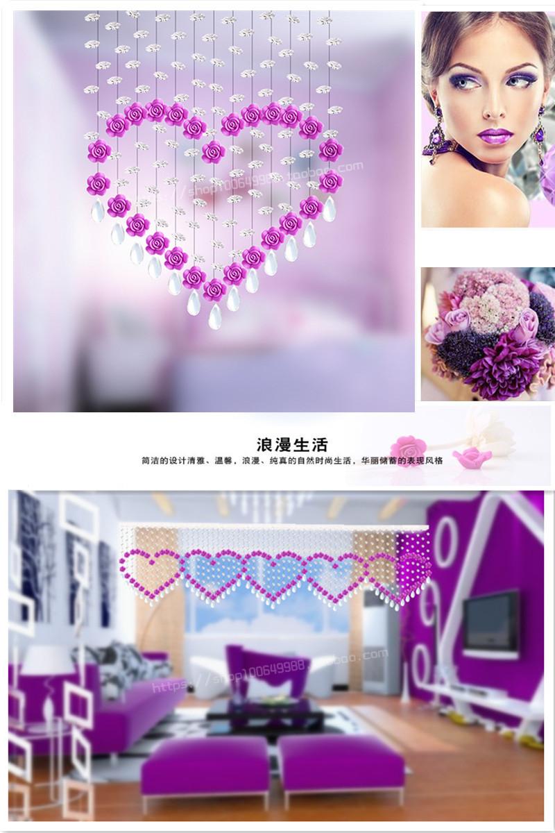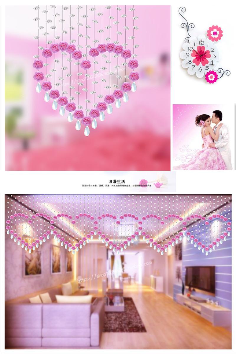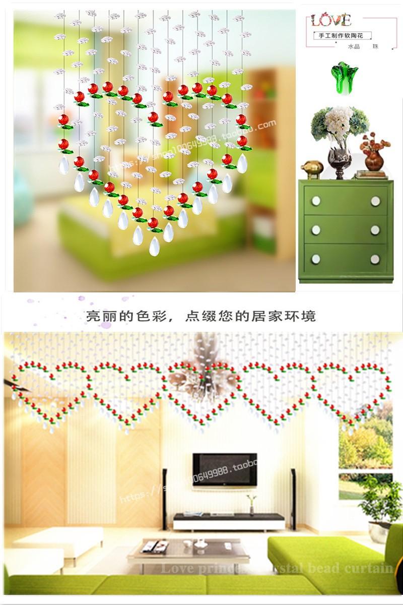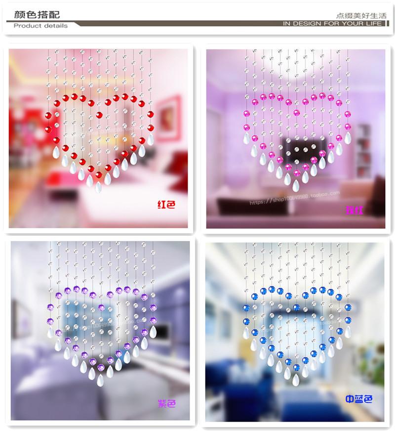 Cortina de Cuentas de Cristal al por Mayor Cortina de Puerta Cortina de Partición Decoración de Sala de Estar Dormitorio Cortina Terminada con Forma de Corazón Entrada Balcón Cortina Colgante Gratis
