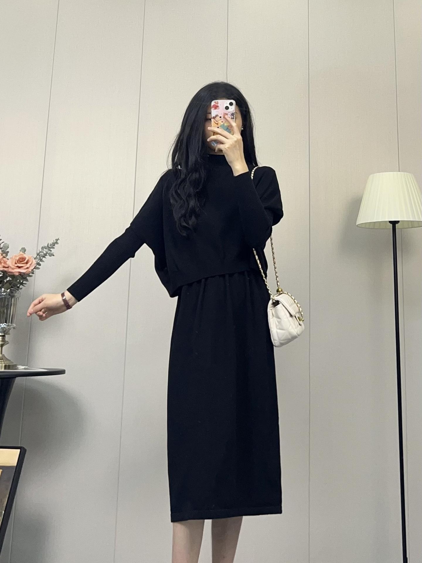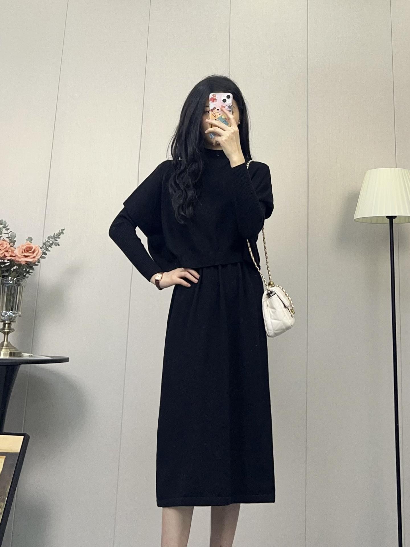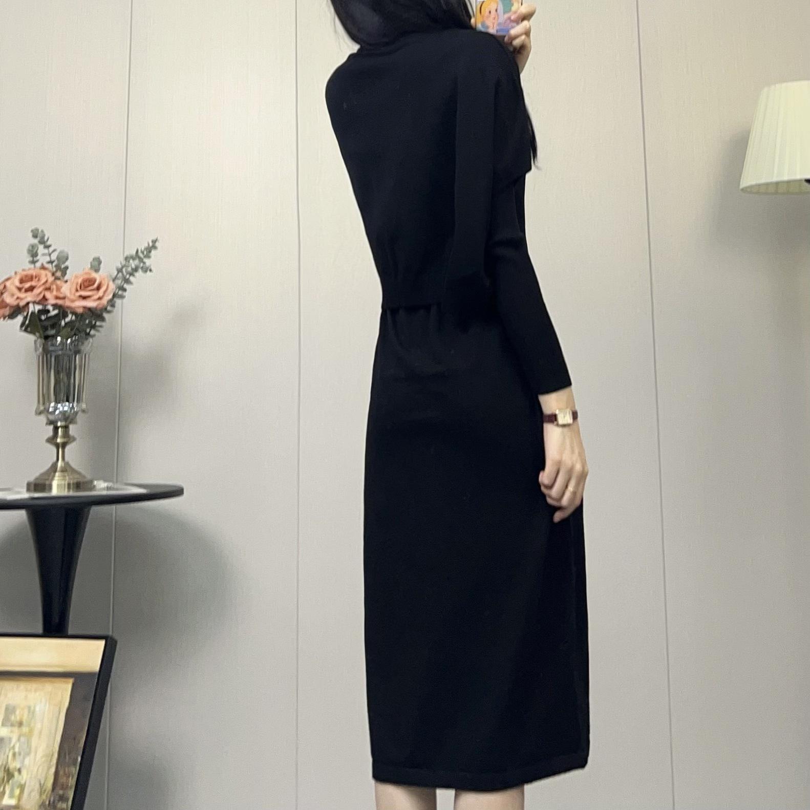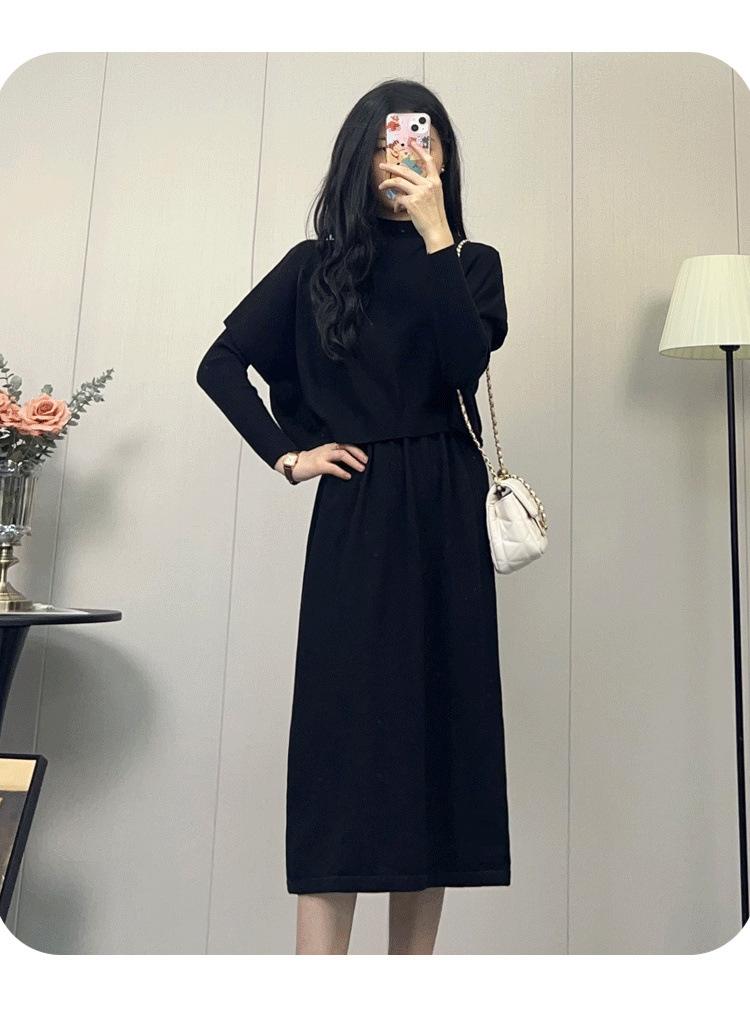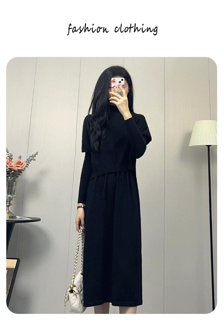 Compra Vestido de Punto Nuevo Otoño e Invierno 2025, Moderno, de Alta Gama, Sencillo, Look Adelgazante, Jersey de Cuello Redondo con Falda de Suéter Interior al por mayor en Joom.pro