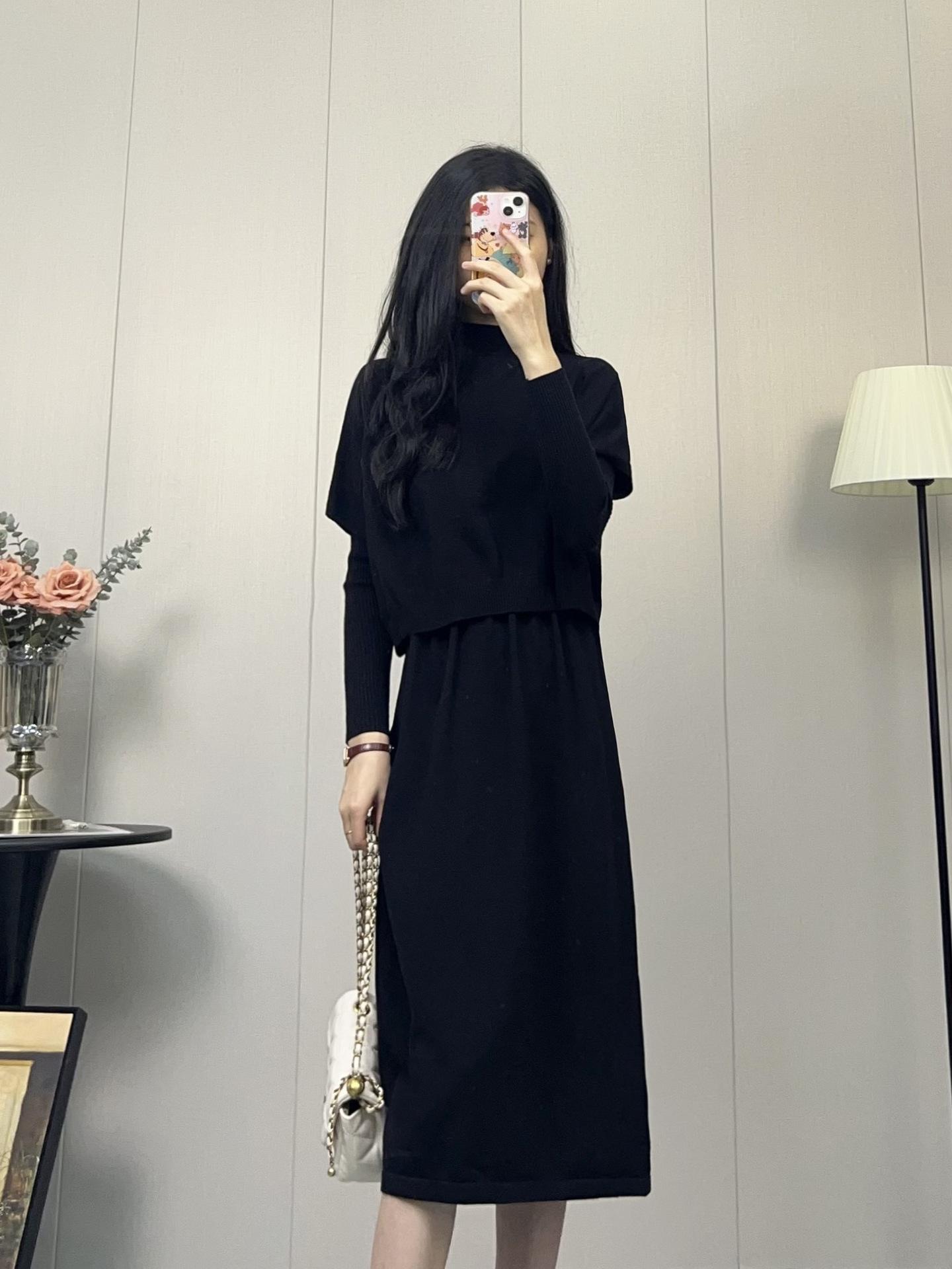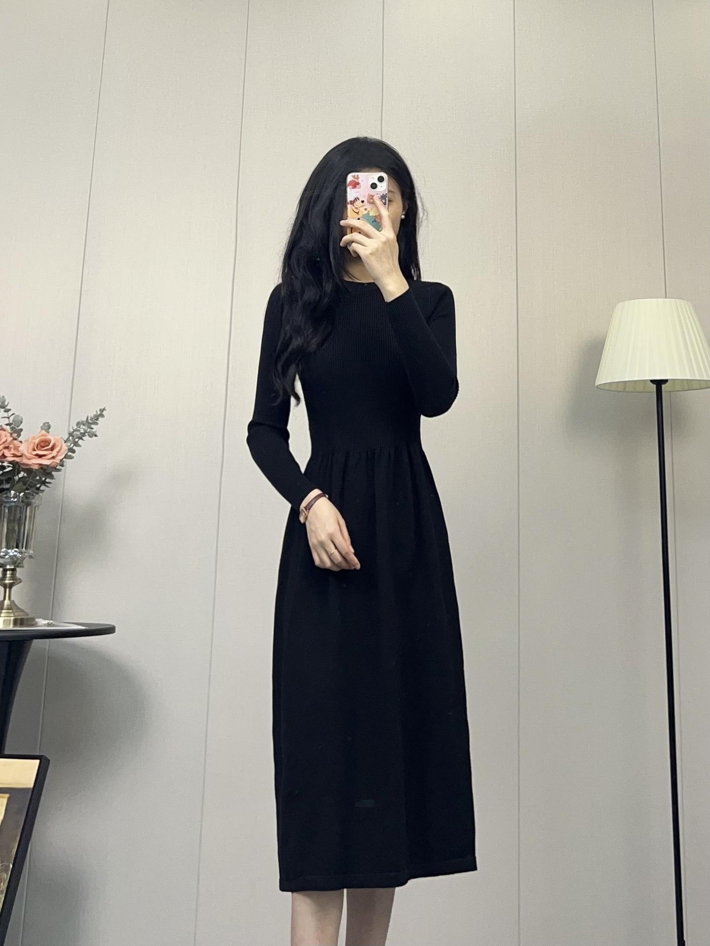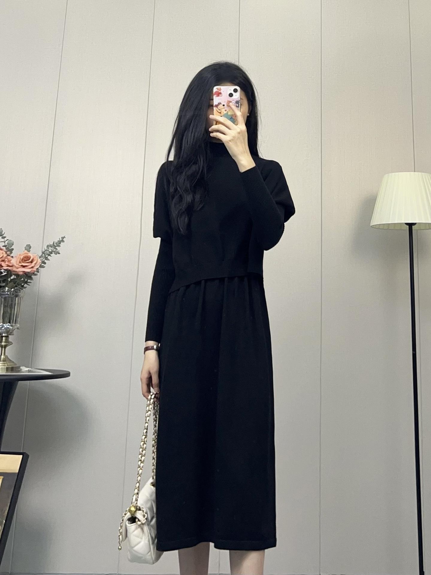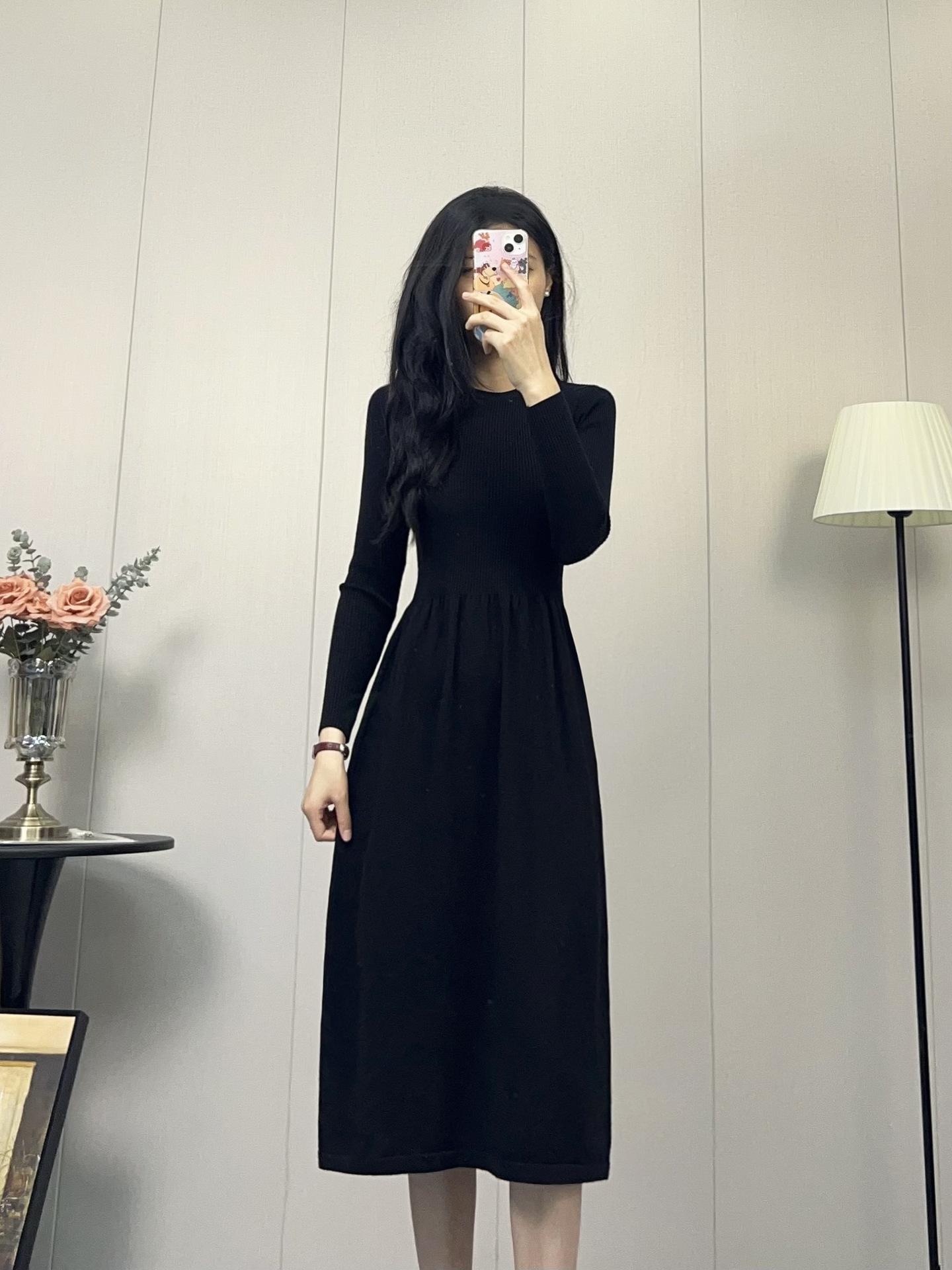 Compra Vestido de Punto Nuevo Otoño e Invierno 2025, Moderno, de Alta Gama, Sencillo, Look Adelgazante, Jersey de Cuello Redondo con Falda de Suéter Interior al por mayor en Joom.pro