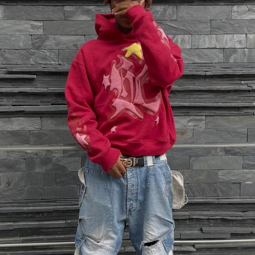 Sudadera con capucha de hip-hop de estilo urbano, estilo europeo y americano, con estampado de espuma de estrellas, informal, holgada, para hombre y mujer, para otoño e invierno, de Independent Station