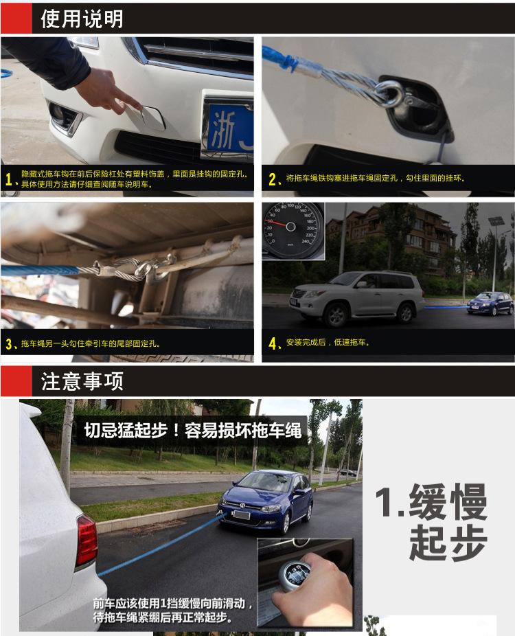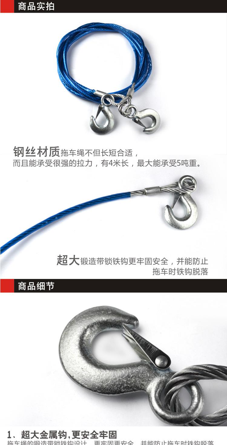 Ventas directas de fábrica cuerda de remolque de coche cuerda de tracción de coche 4 metros 3 toneladas cuerda de tracción 4 * 8 cable de acero cuerda de remolque