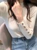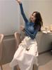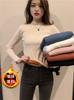 Top de Punto de Manga Larga con Cuello Medio Alto, Forrado con Felpa y Engrosado, Estilo Coreano, Nuevo de Otoño e Invierno para Mujer, Cálido, Versátil, para Interior, Ajustado