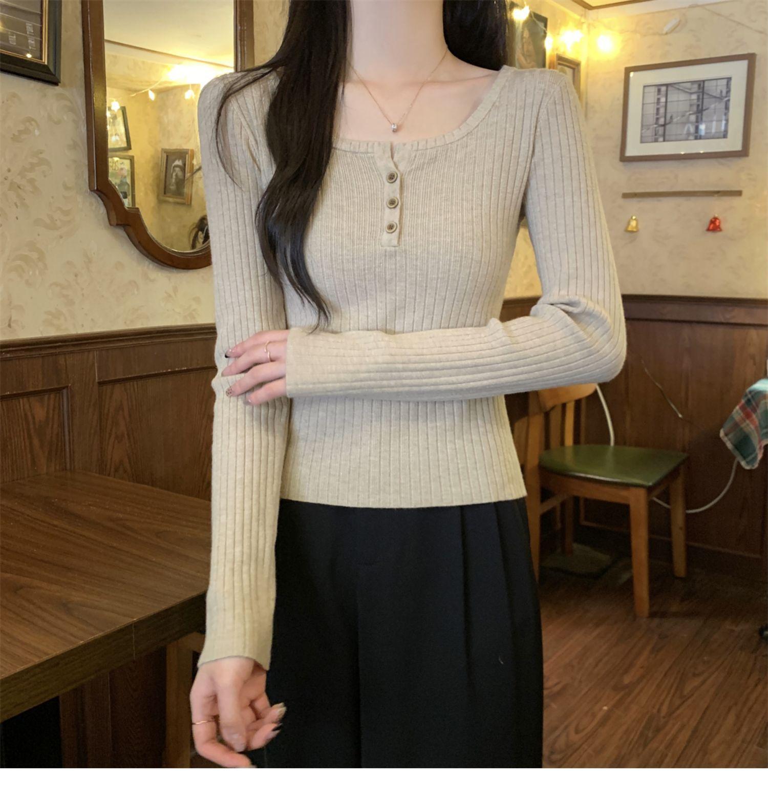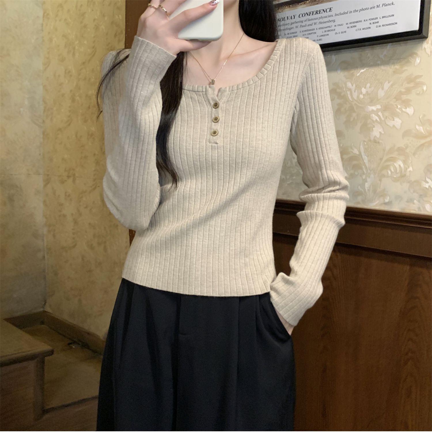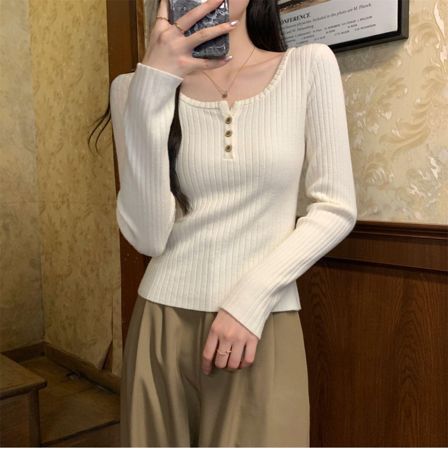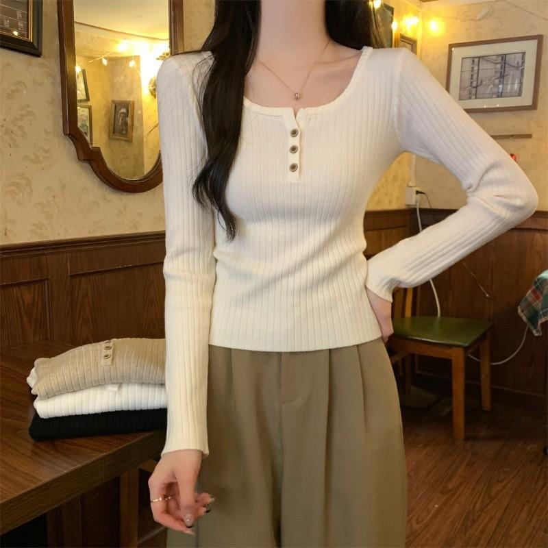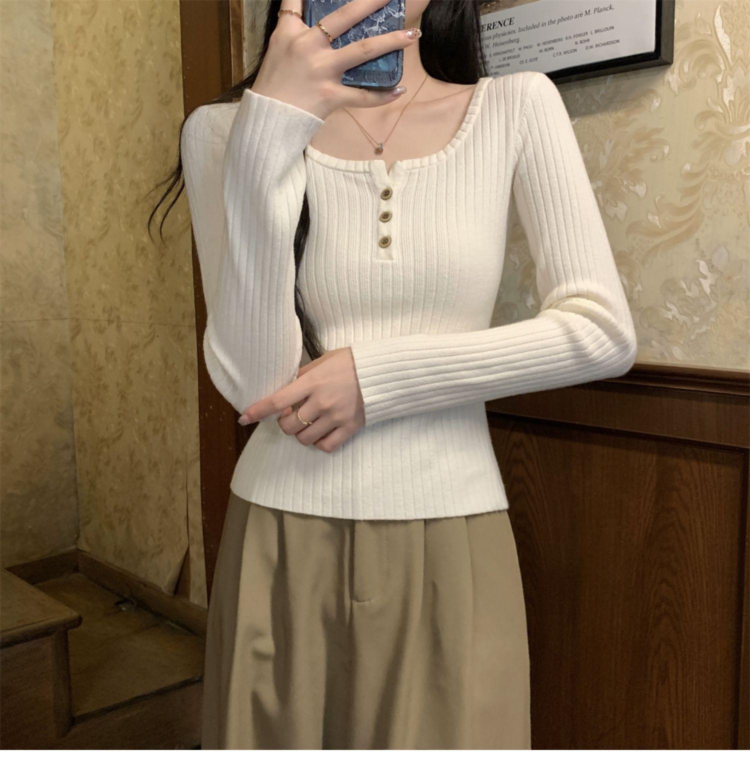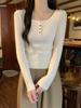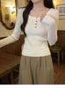 2024 Verano Delgado Cuello Cuadrado Botón Tejido Manga Corta para Mujer Principios de Otoño Nuevo Estilo Diseño Interior Top Corto para Fondo