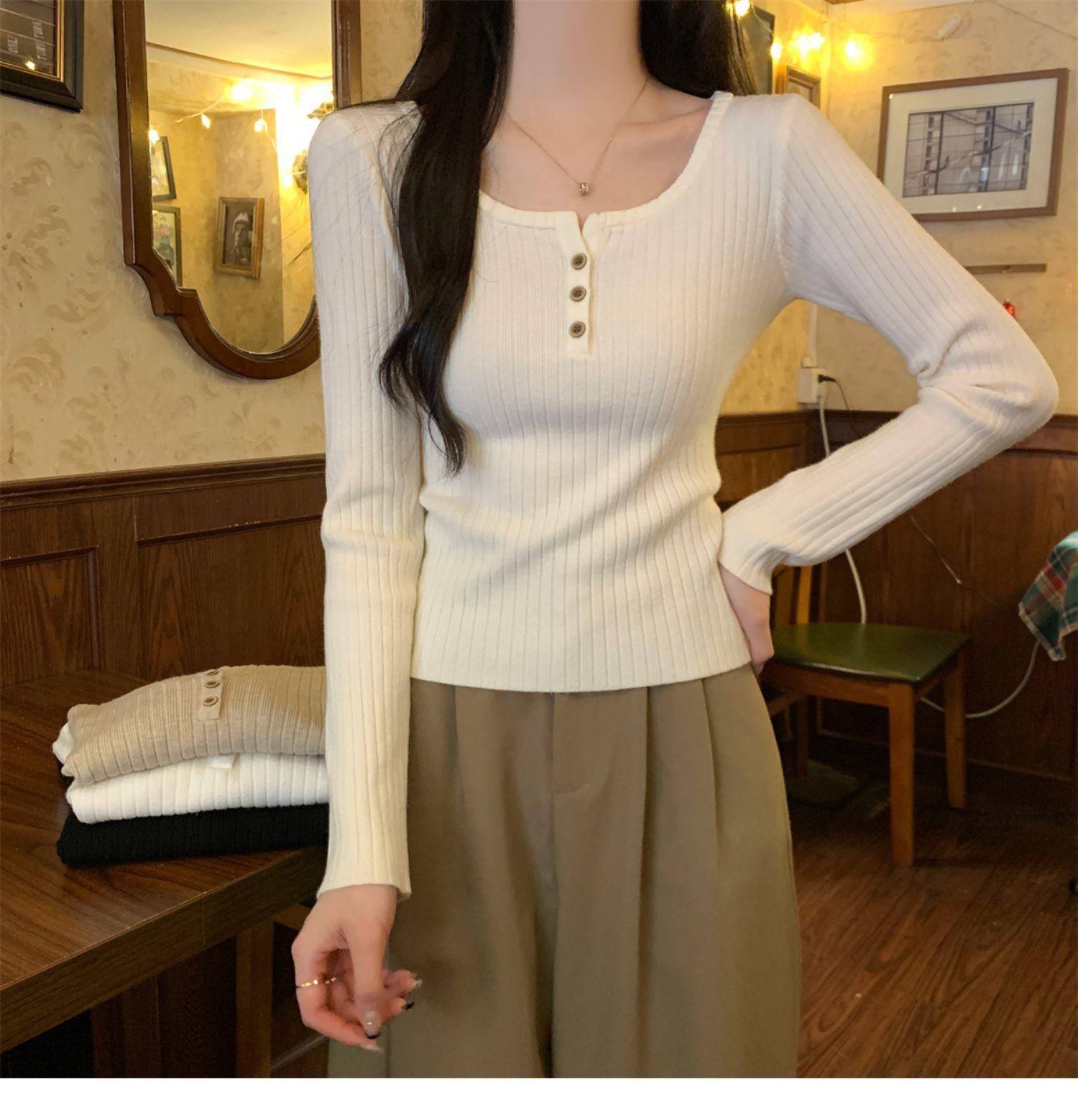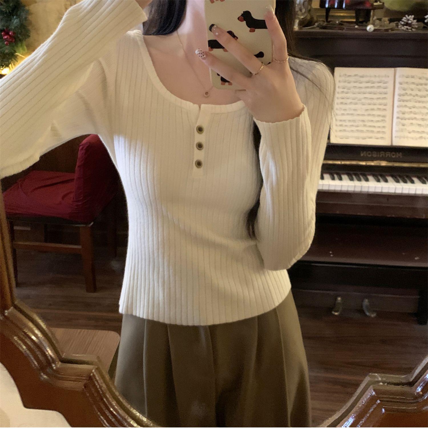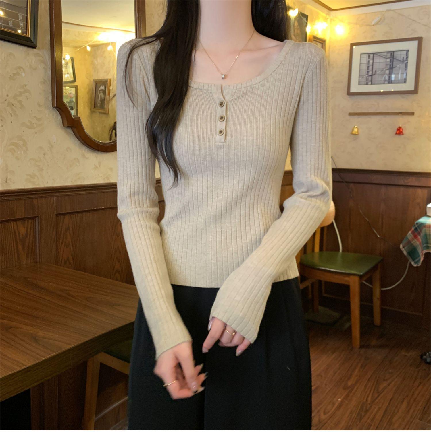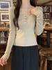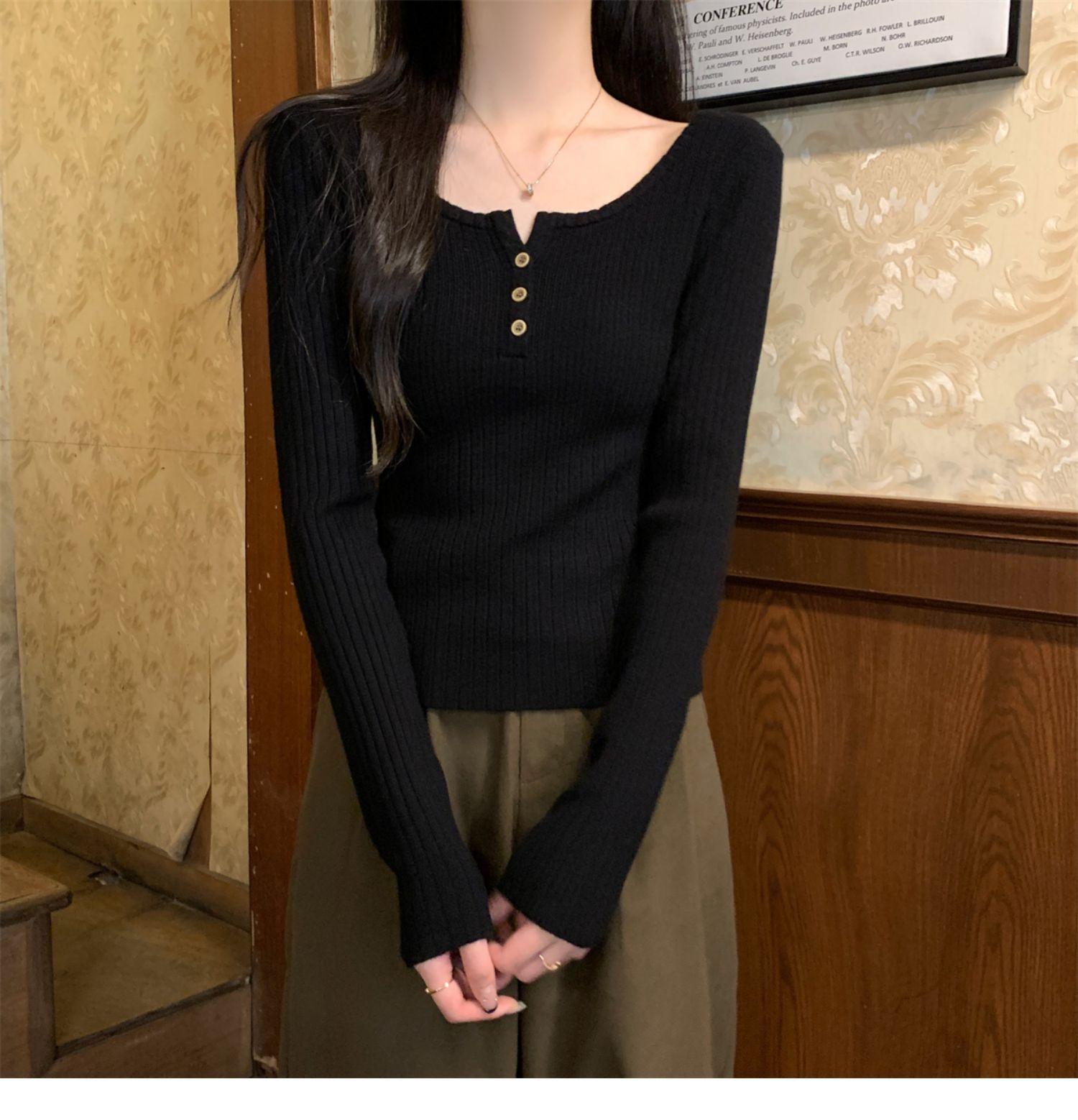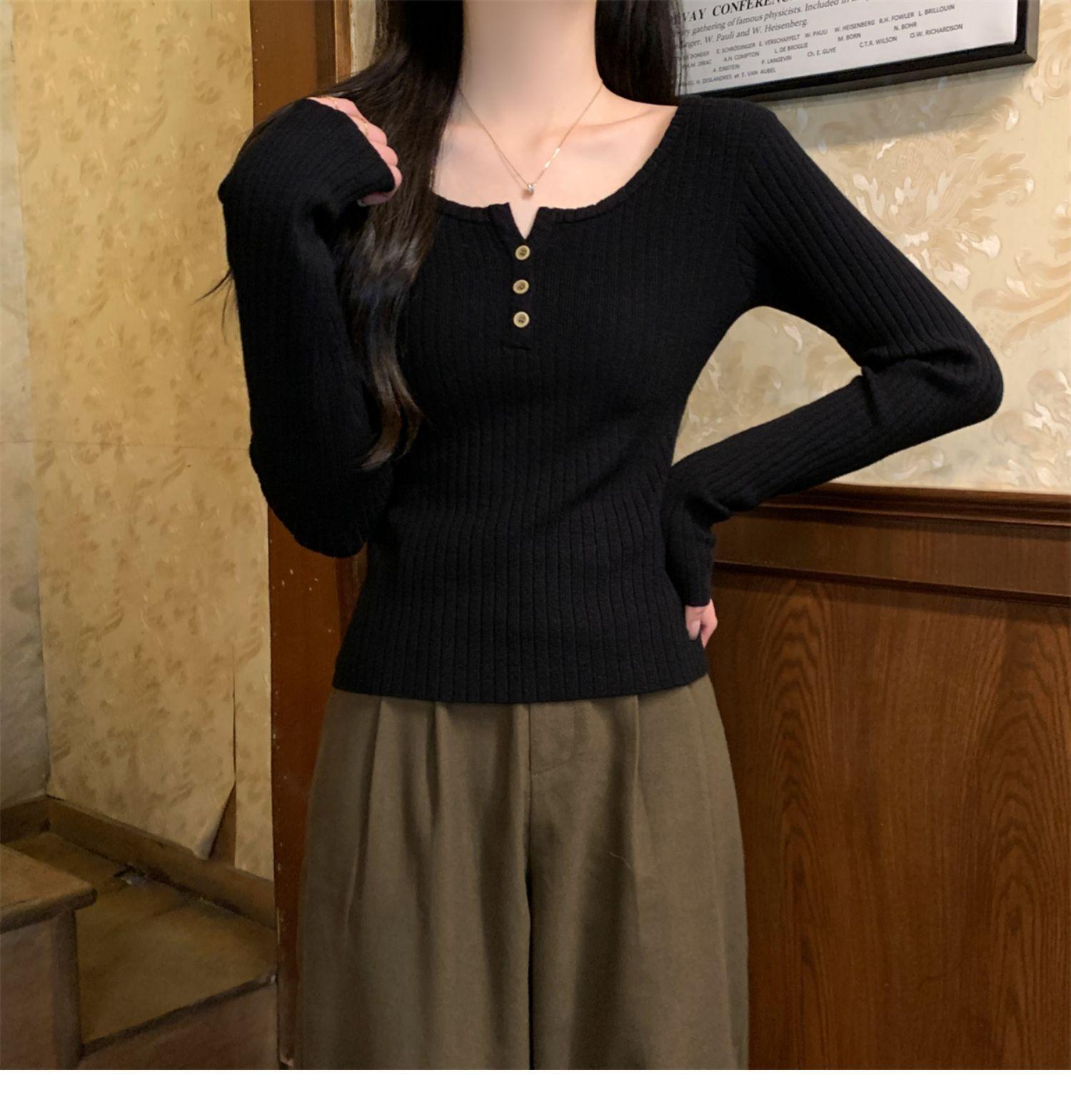 2024 Verano Delgado Cuello Cuadrado Botón Tejido Manga Corta para Mujer Principios de Otoño Nuevo Estilo Diseño Interior Top Corto para Fondo
