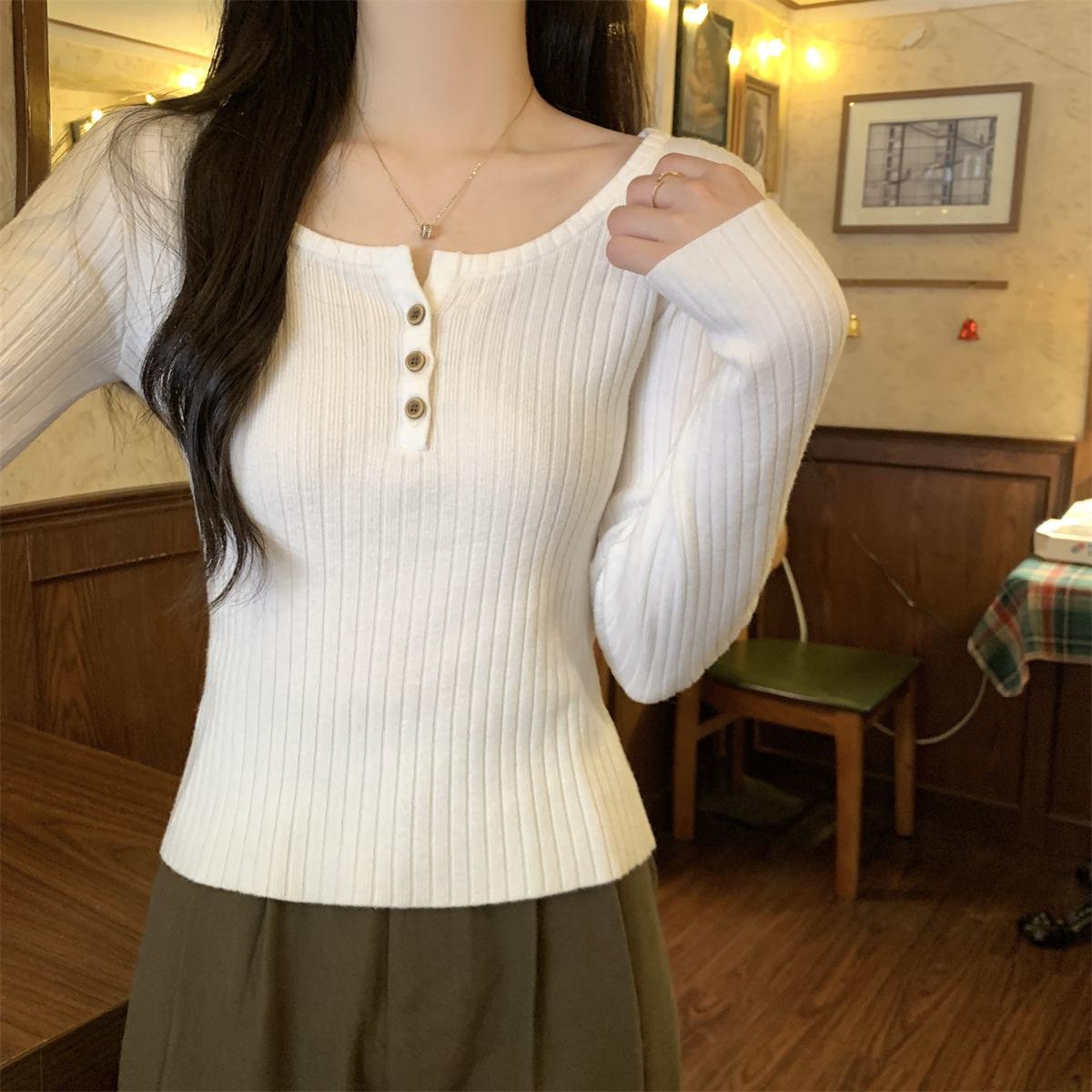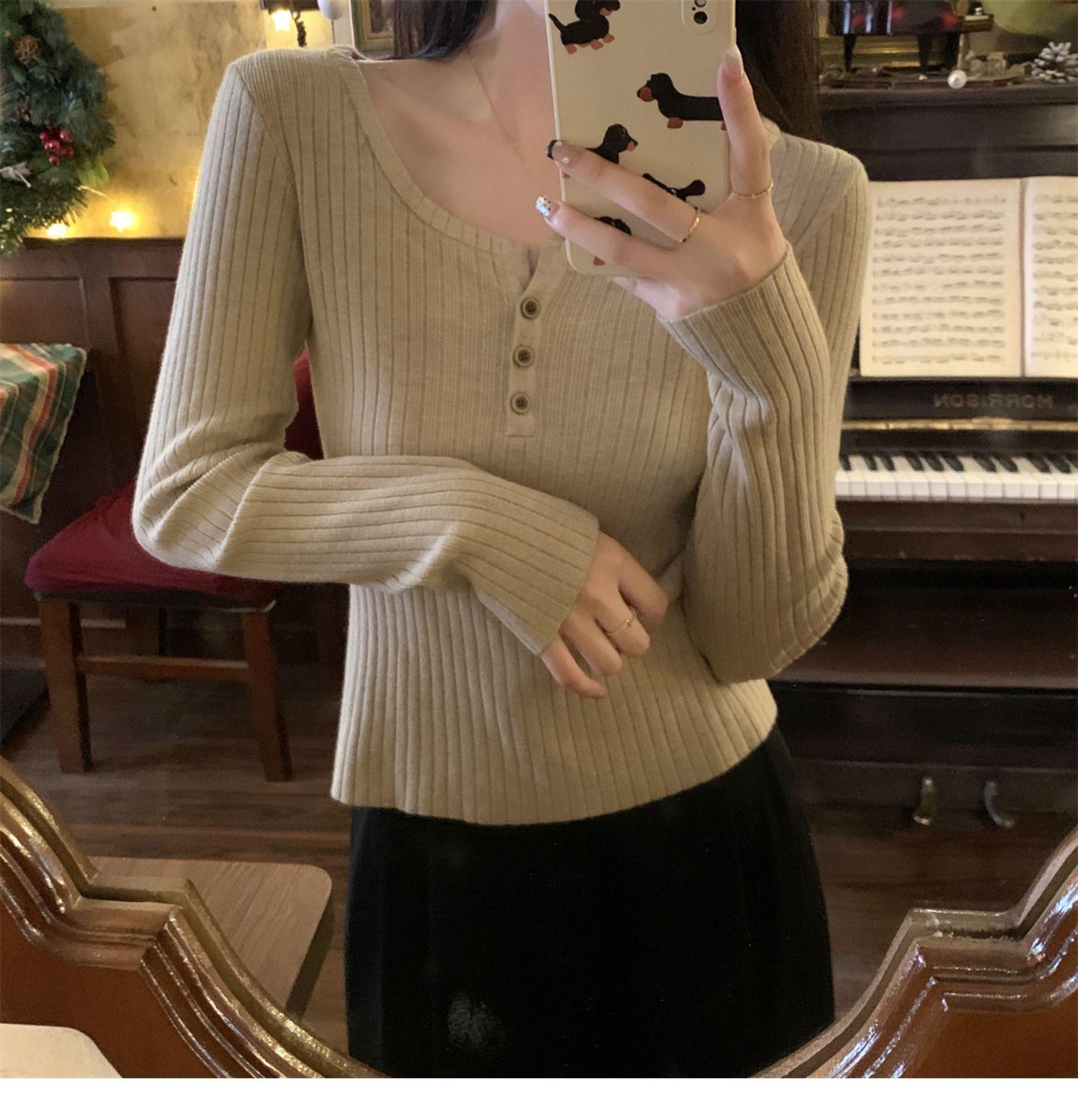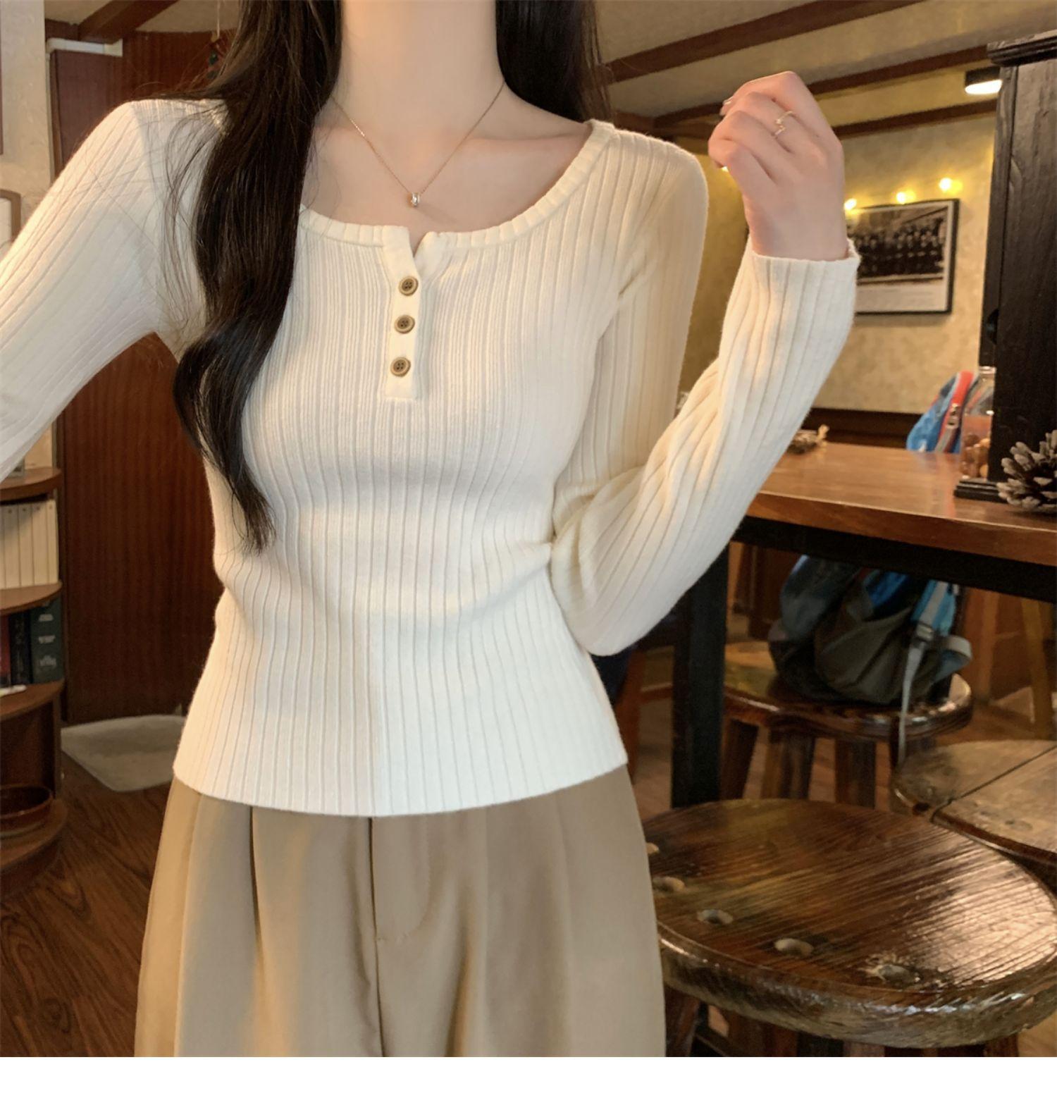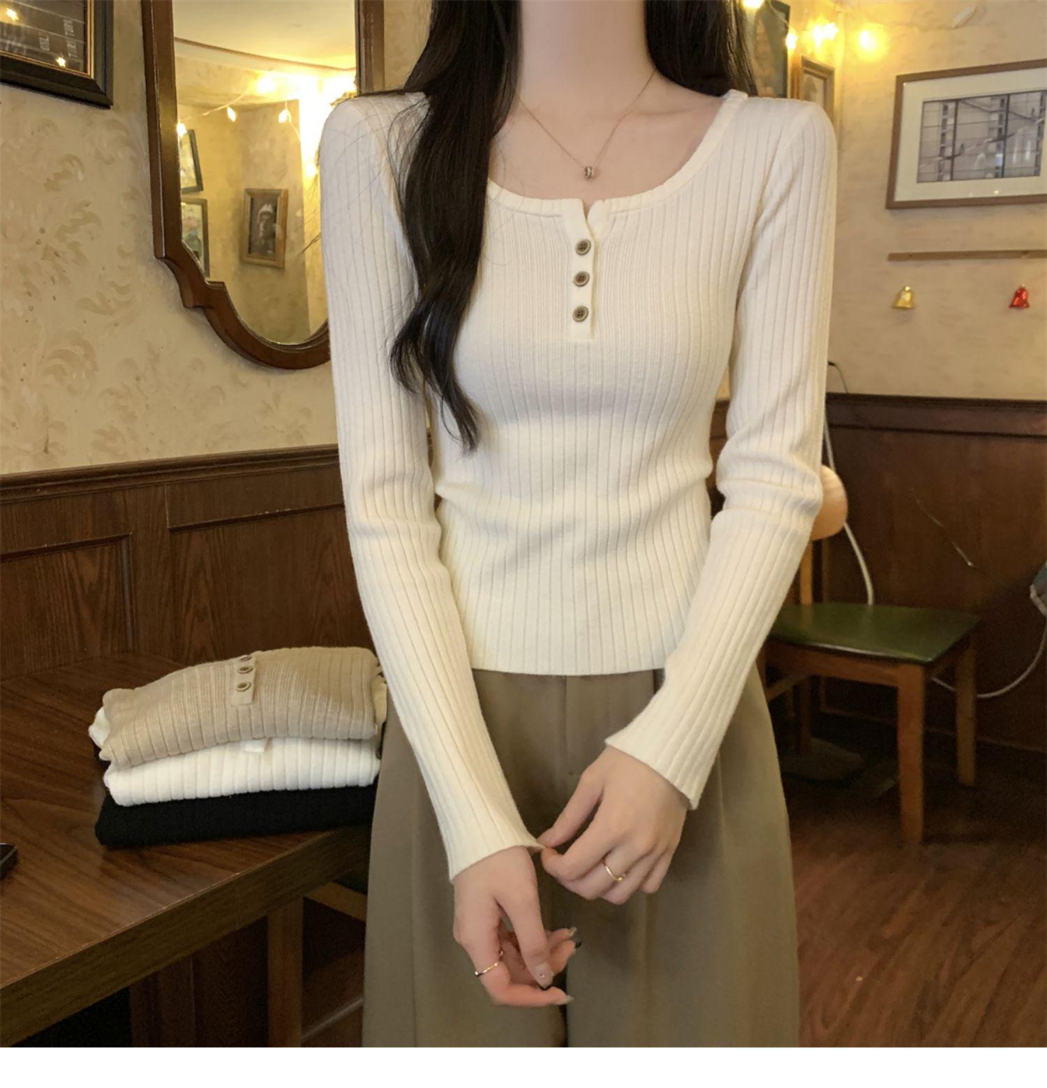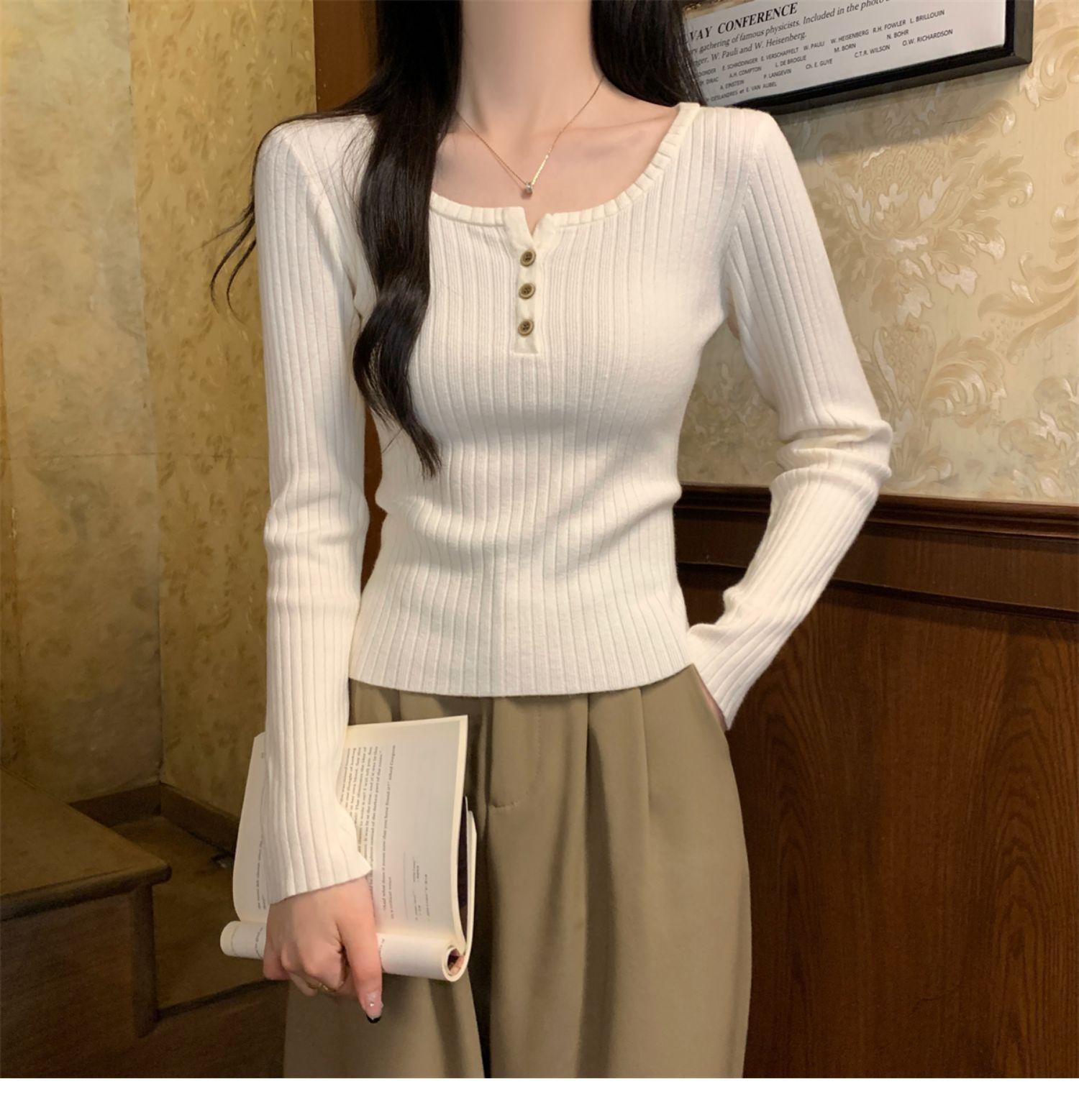 2024 Verano Delgado Cuello Cuadrado Botón Tejido Manga Corta para Mujer Principios de Otoño Nuevo Estilo Diseño Interior Top Corto para Fondo