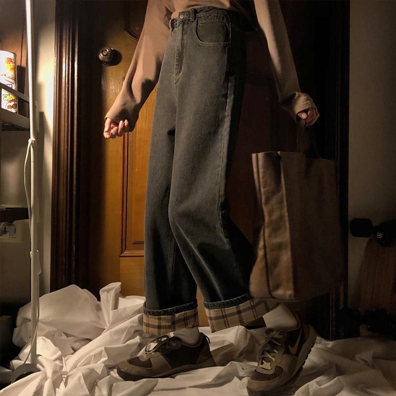 Compra 2024 Nuevos pantalones vaqueros para mujer, otoño e invierno, forrados de vellón, gruesos, sueltos, adelgazantes, de cintura alta, rectos, de pierna ancha, pantalones largos de invierno al por mayor en Joom.pro