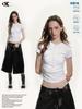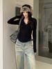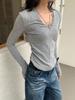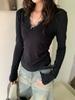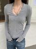 Camiseta de mujer de invierno 2024 con cuello en V y encaje ajustado, estilo sexy y dulce, de trece líneas, 53315