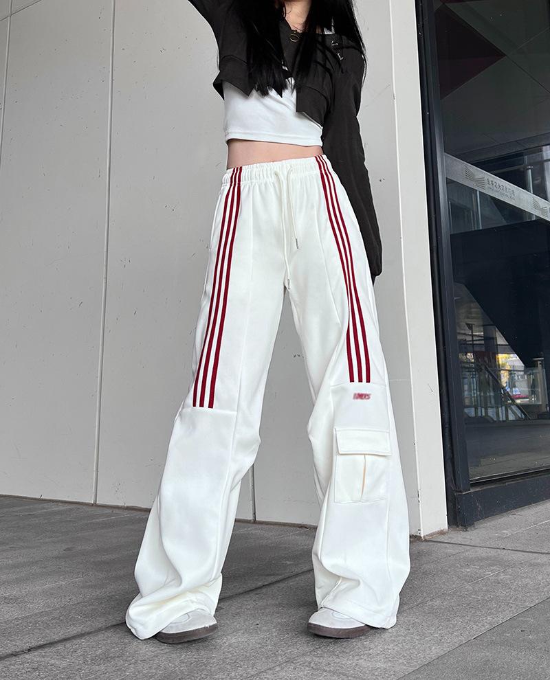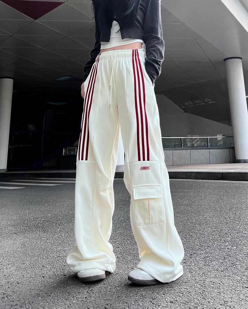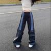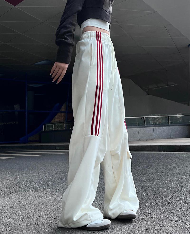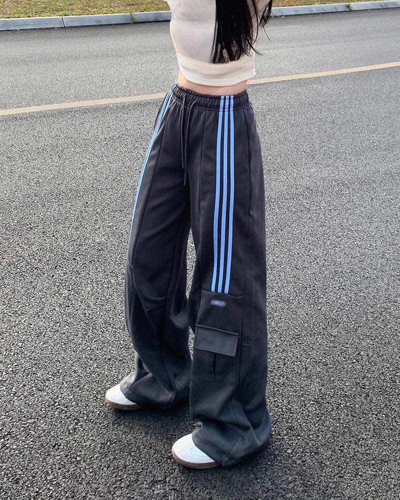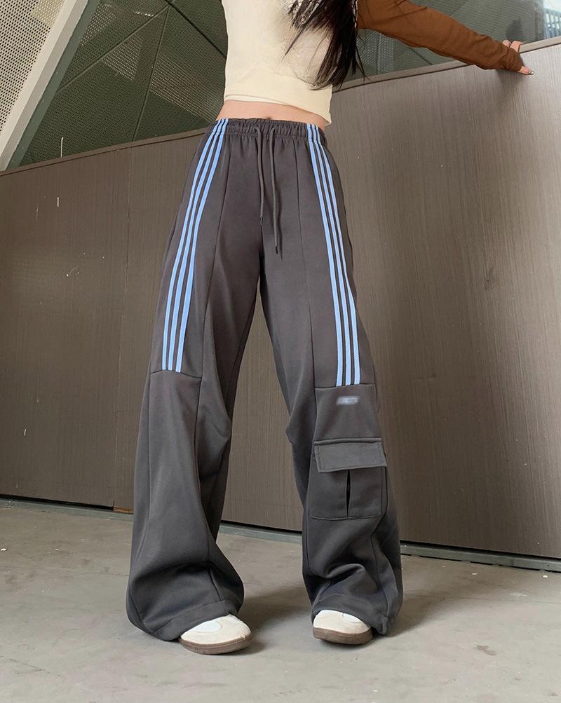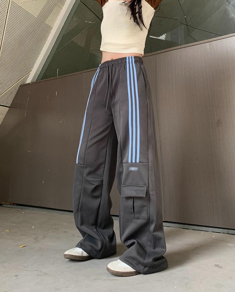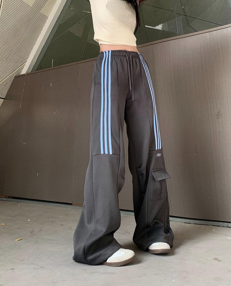 Pantalones deportivos casuales de primavera y otoño con tres barras retro transfronterizas americanas, pantalones holgados de cintura alta y pierna ancha para mujer, pantalones para comercio exterior