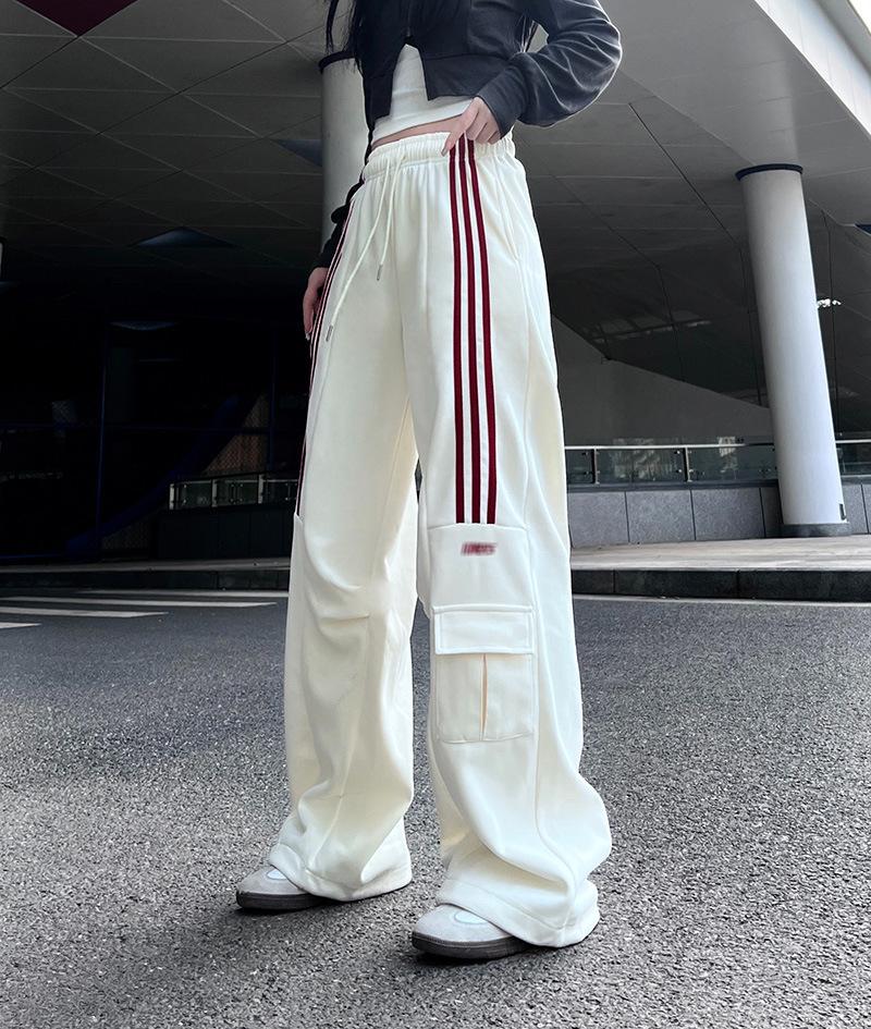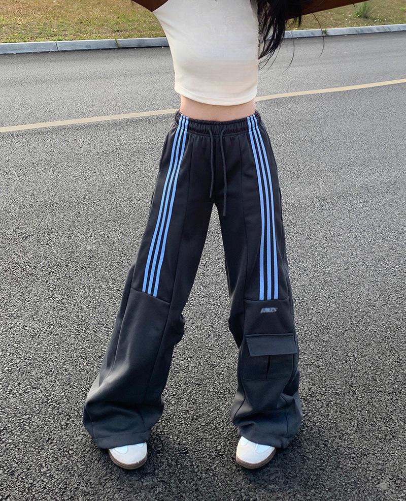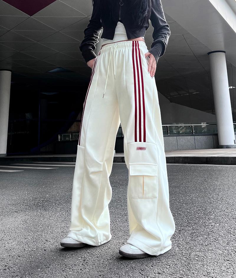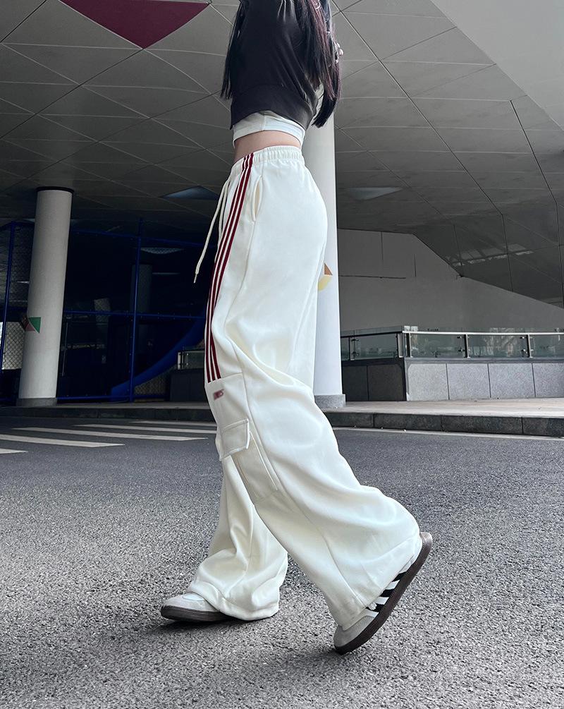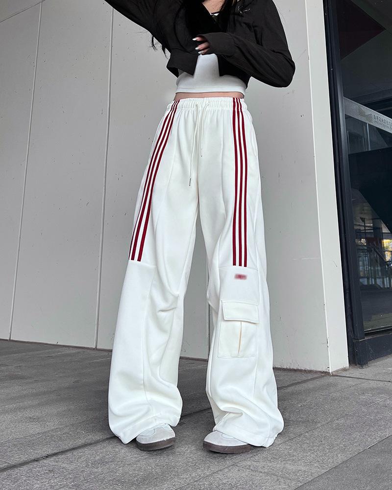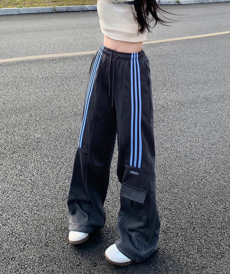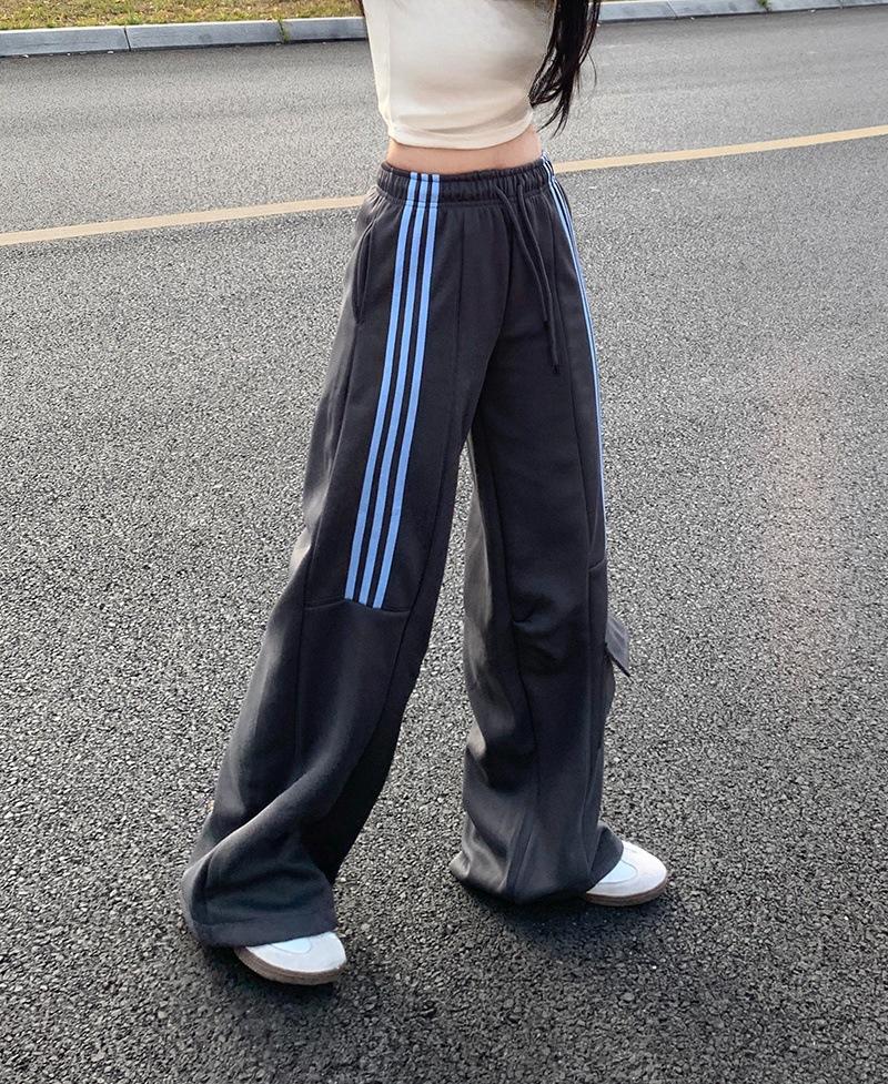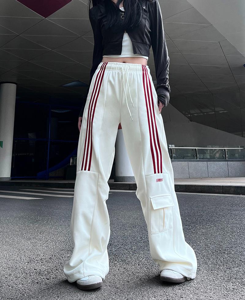 Pantalones deportivos casuales de primavera y otoño con tres barras retro transfronterizas americanas, pantalones holgados de cintura alta y pierna ancha para mujer, pantalones para comercio exterior