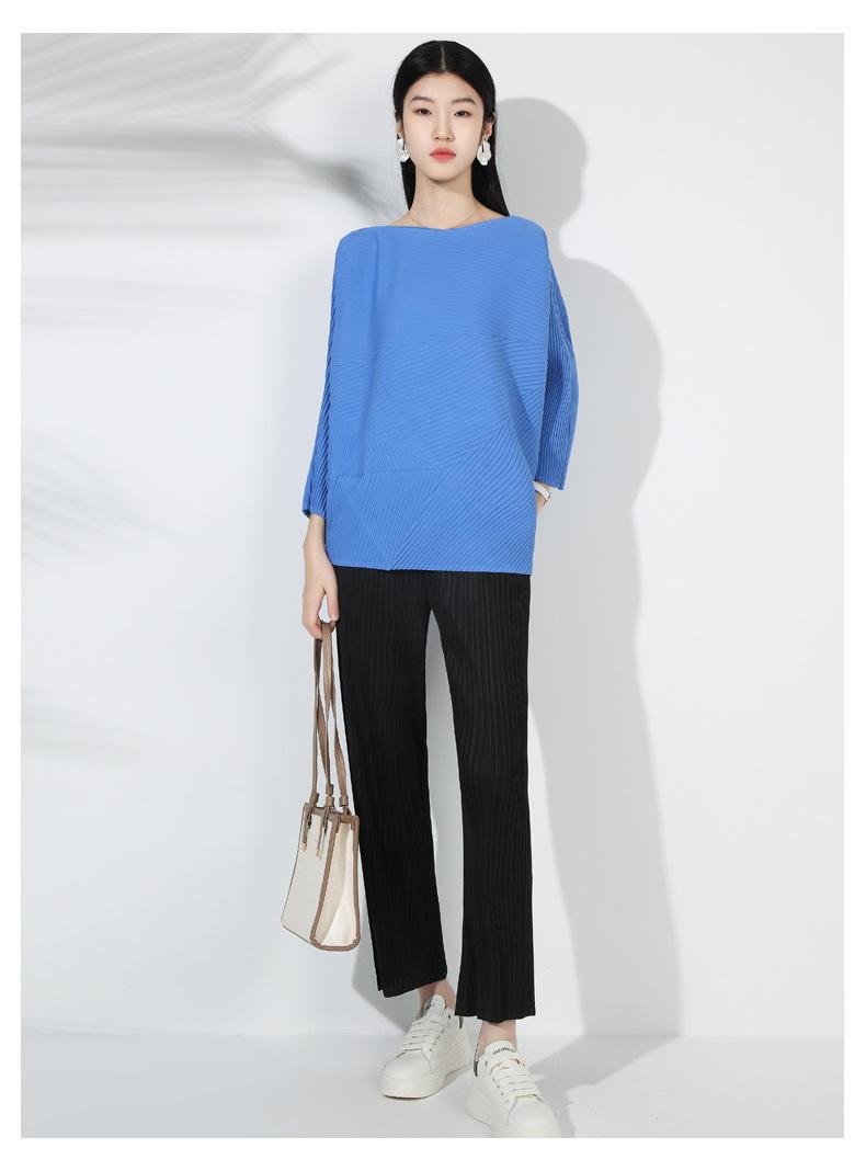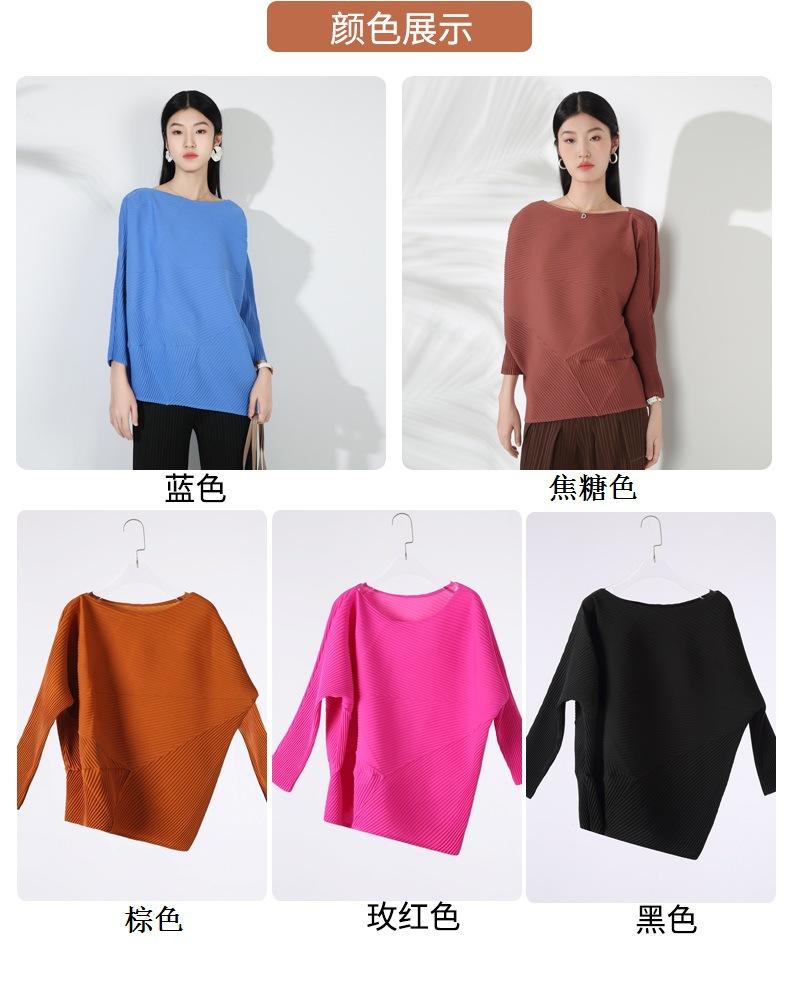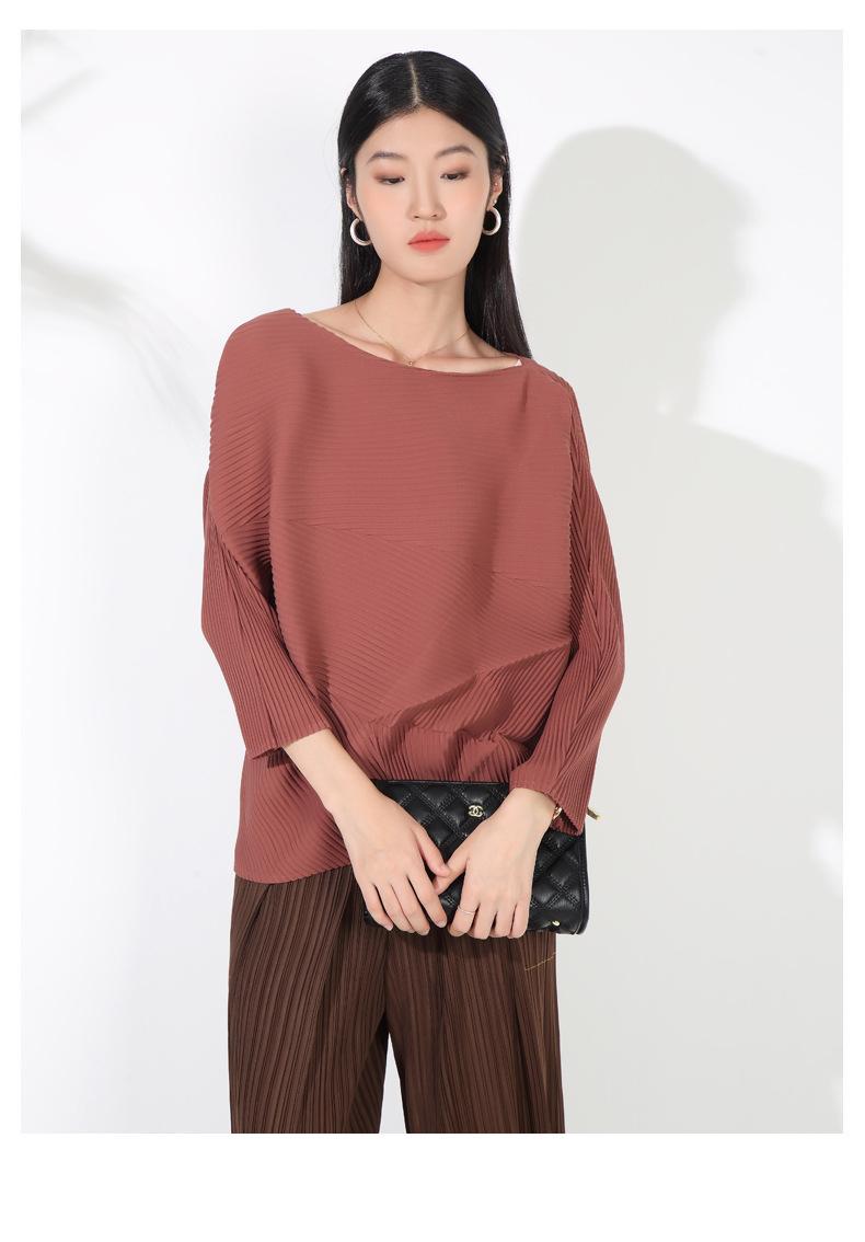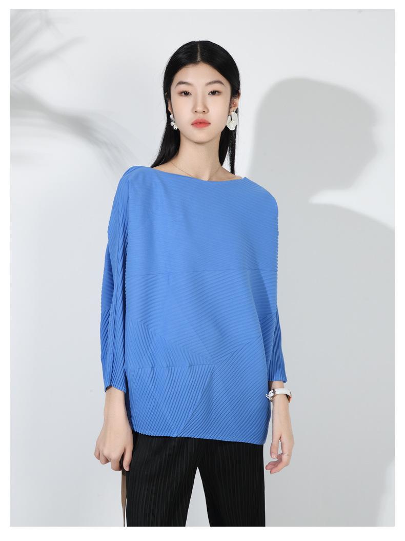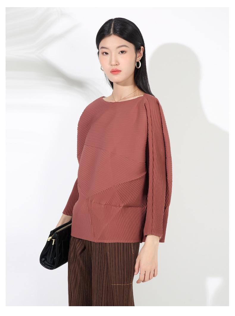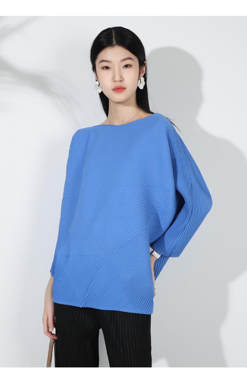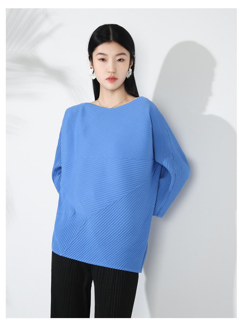 Camiseta plisada de manga larga para mujer, estilo informal, holgada, elegante y combinable, de alta gama, con mangas murciélago, para principios de otoño de 2024