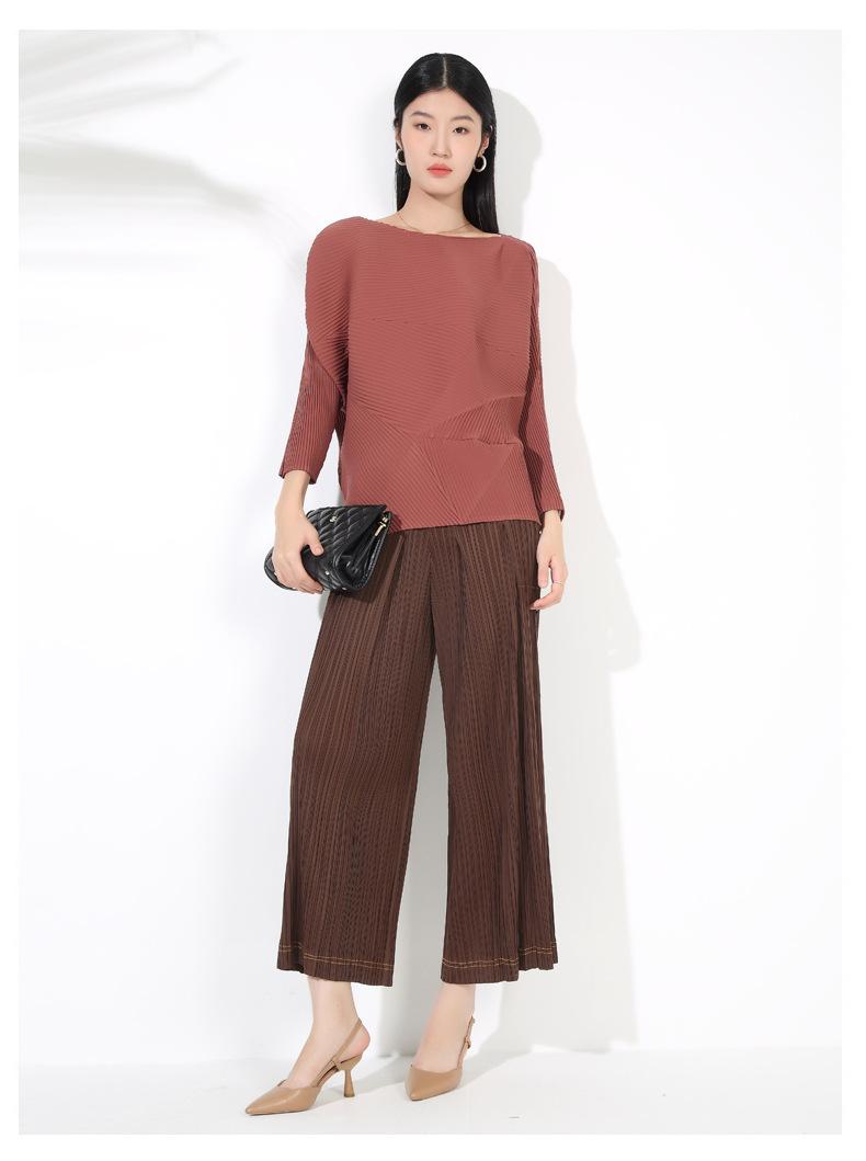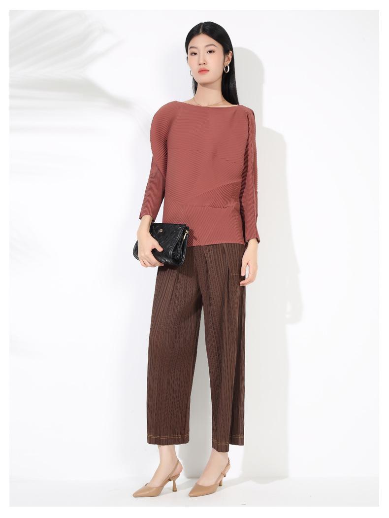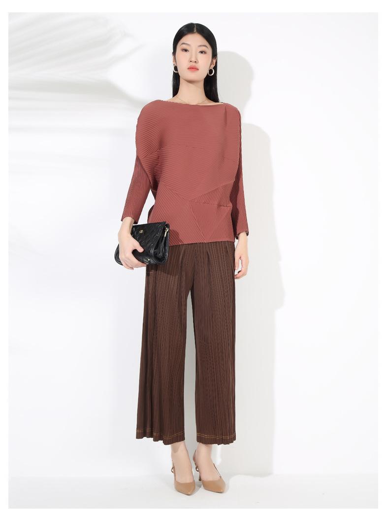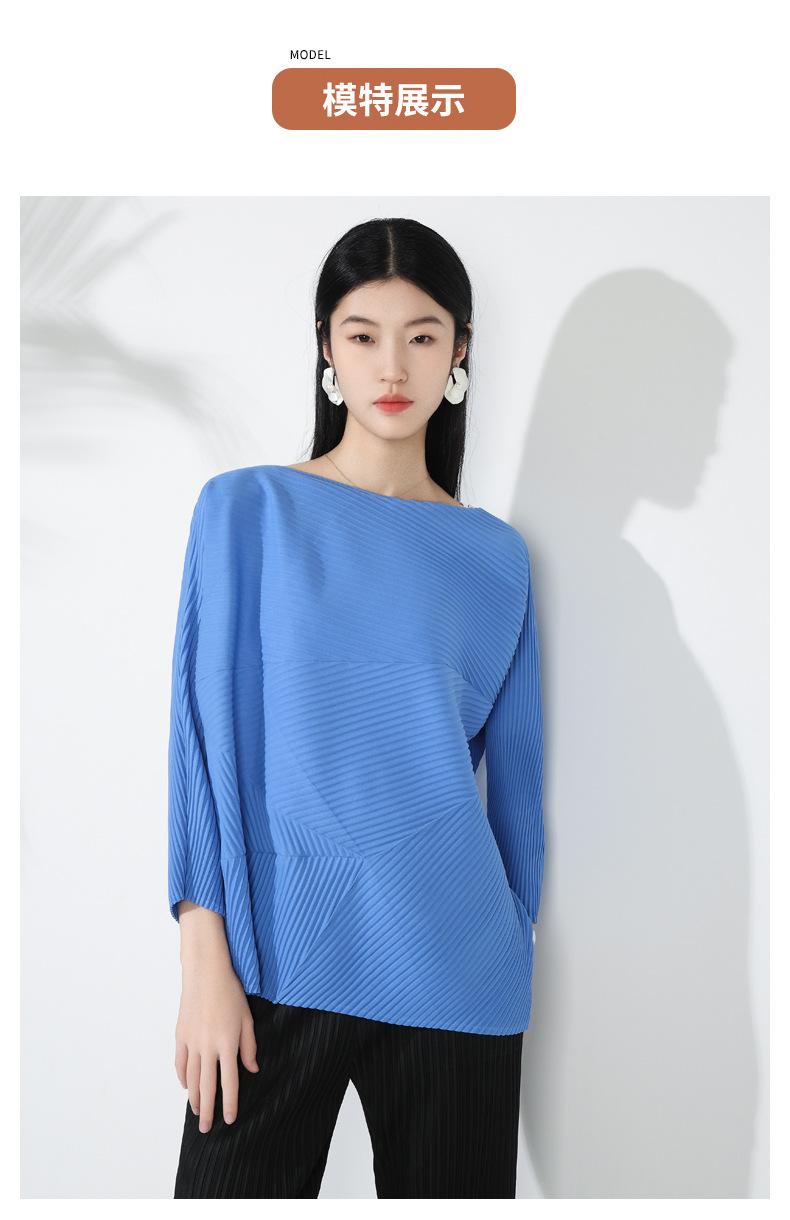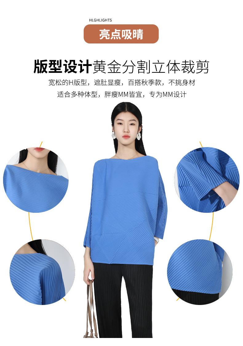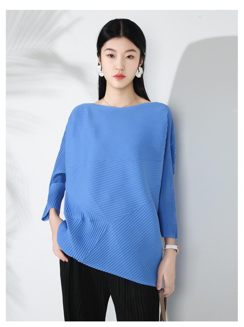 Camiseta plisada de manga larga para mujer, estilo informal, holgada, elegante y combinable, de alta gama, con mangas murciélago, para principios de otoño de 2024