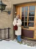 Abrigo de Mujer de Invierno y Otoño Transfronterizo 2025 Blanco Puro Largo Solapa Grande Abrigo de Largo Medio Casual Versátil