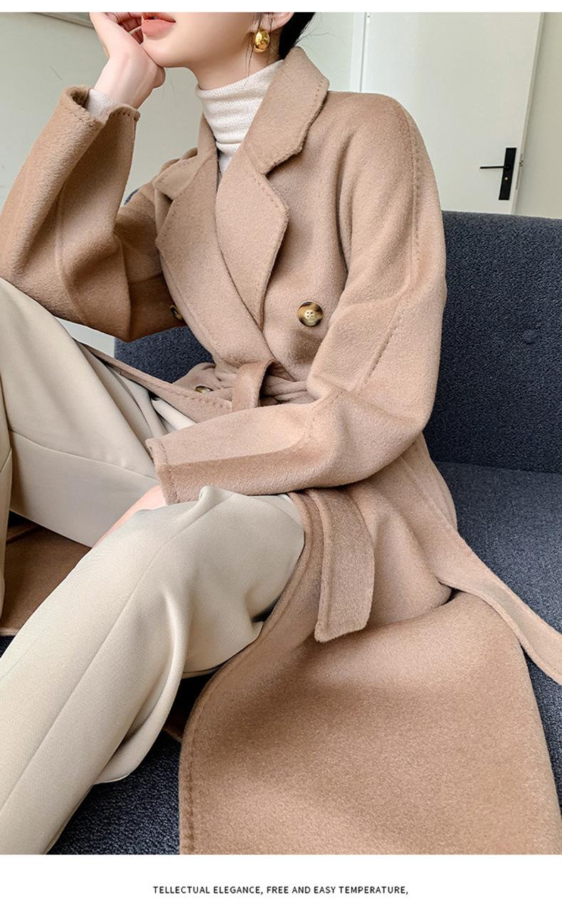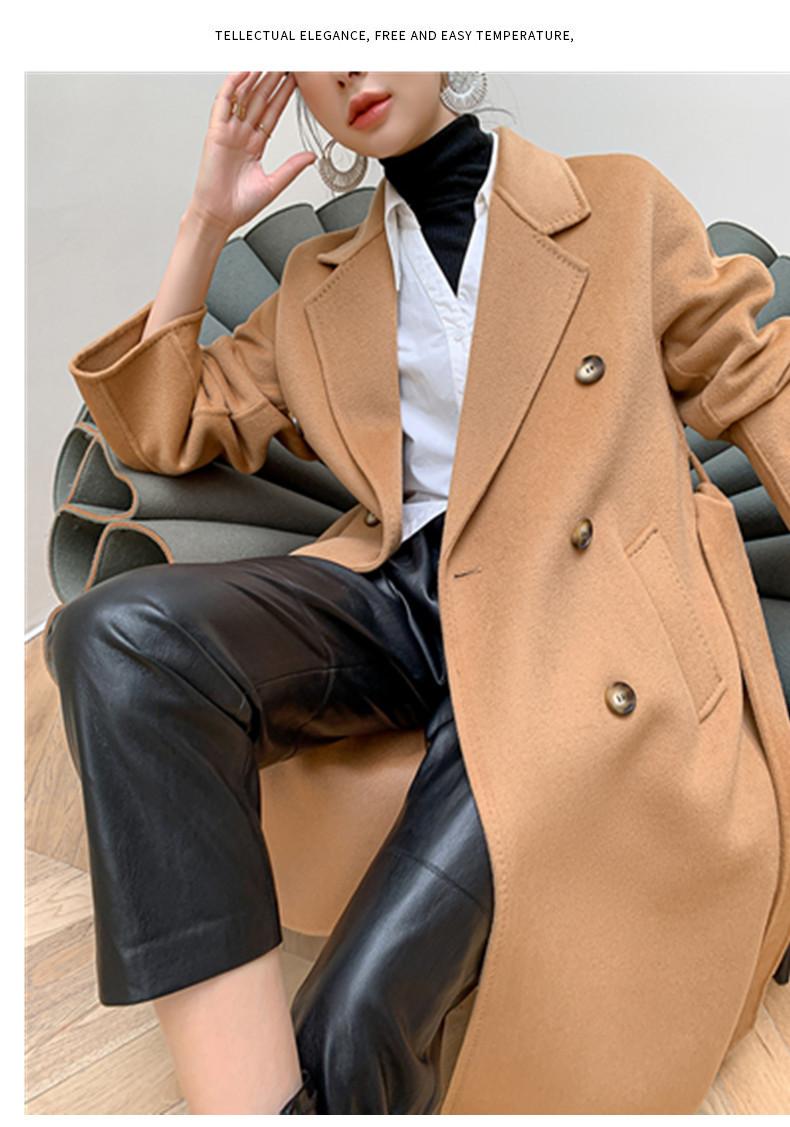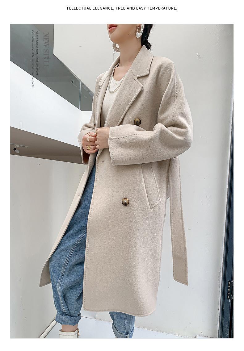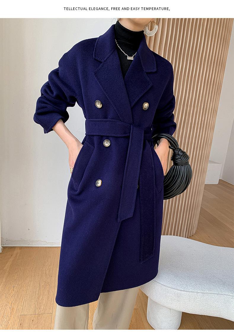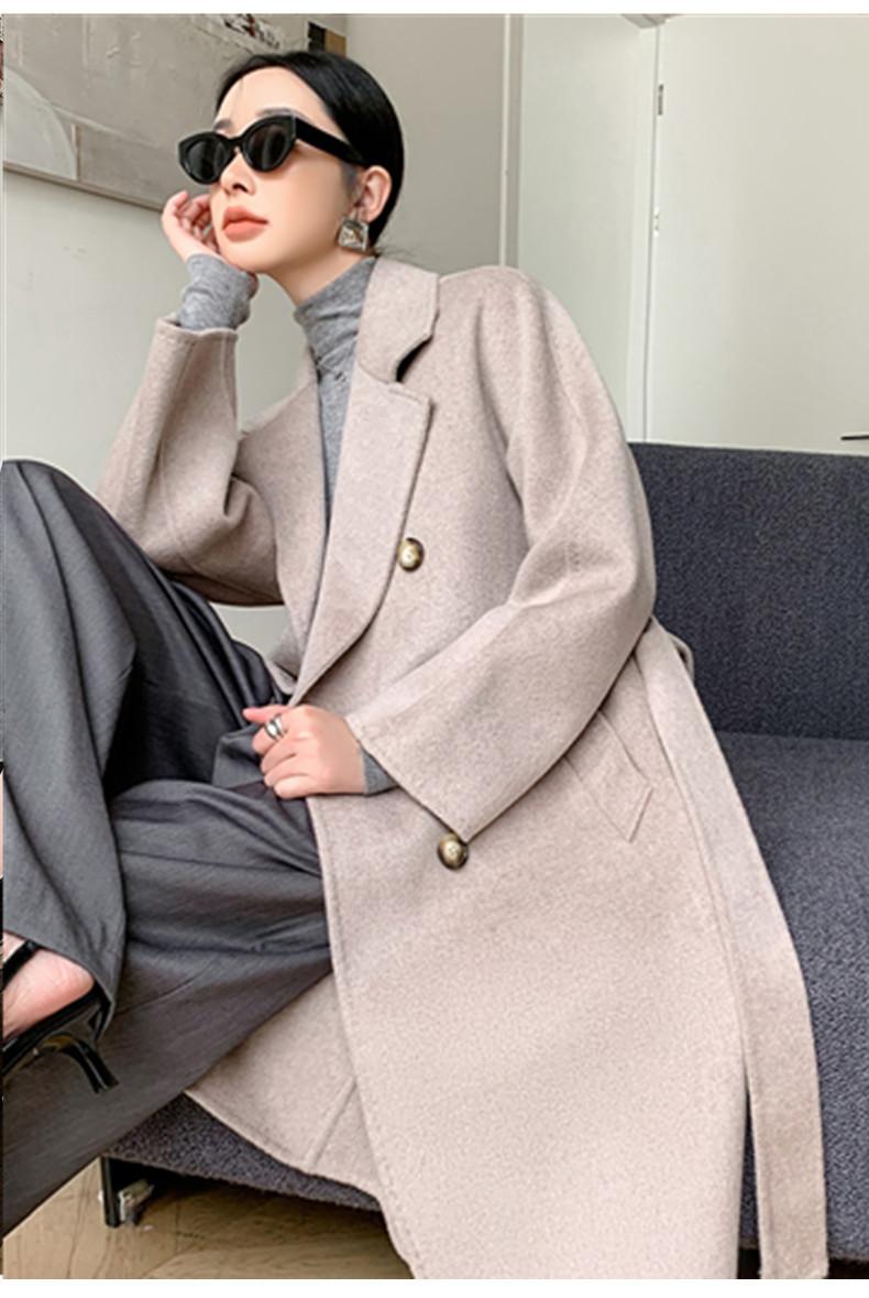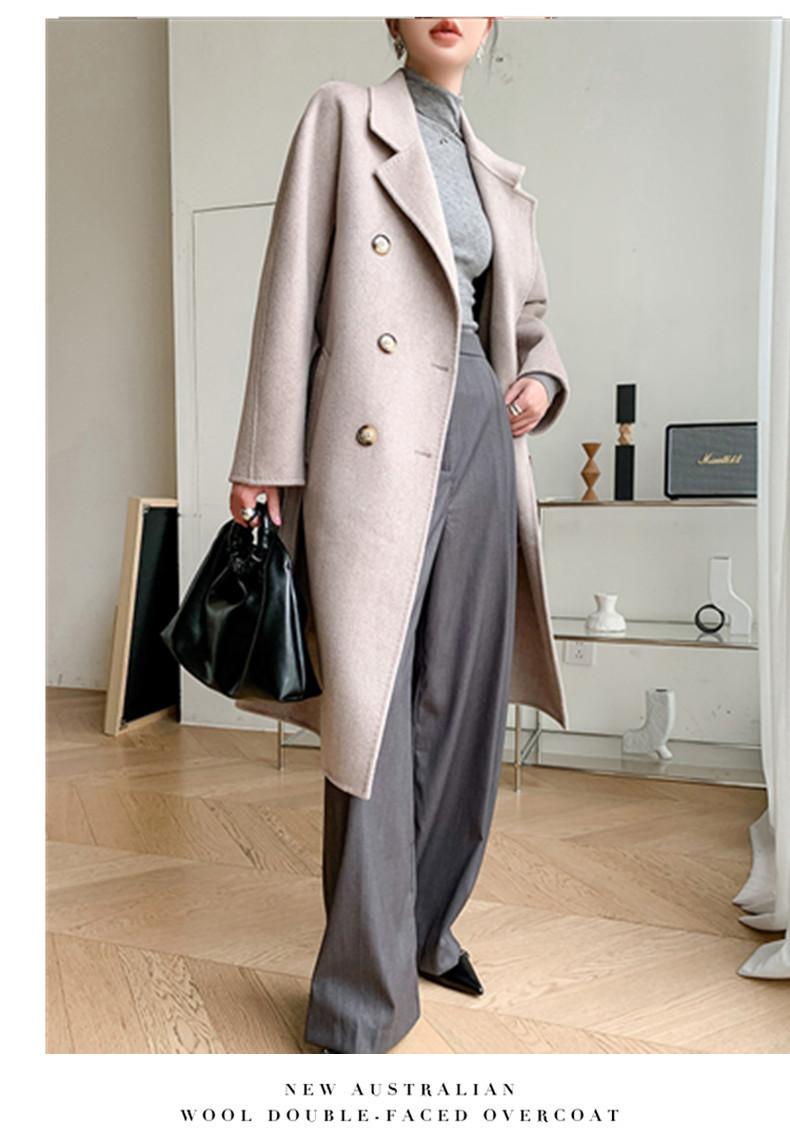 25 Nuevo Otoño e Invierno para Mujer Lana Doble Cara 100% Lana Pura Abrigo Chaqueta de Cachemira Larga de Gama Alta Estilo Británico