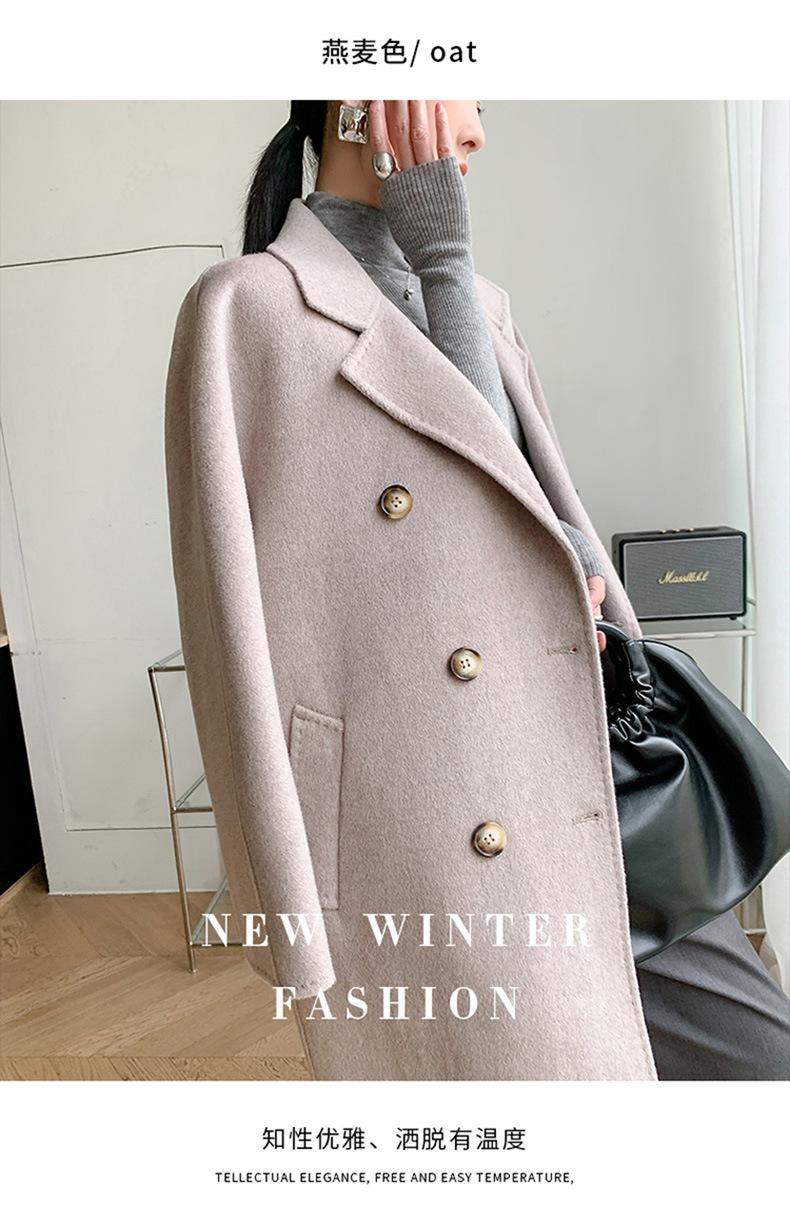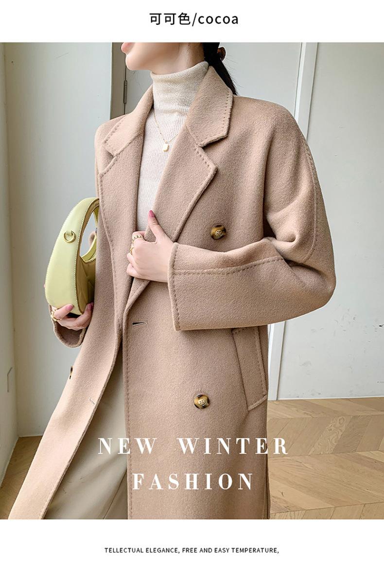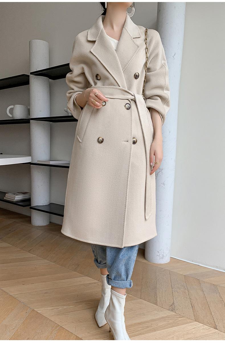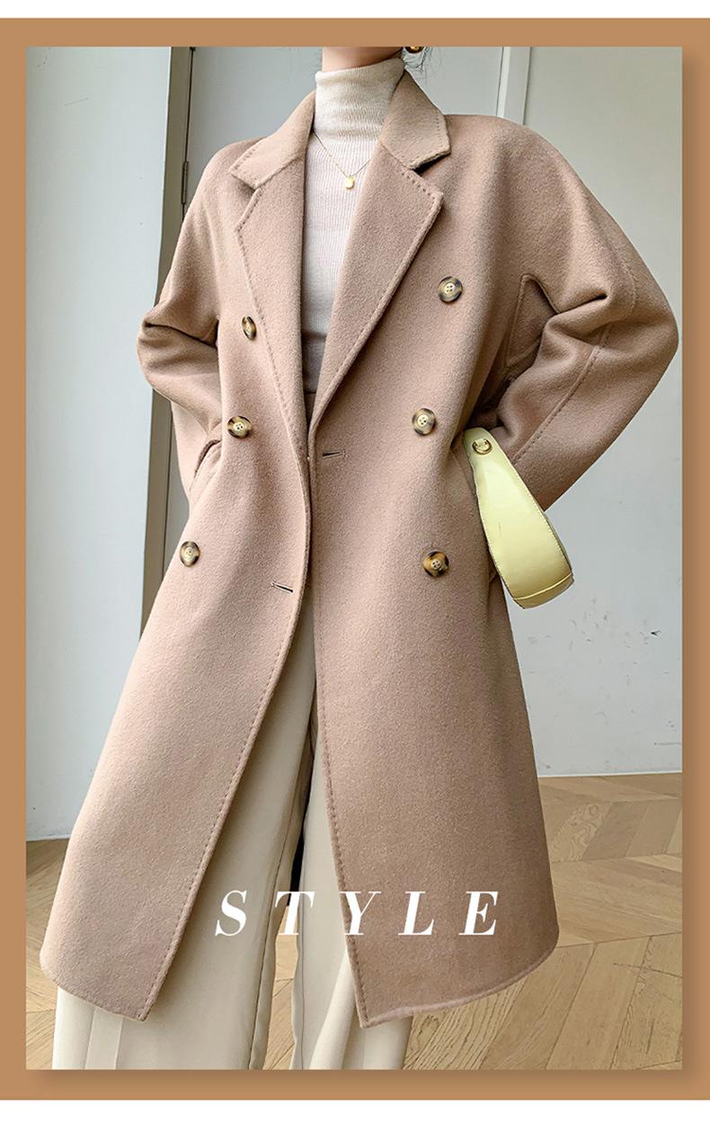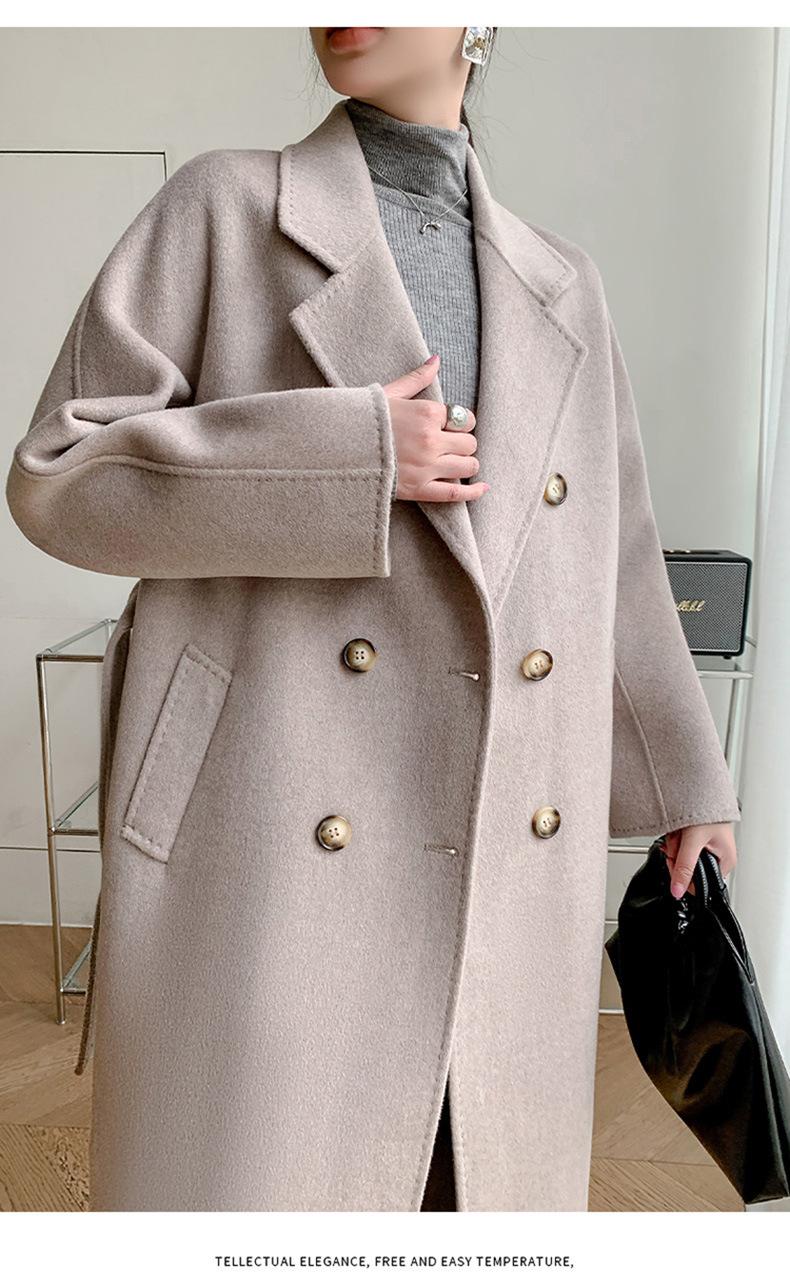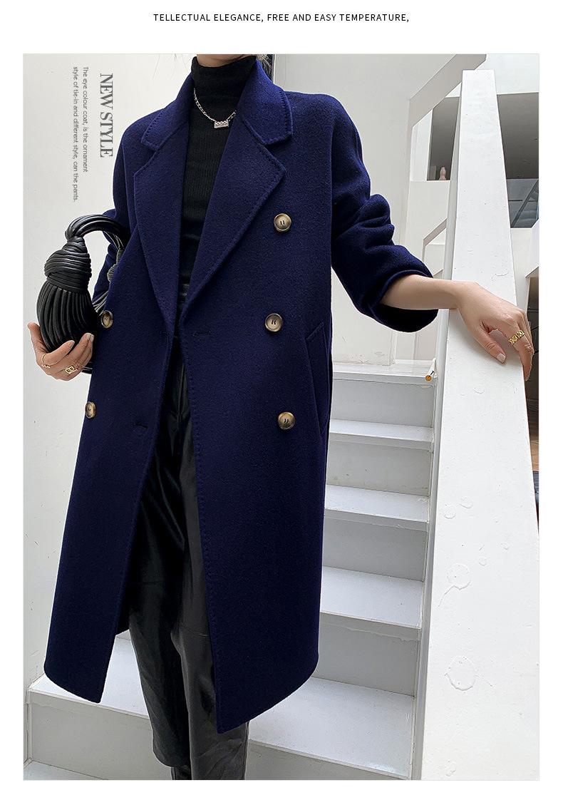 25 Nuevo Otoño e Invierno para Mujer Lana Doble Cara 100% Lana Pura Abrigo Chaqueta de Cachemira Larga de Gama Alta Estilo Británico