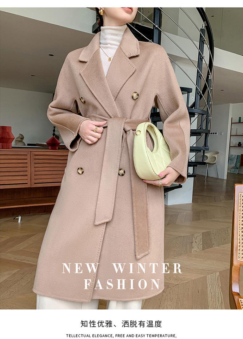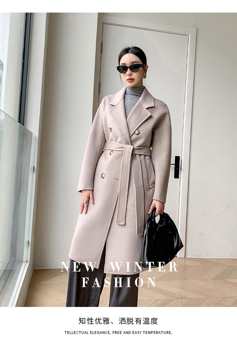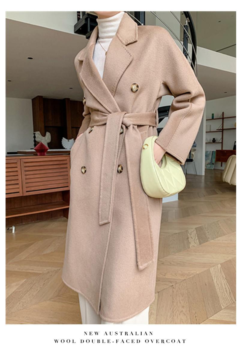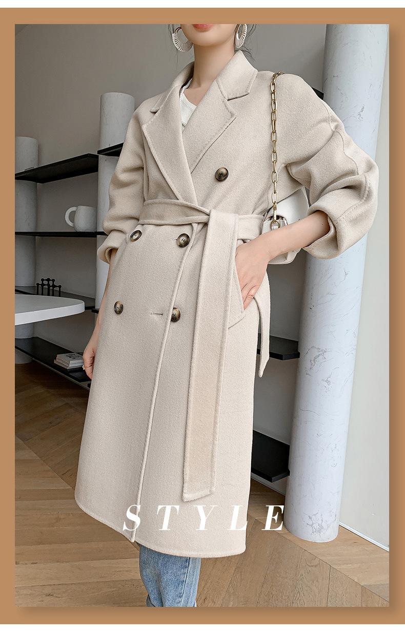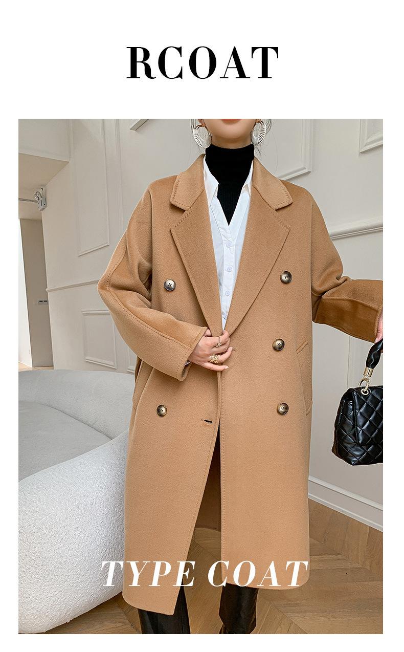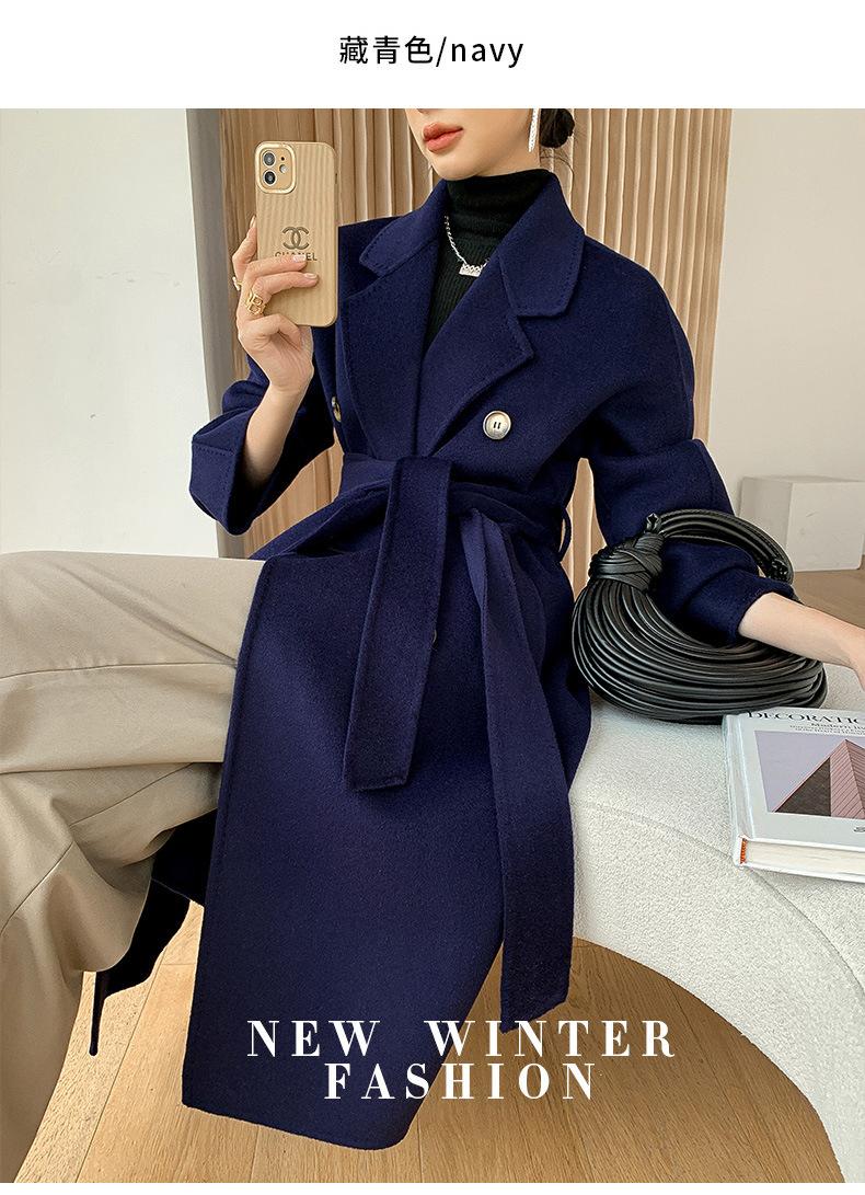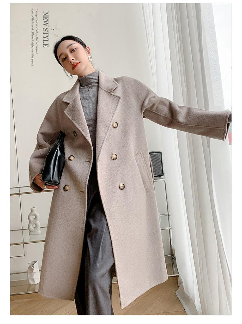 25 Nuevo Otoño e Invierno para Mujer Lana Doble Cara 100% Lana Pura Abrigo Chaqueta de Cachemira Larga de Gama Alta Estilo Británico