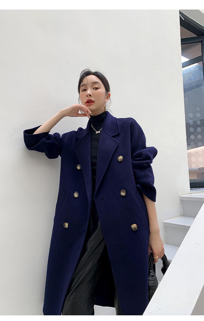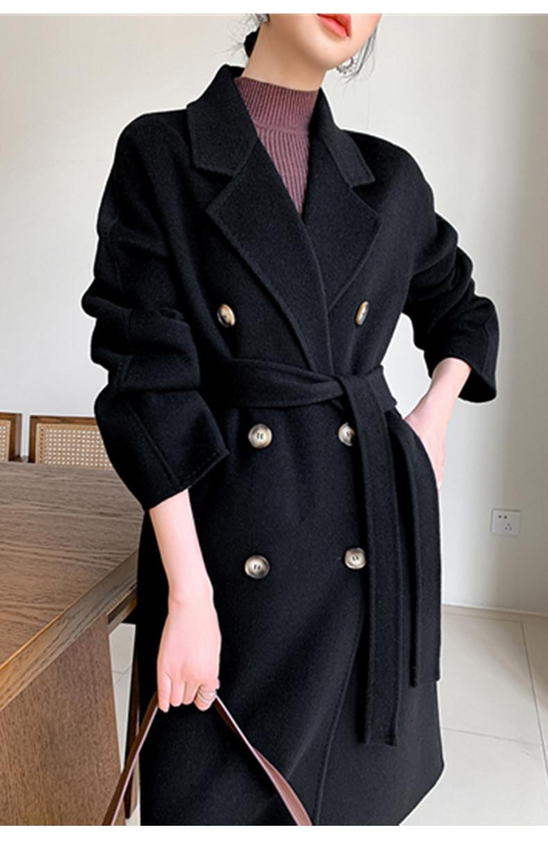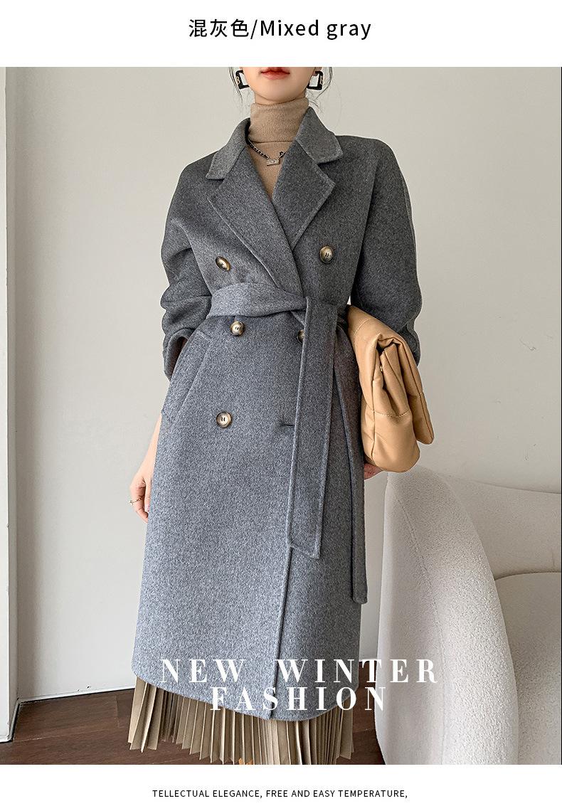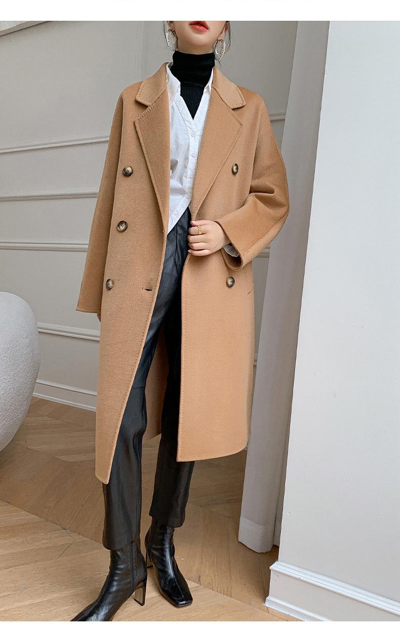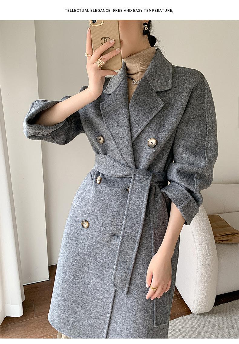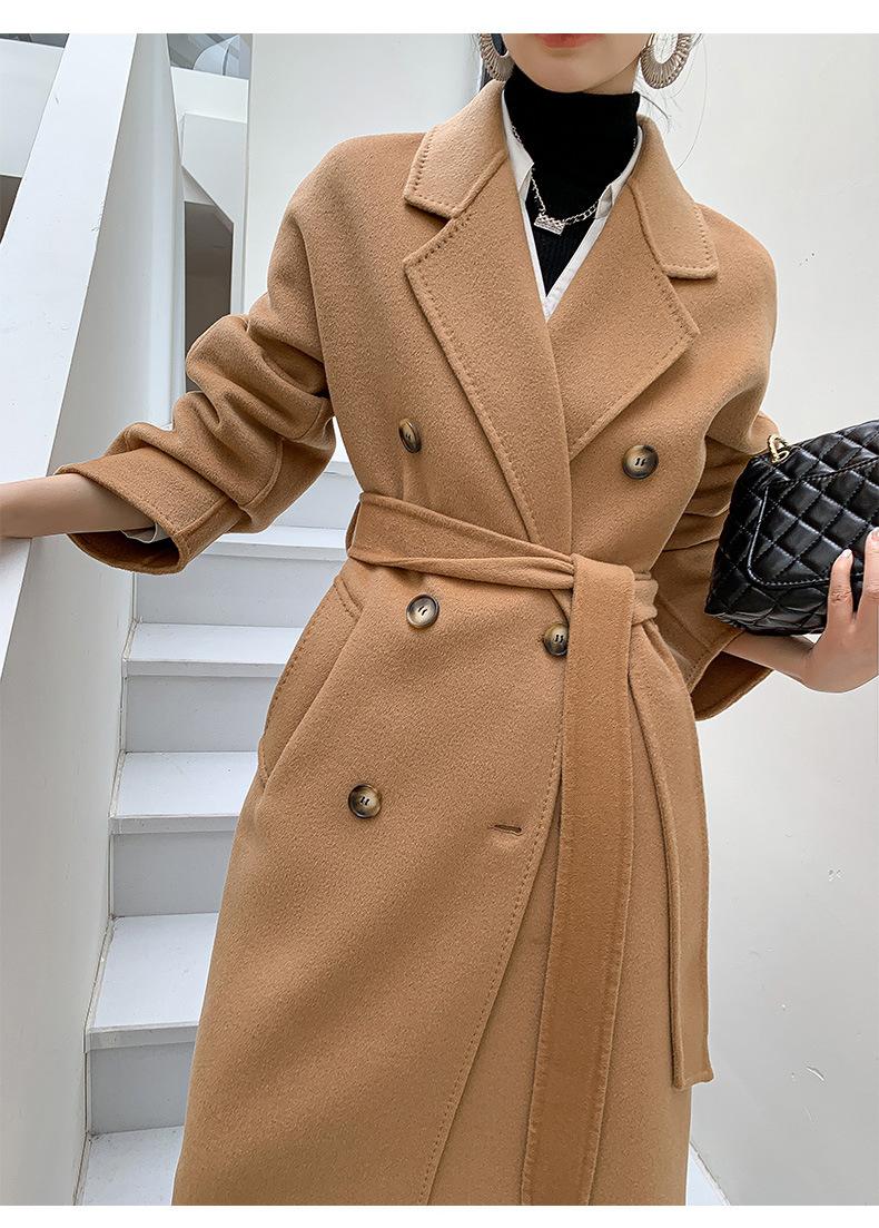 25 Nuevo Otoño e Invierno para Mujer Lana Doble Cara 100% Lana Pura Abrigo Chaqueta de Cachemira Larga de Gama Alta Estilo Británico