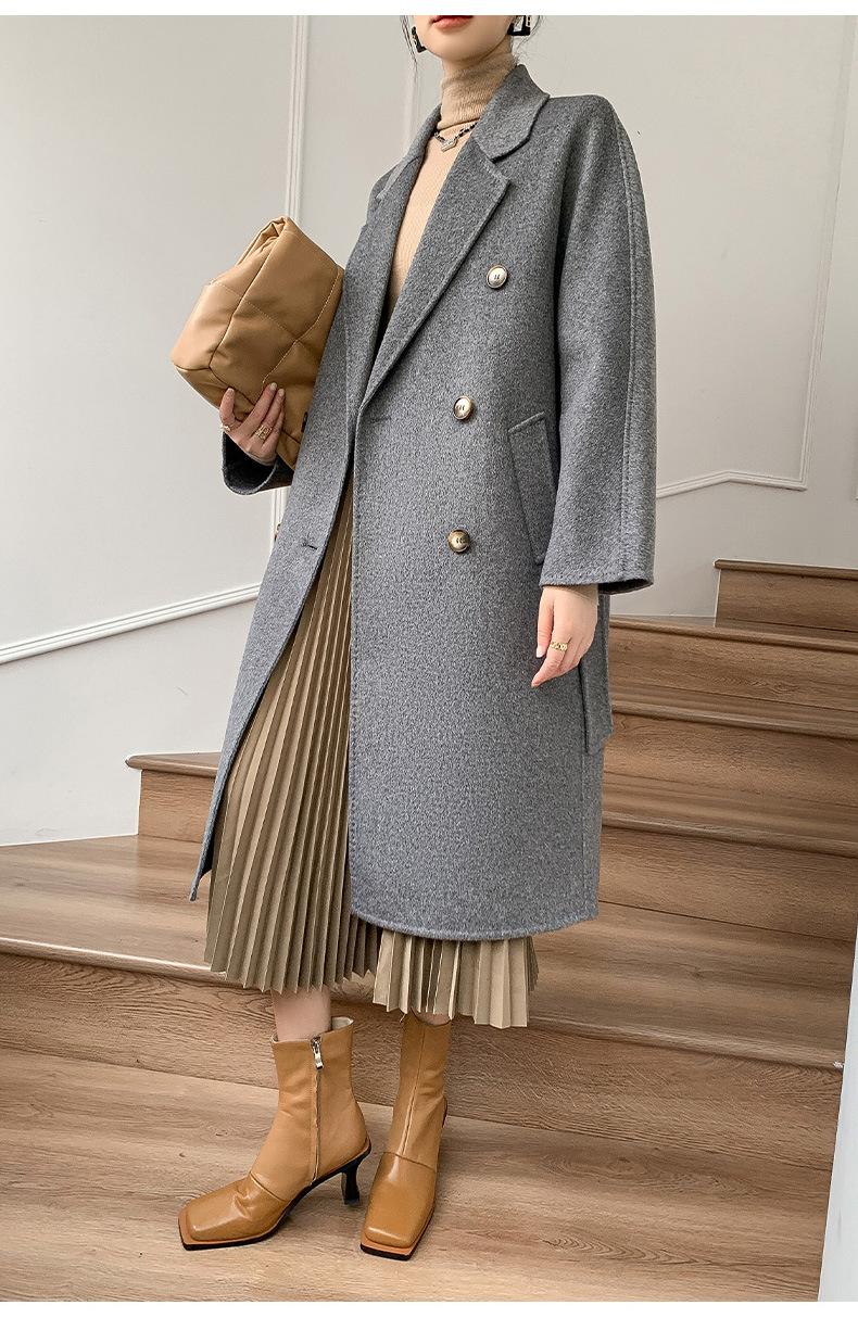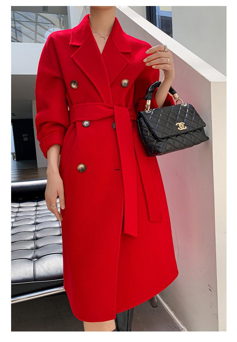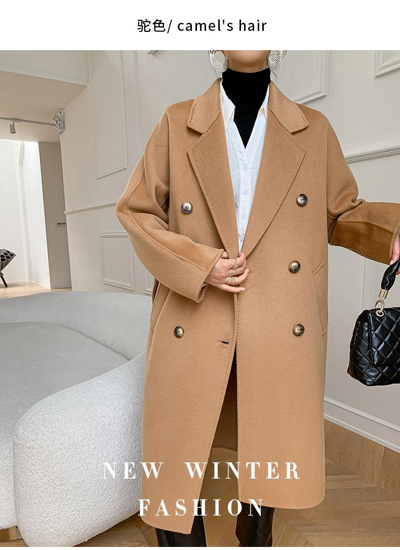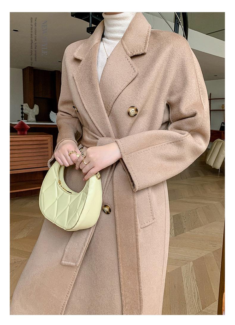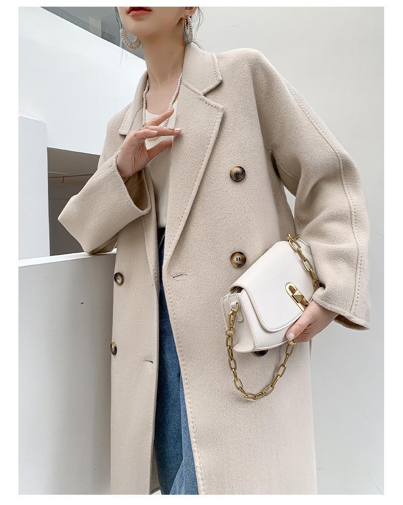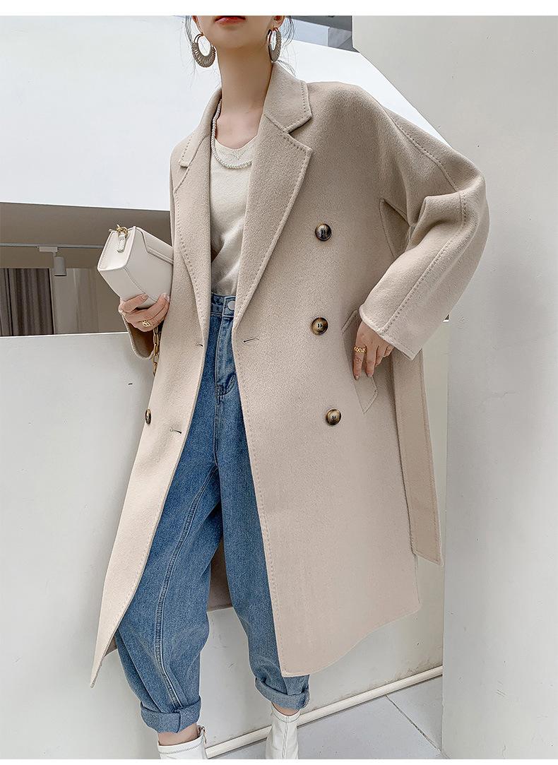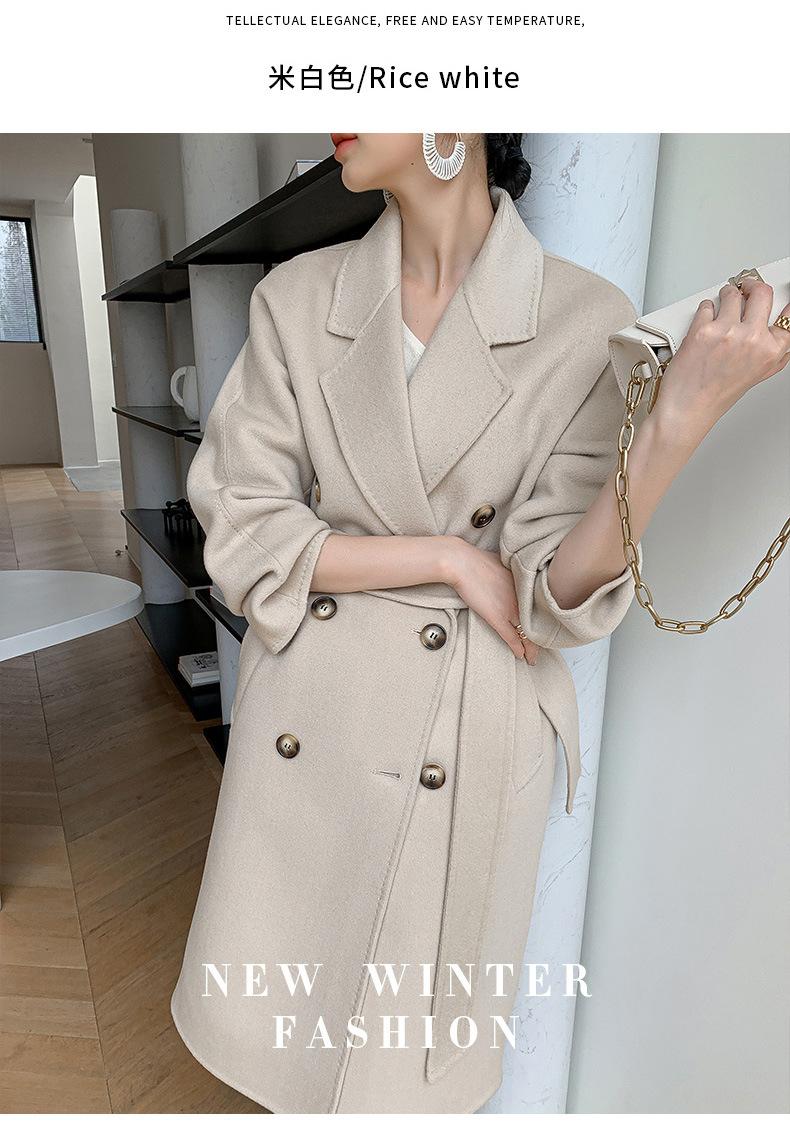 25 Nuevo Otoño e Invierno para Mujer Lana Doble Cara 100% Lana Pura Abrigo Chaqueta de Cachemira Larga de Gama Alta Estilo Británico