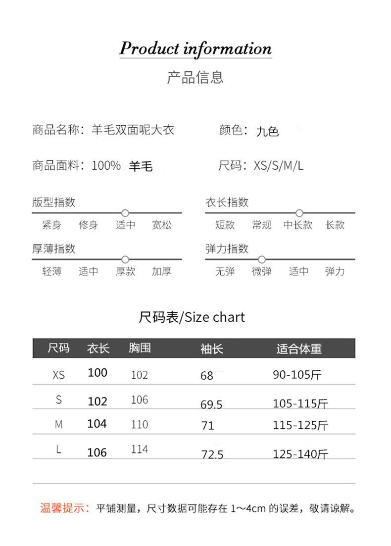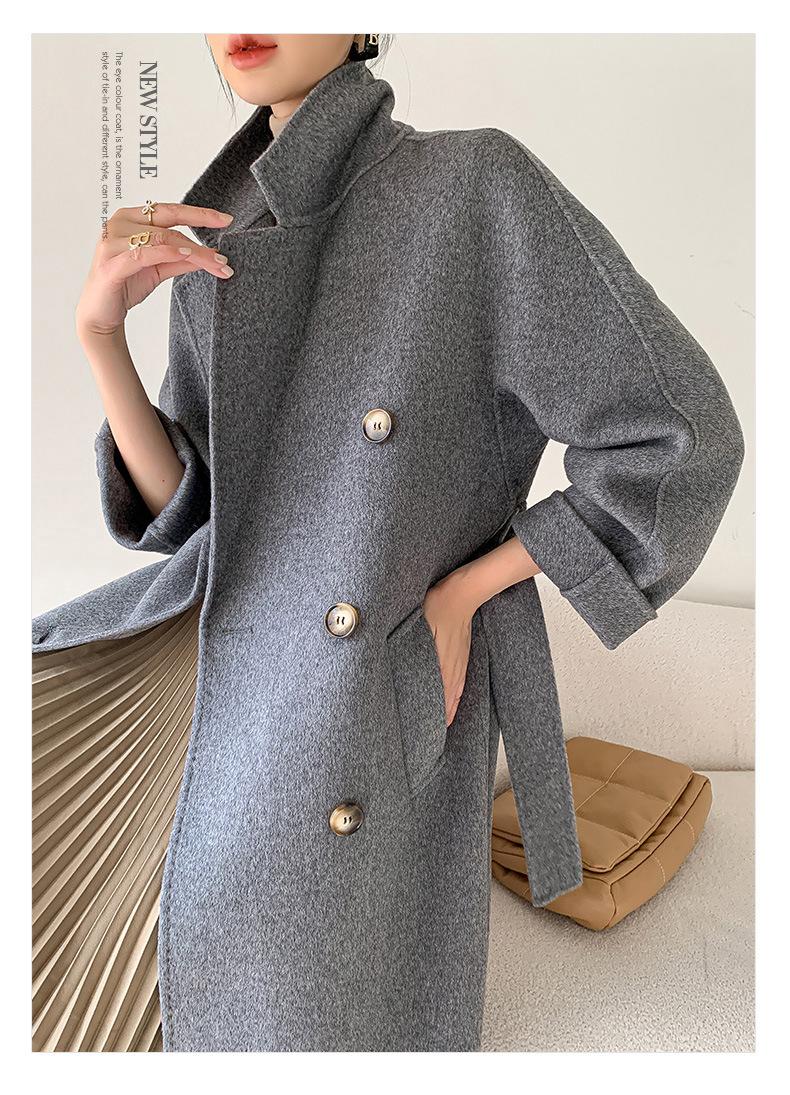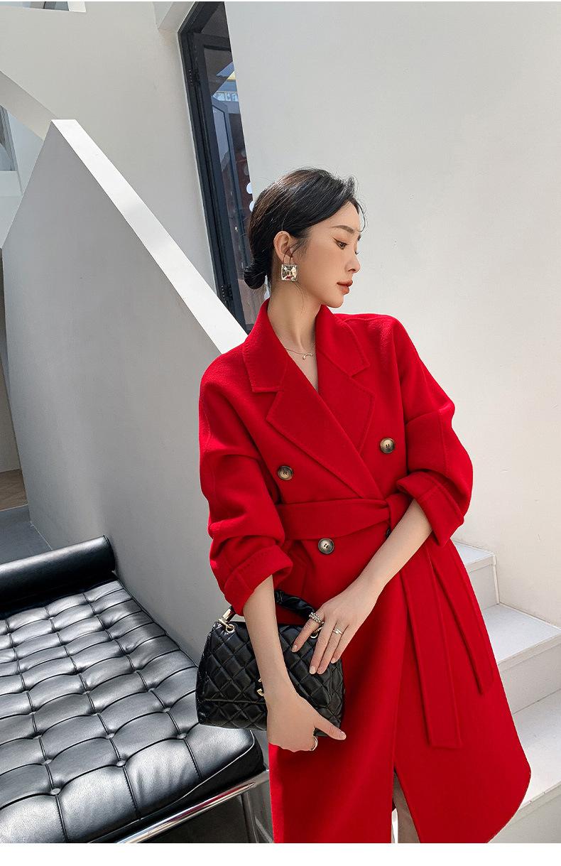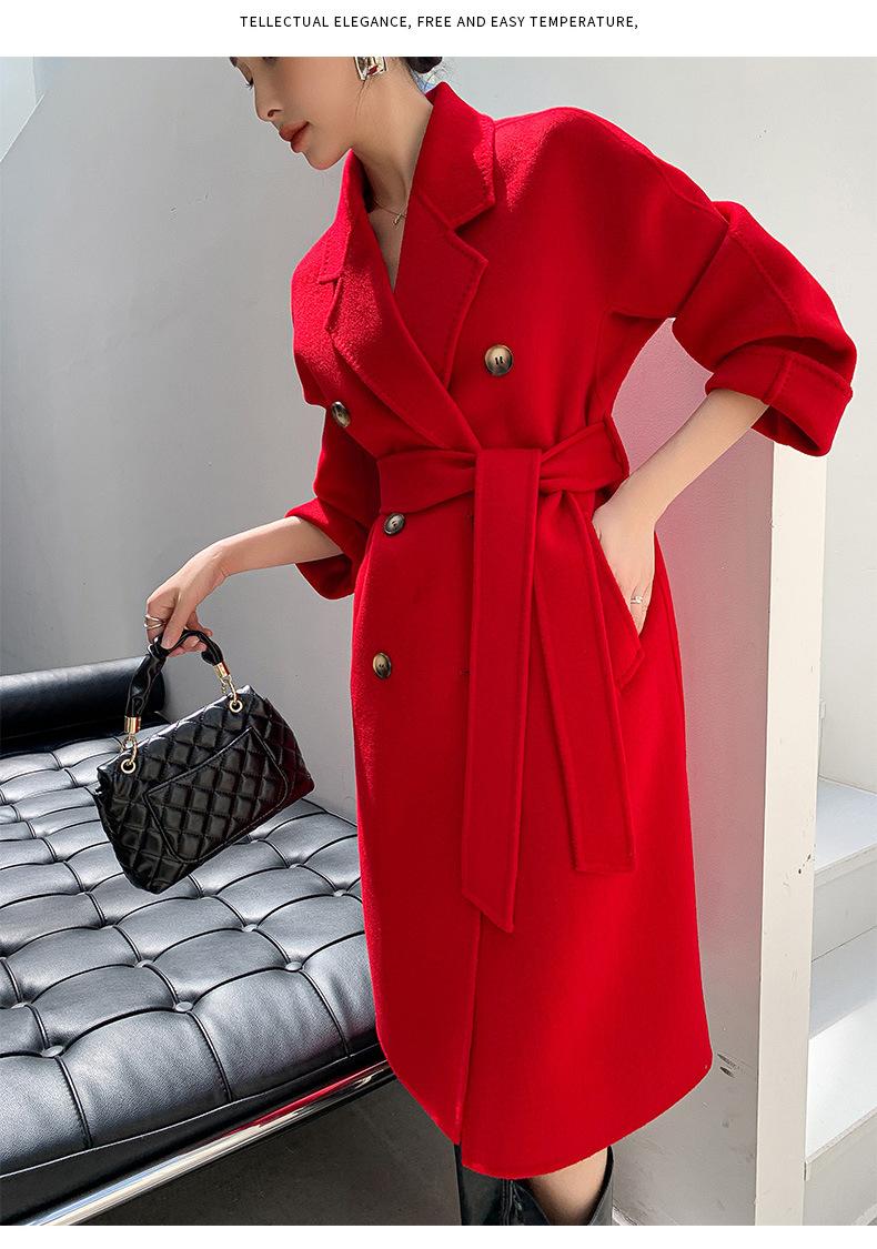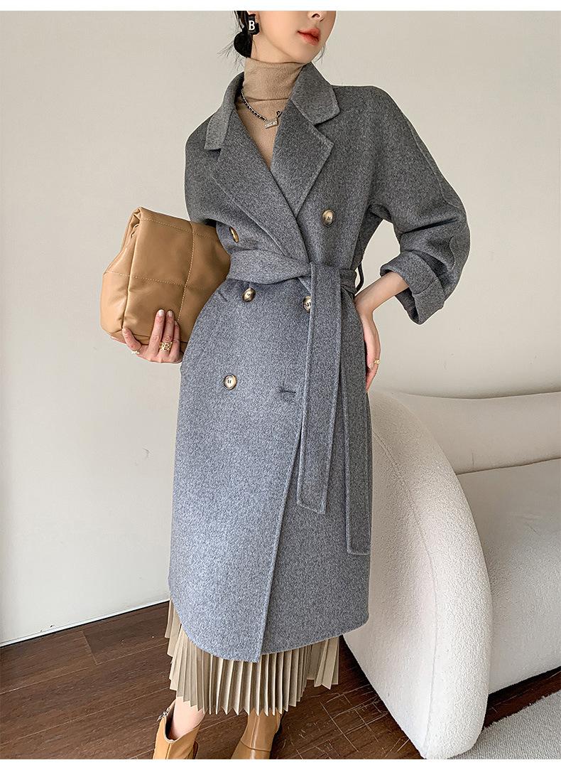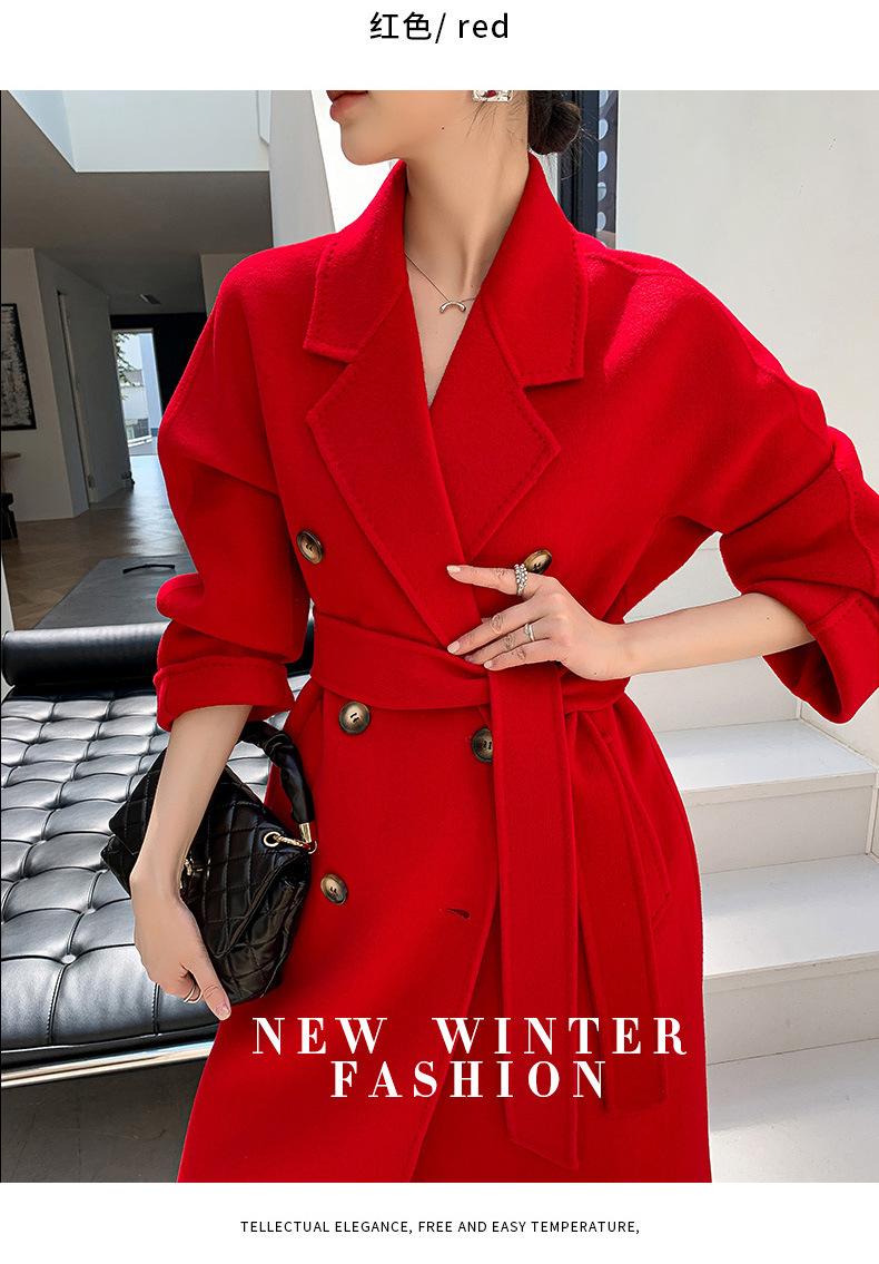 25 Nuevo Otoño e Invierno para Mujer Lana Doble Cara 100% Lana Pura Abrigo Chaqueta de Cachemira Larga de Gama Alta Estilo Británico