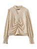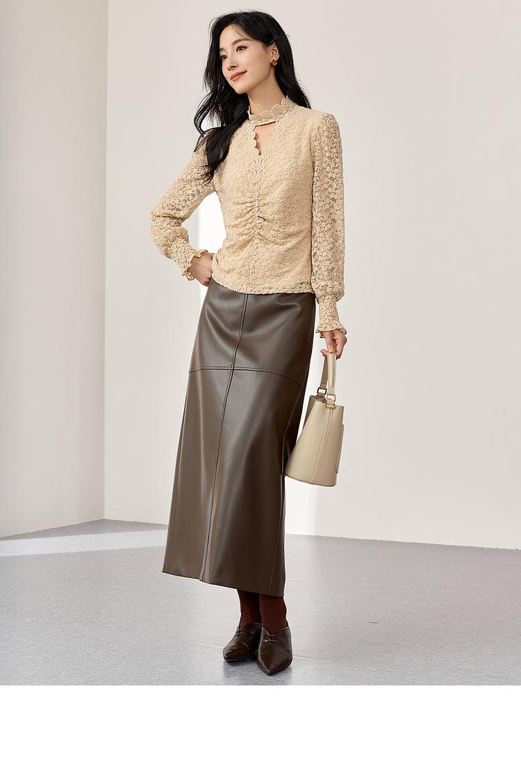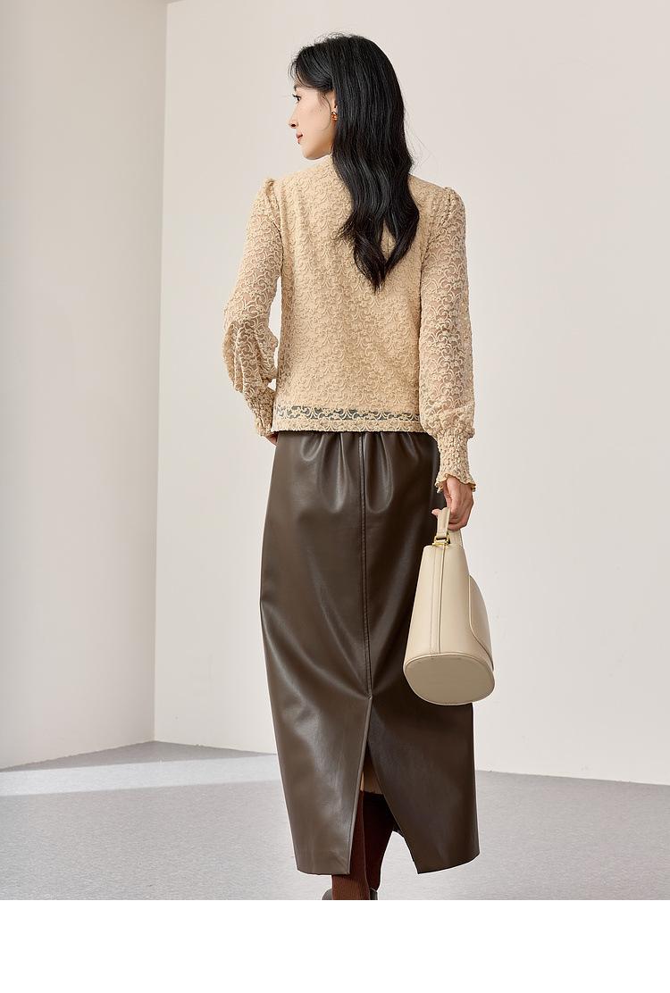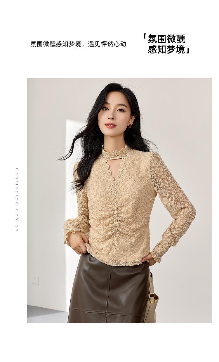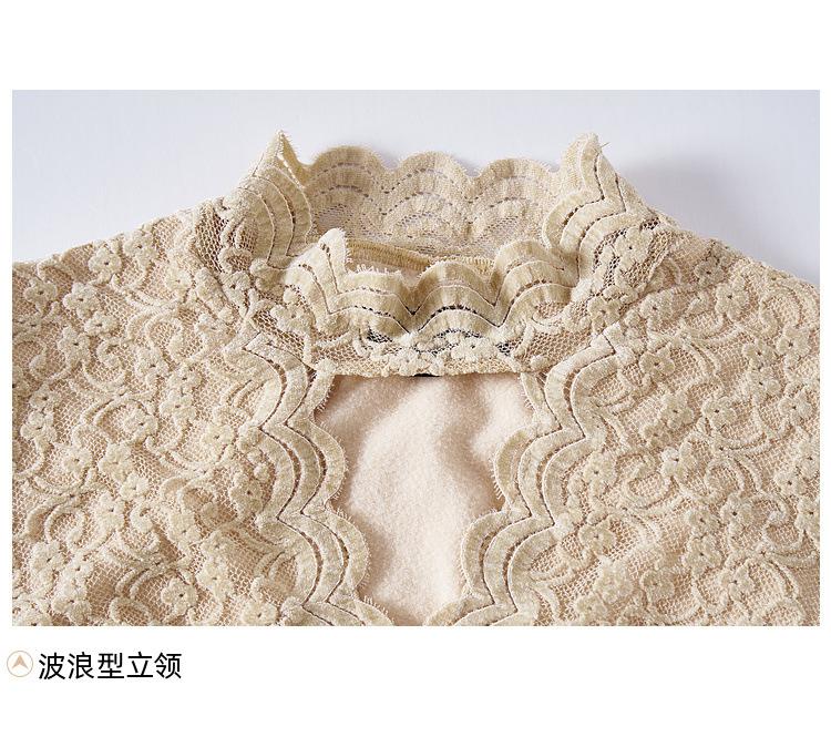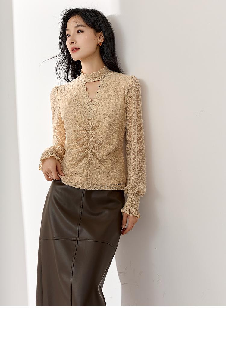 Zhen Xi Nueva Camisa de Encaje Calada con Cuello y Manga Larga para Mujer, Moda Casual con Perspectiva de Encaje Polar SQ102