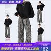Pantalones vaqueros de pierna ancha con estampado de leopardo americano para mujer, primavera y otoño, nuevos pantalones rectos holgados y adelgazantes de cintura alta