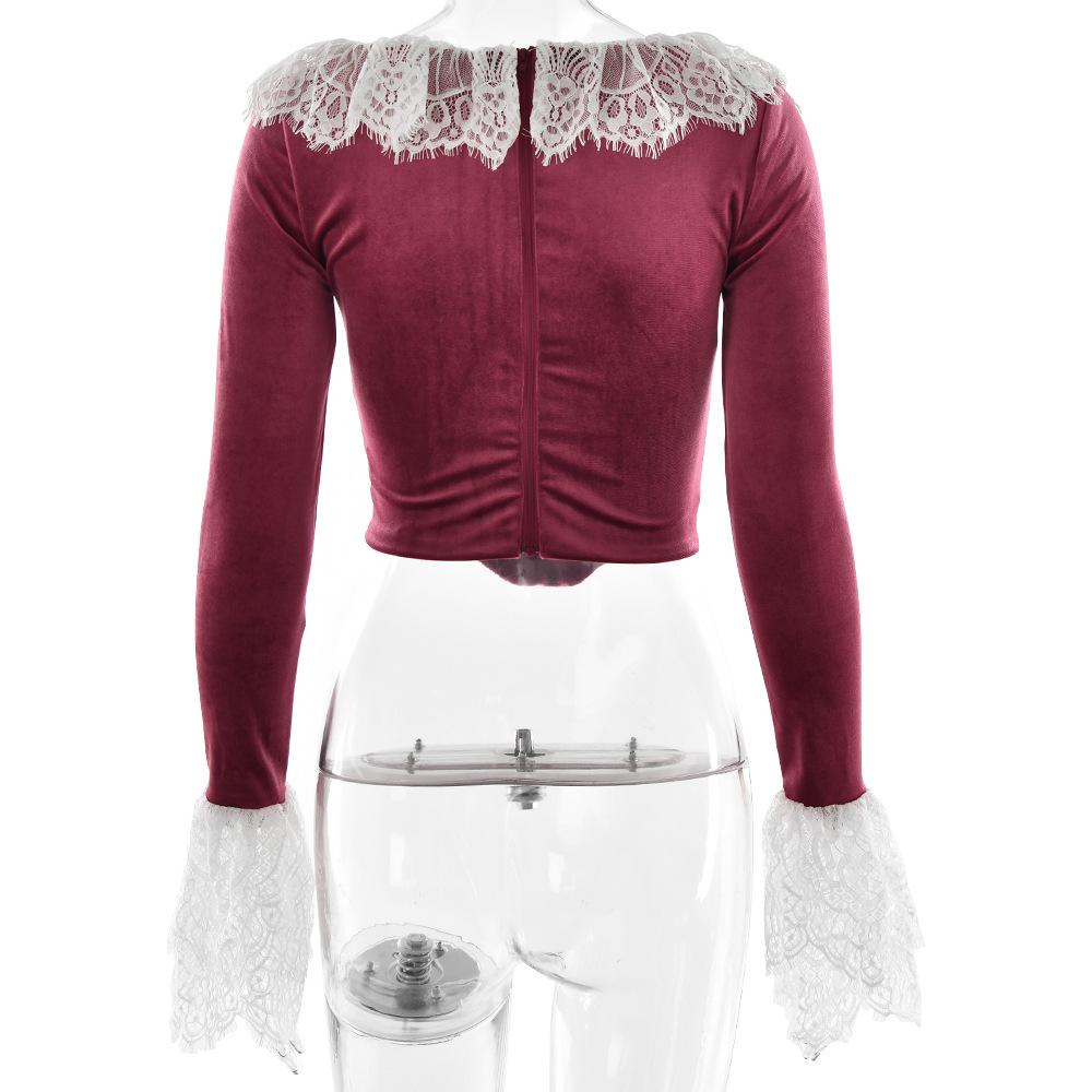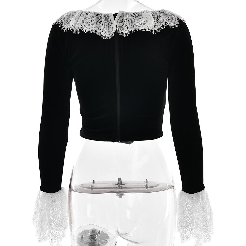 Compra Nuevo otoño e invierno 2024 transfronterizo, camiseta de encaje con cuello cuadrado y encaje, estilo europeo y americano, sexy, ajustada, manga trompeta al por mayor en Joom.pro