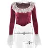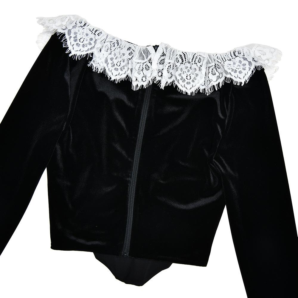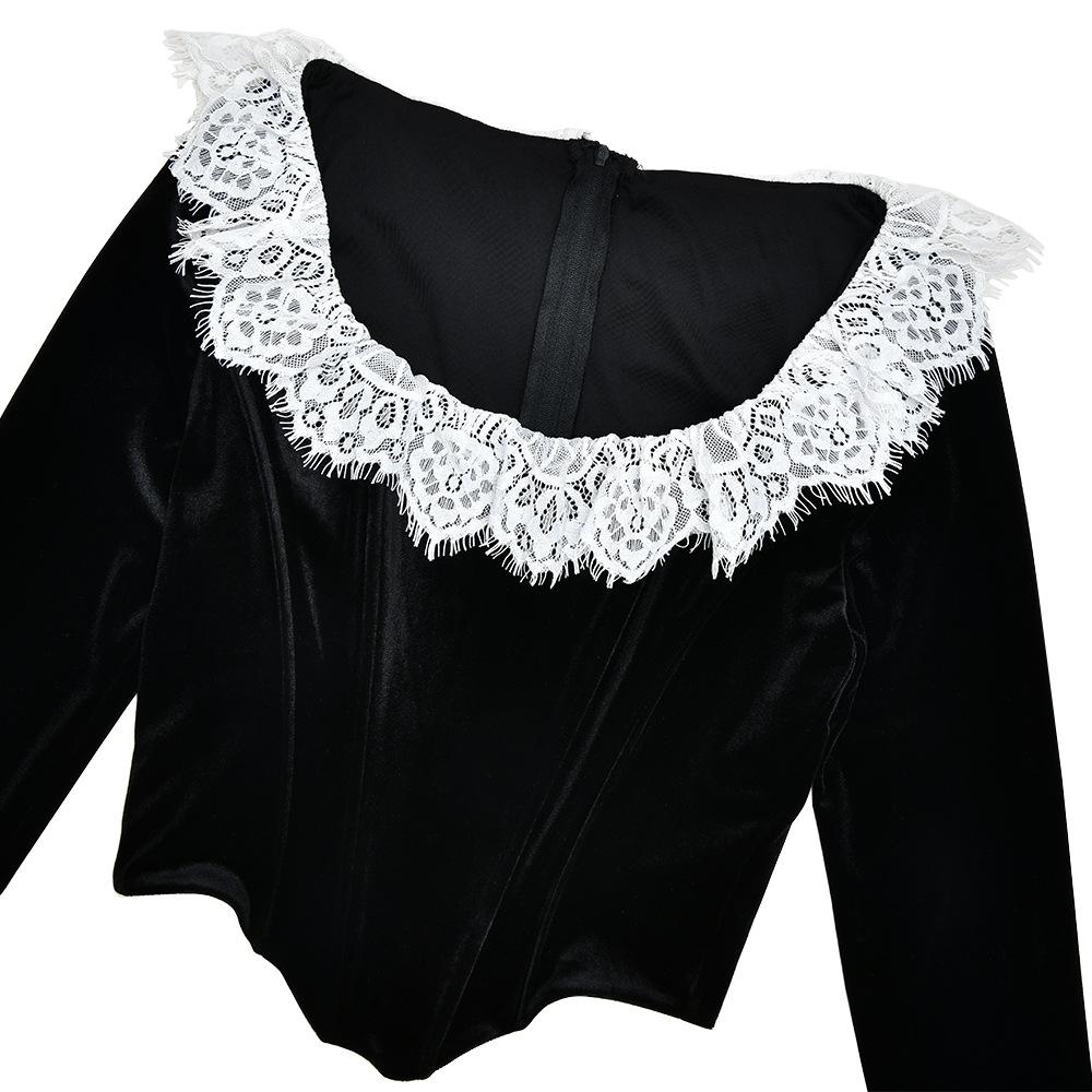Black, Burgundy, Made of korean velvet fabric, lace design, Note: contains fish bones, zipper in the back