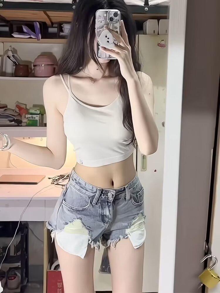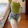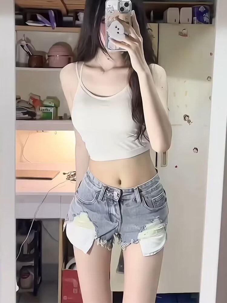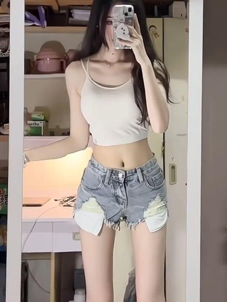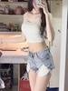 Pantalones vaqueros rotos de verano para mujer, finos, pequeños y sexys, súper cortos, de cintura alta, con pierna ancha, corte A, para verano