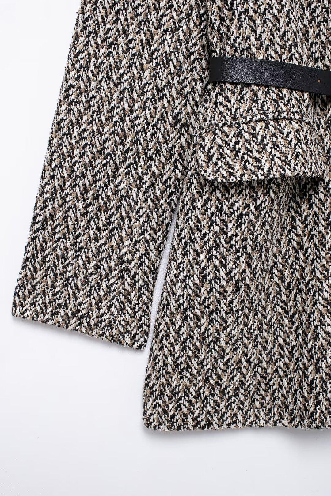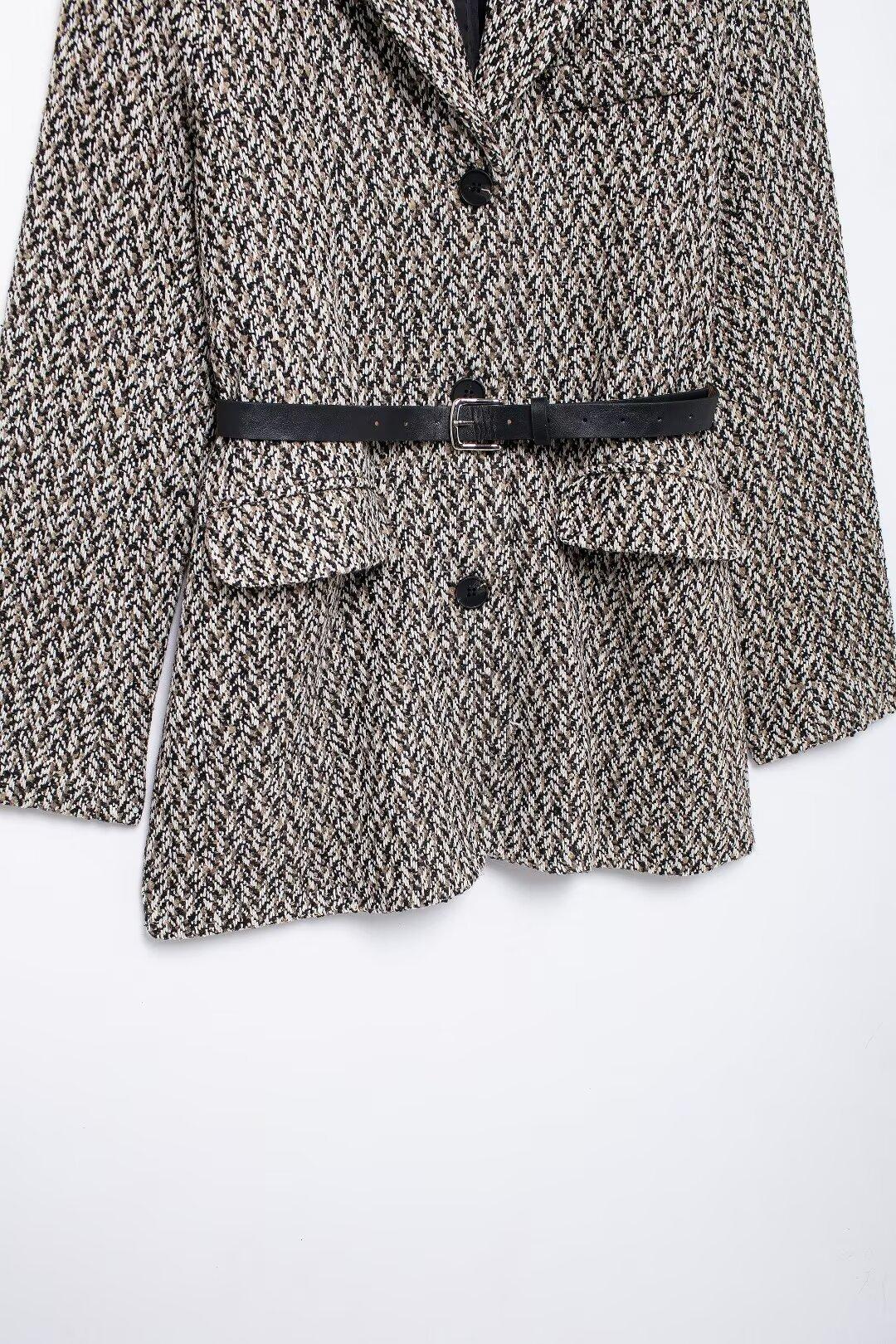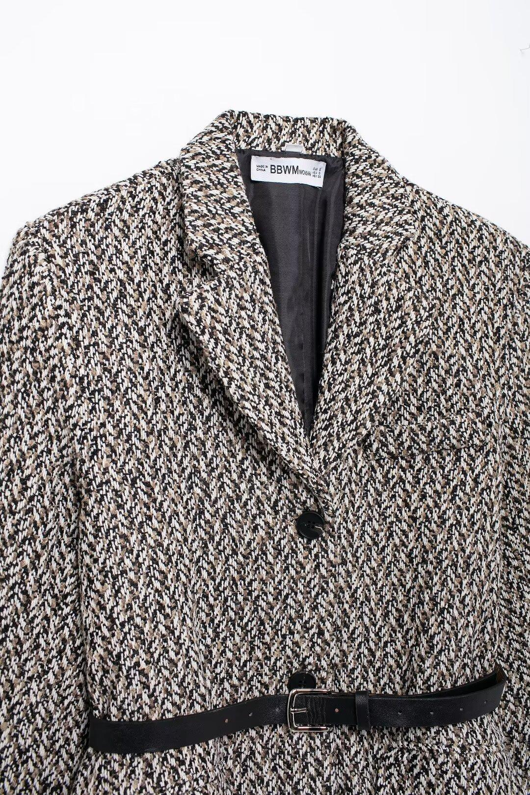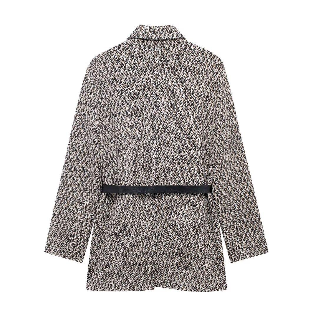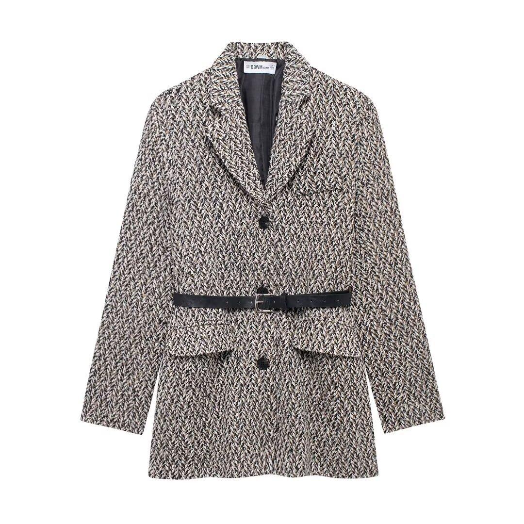 Chaqueta de traje holgada con cinturón para mujer europea y americana de comercio exterior transfronterizo de Amazon, otoño e invierno de 2024, nueva moda urbana