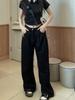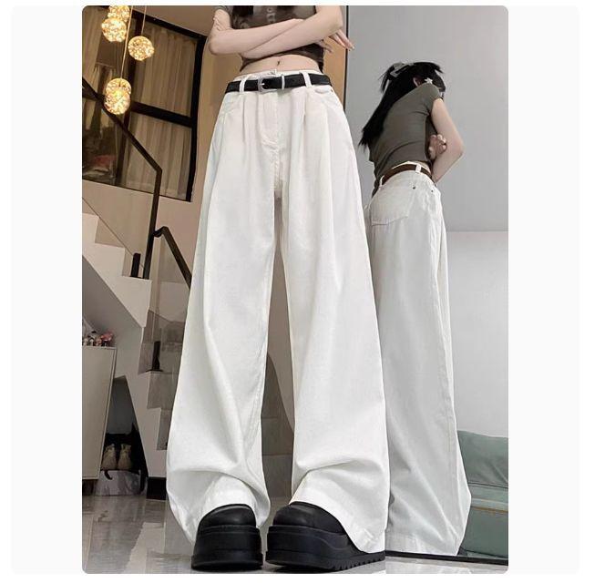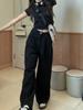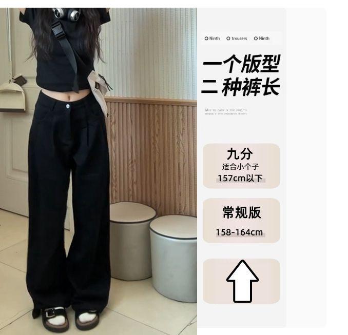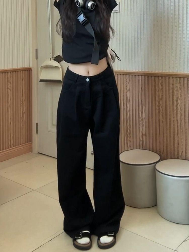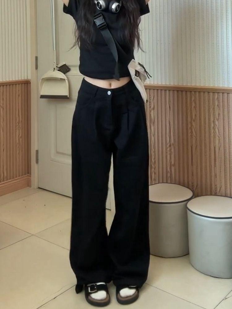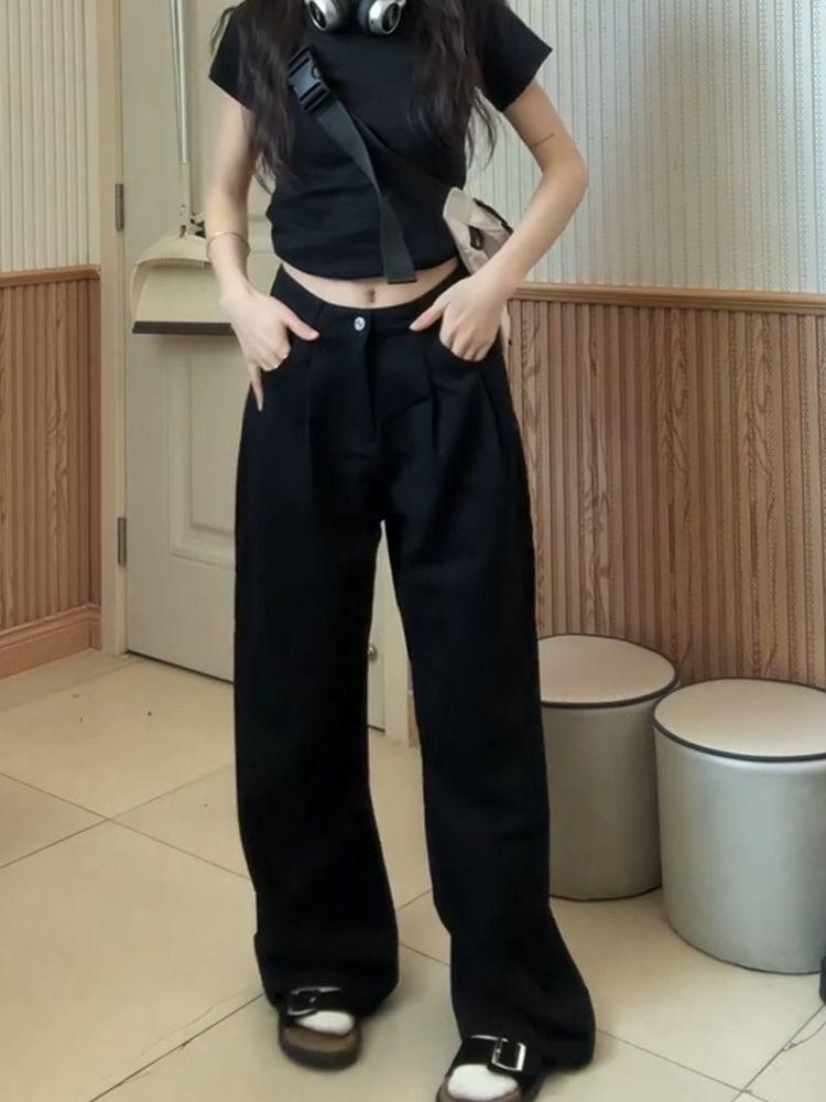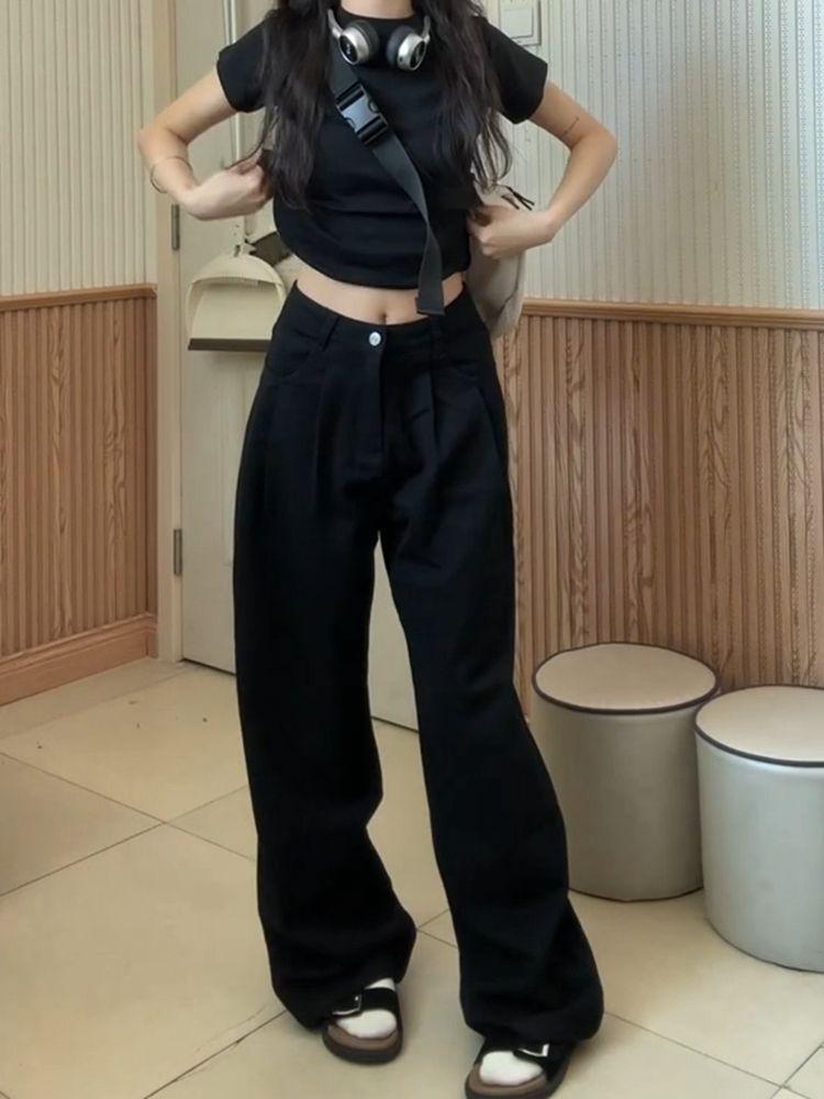 Compra Pantalones anchos plisados negros para mujer, de cintura alta, holgados, adelgazantes, informales, combinables, rectos al por mayor en Joom.pro