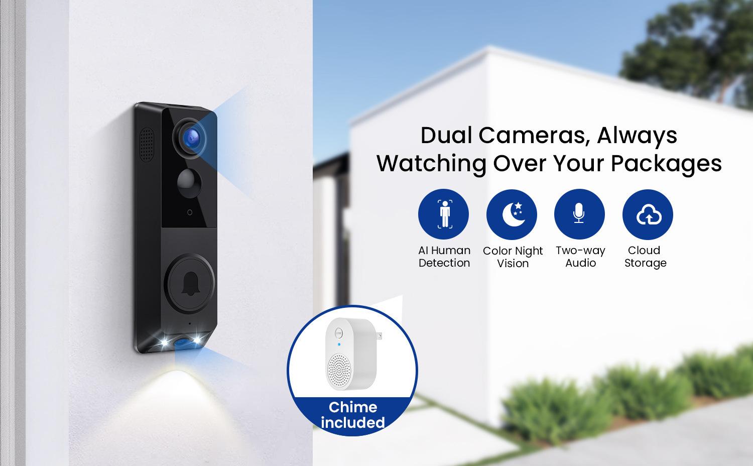 Timbre con cámara y video de doble lente, intercomunicador de voz, monitoreo wifi, visión nocturna HD, timbre inteligente electrónico ojo de gato