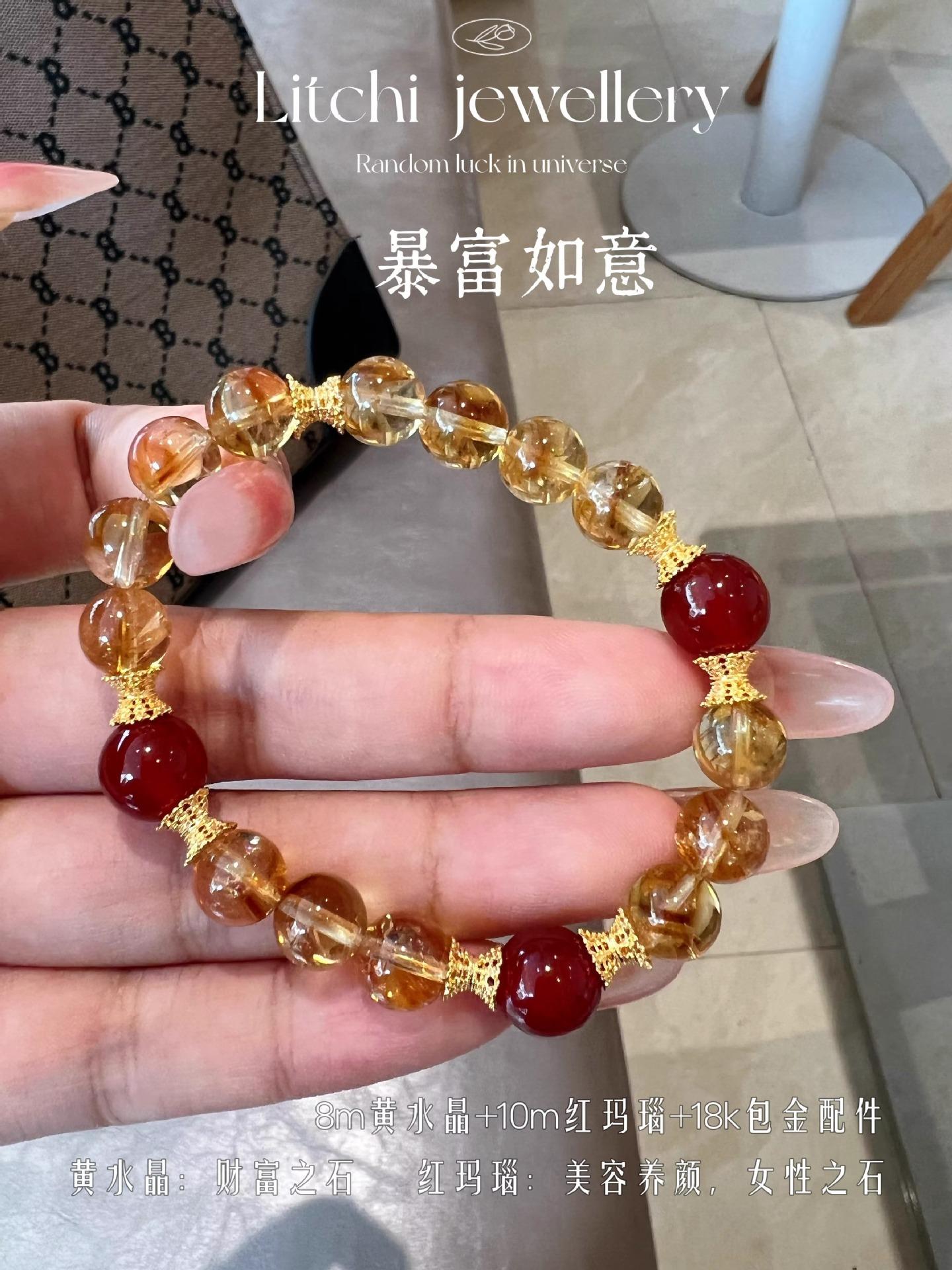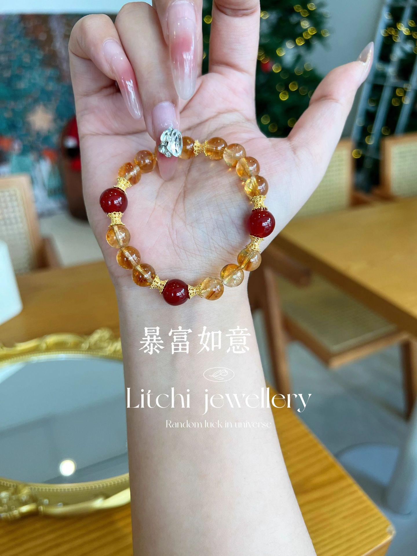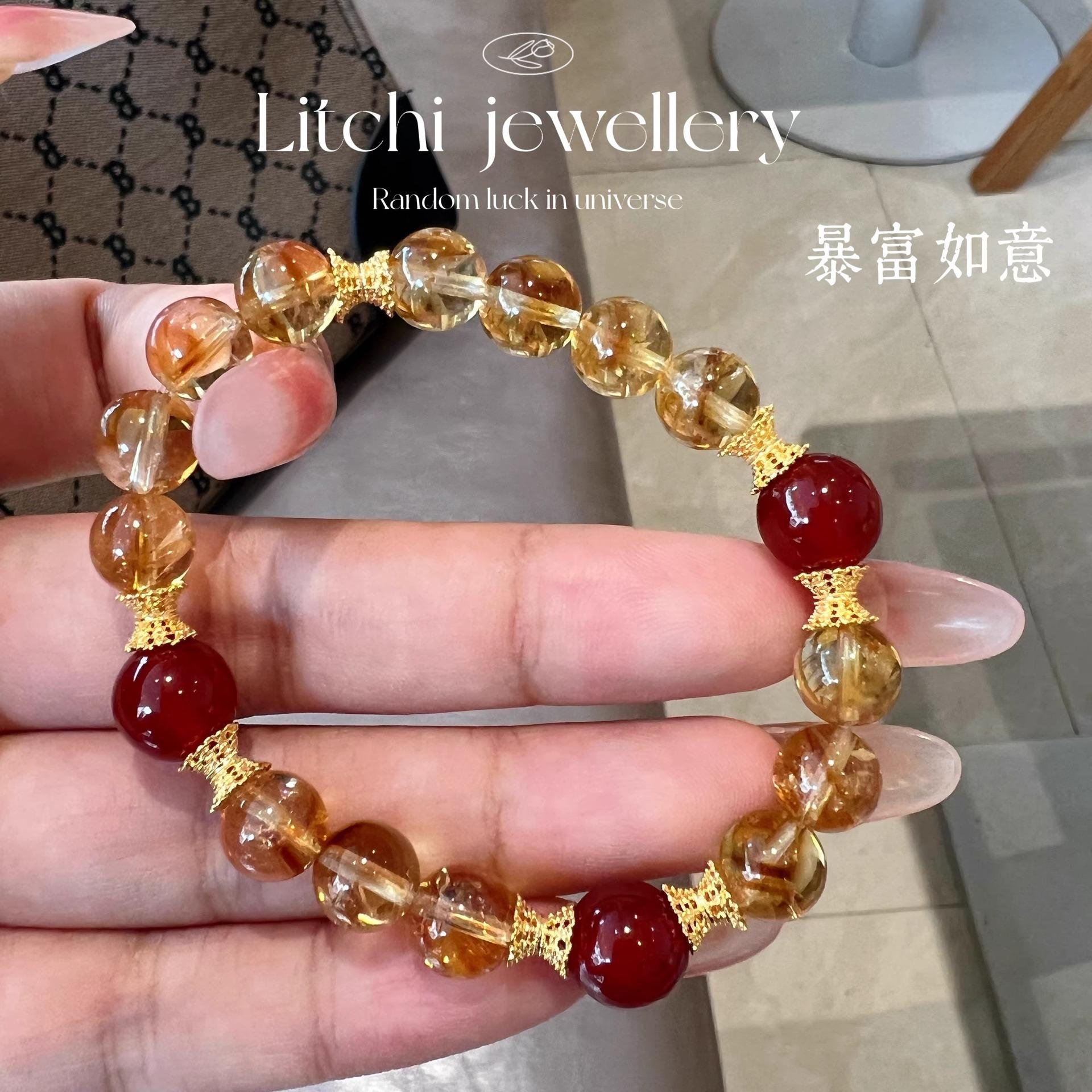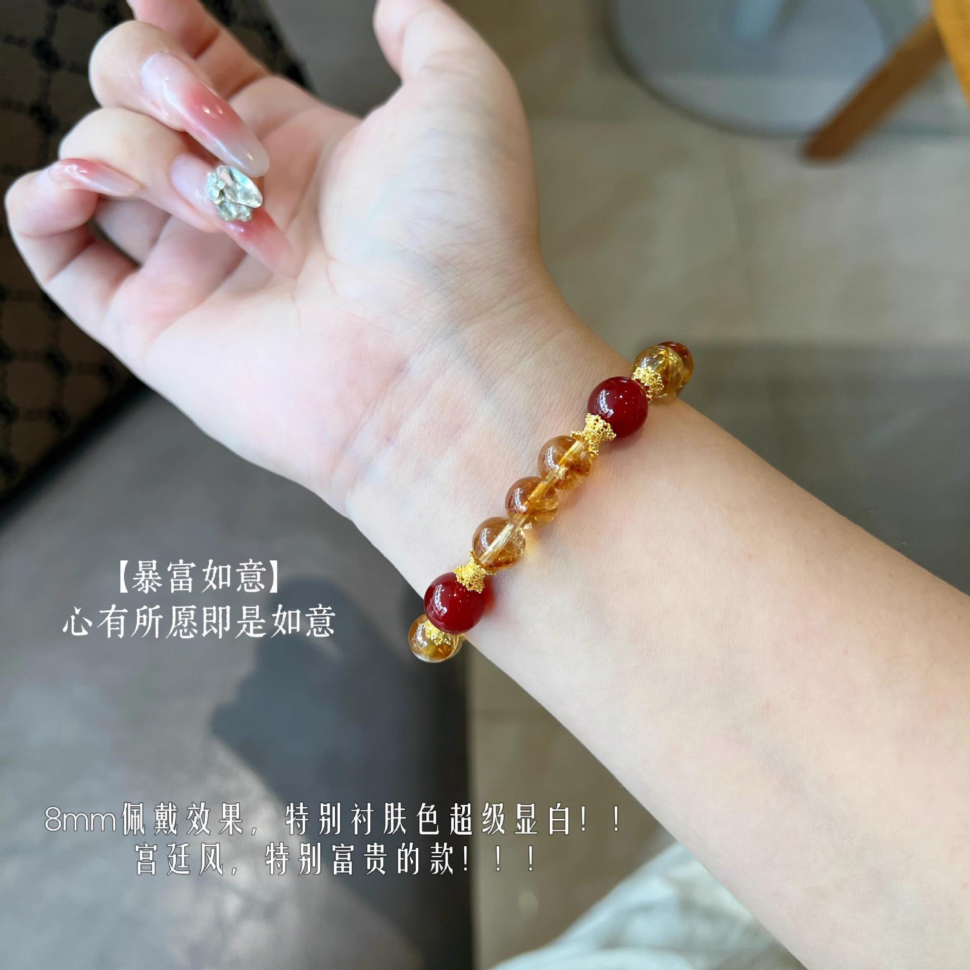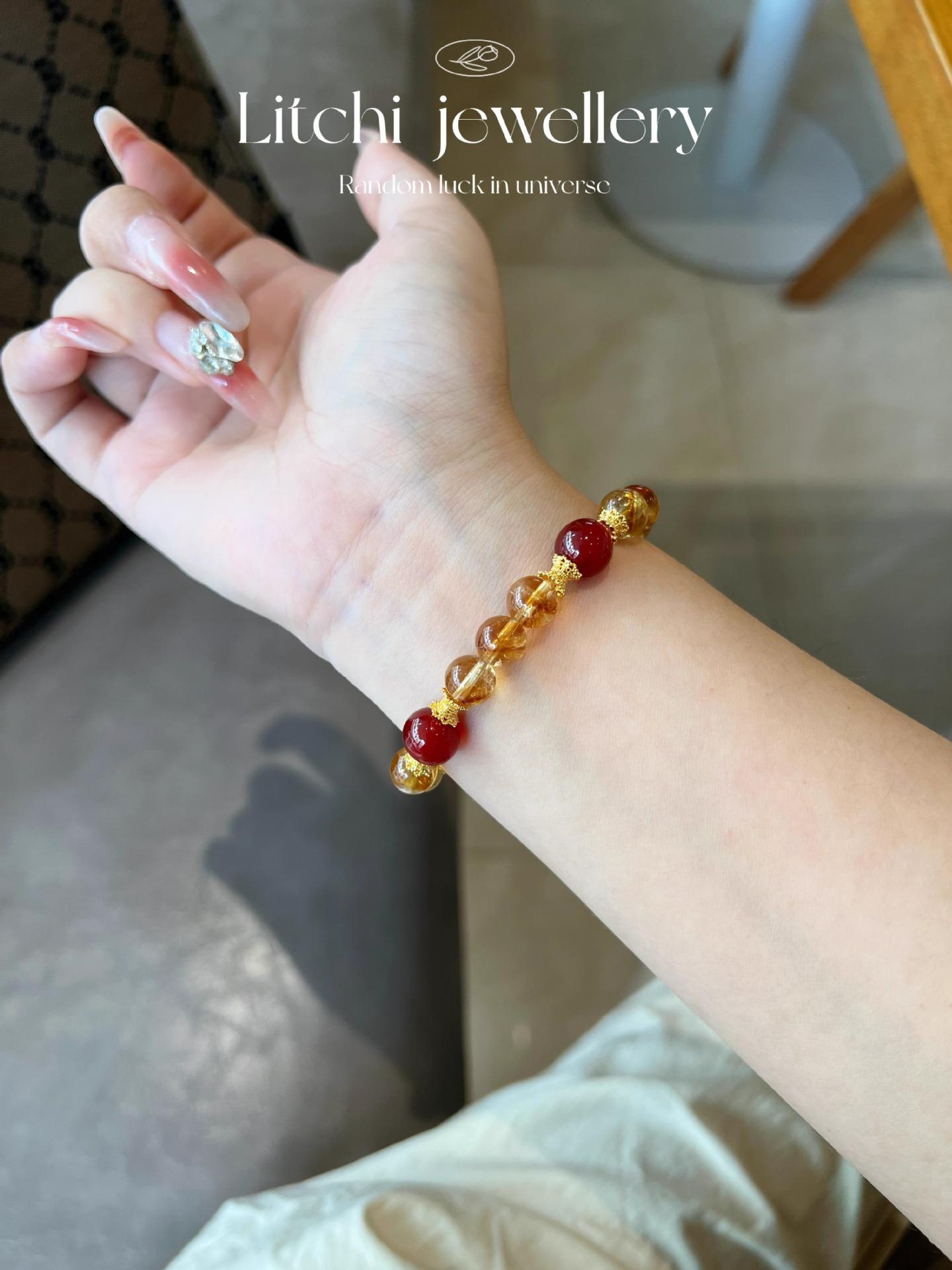 [Ruyi Rico] Pulsera de Cristal Amarillo Citrino Natural en Torre Diseño Original Pulsera de Ágata Roja Regalo para Mujer