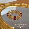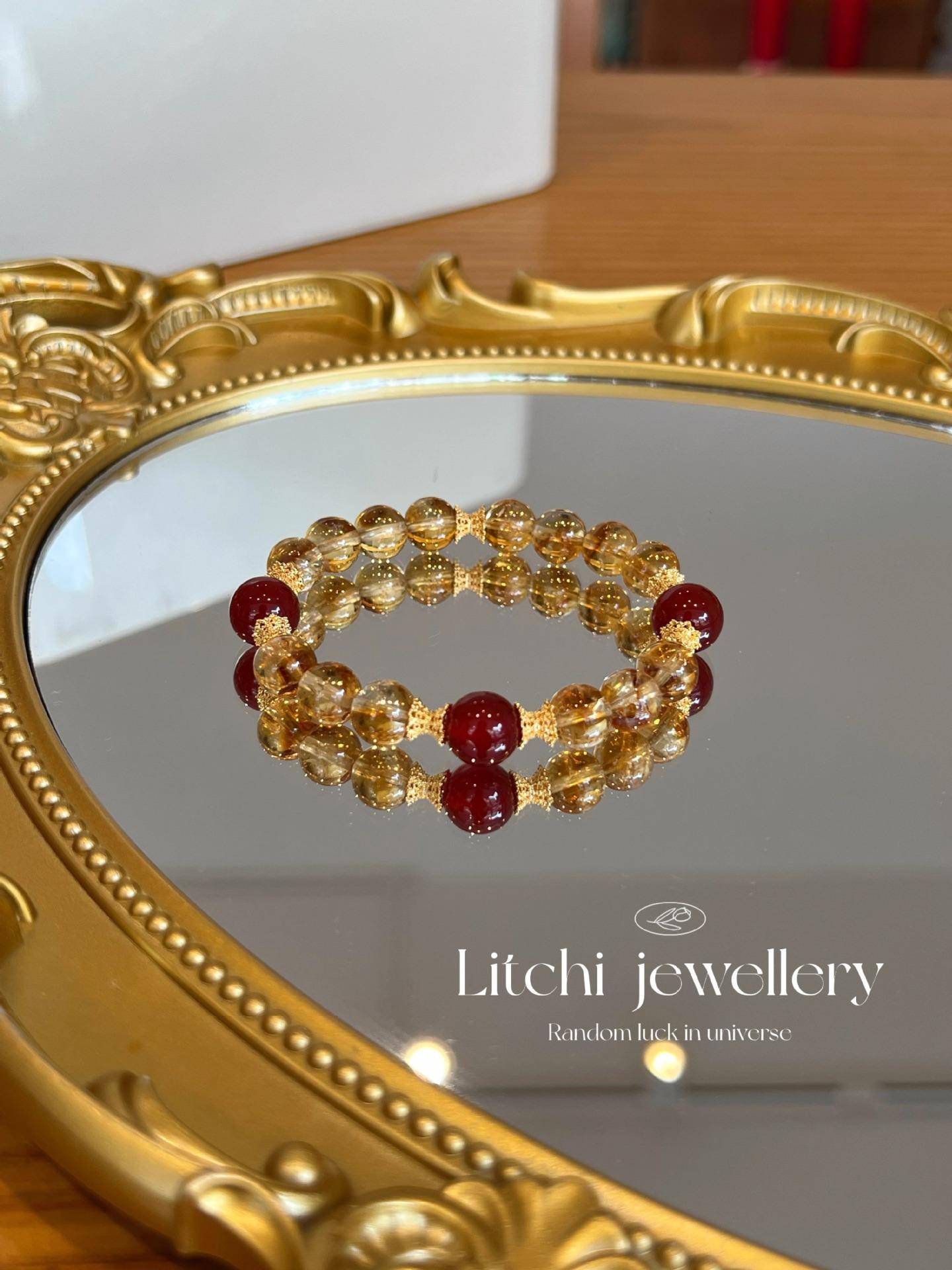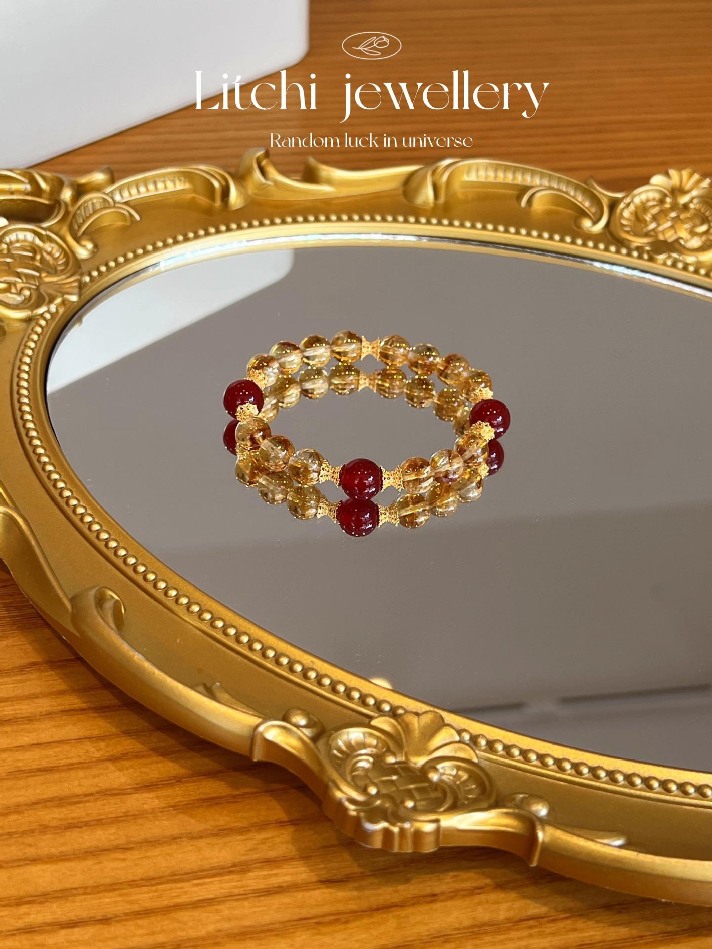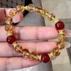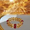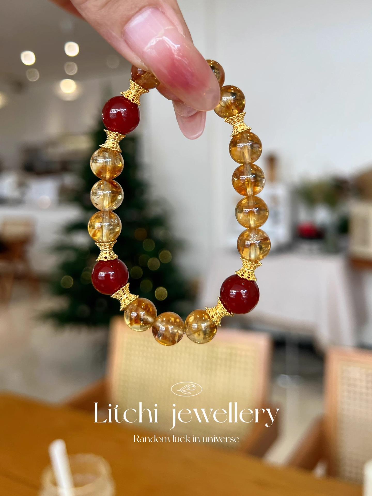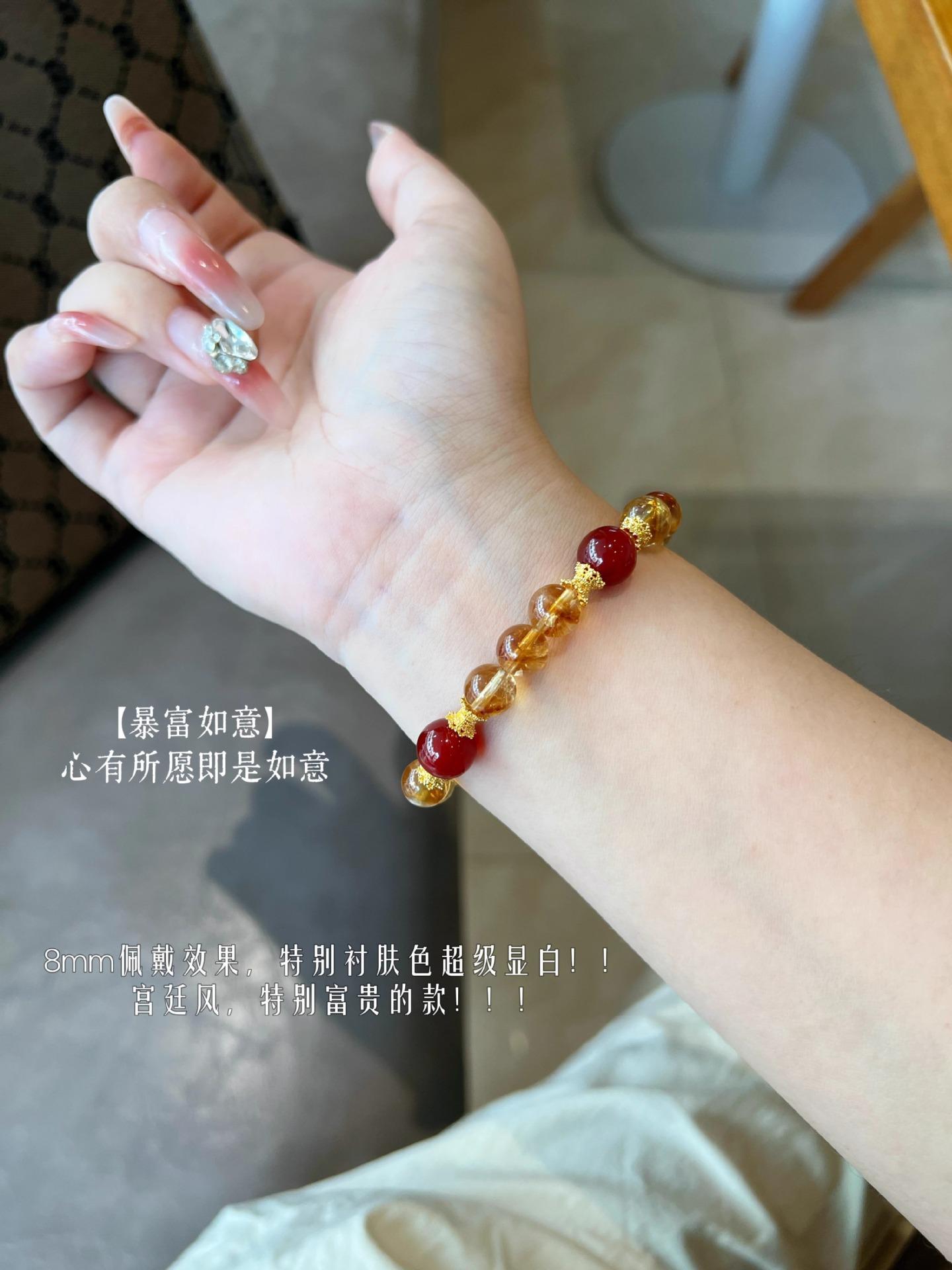 [Ruyi Rico] Pulsera de Cristal Amarillo Citrino Natural en Torre Diseño Original Pulsera de Ágata Roja Regalo para Mujer