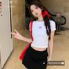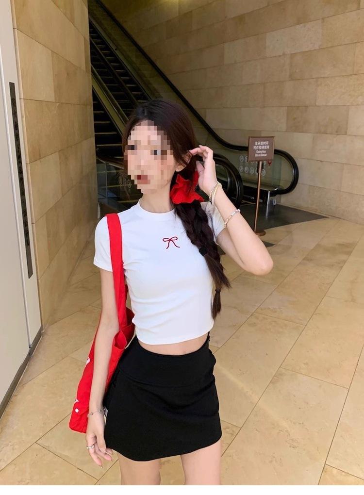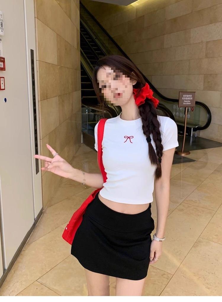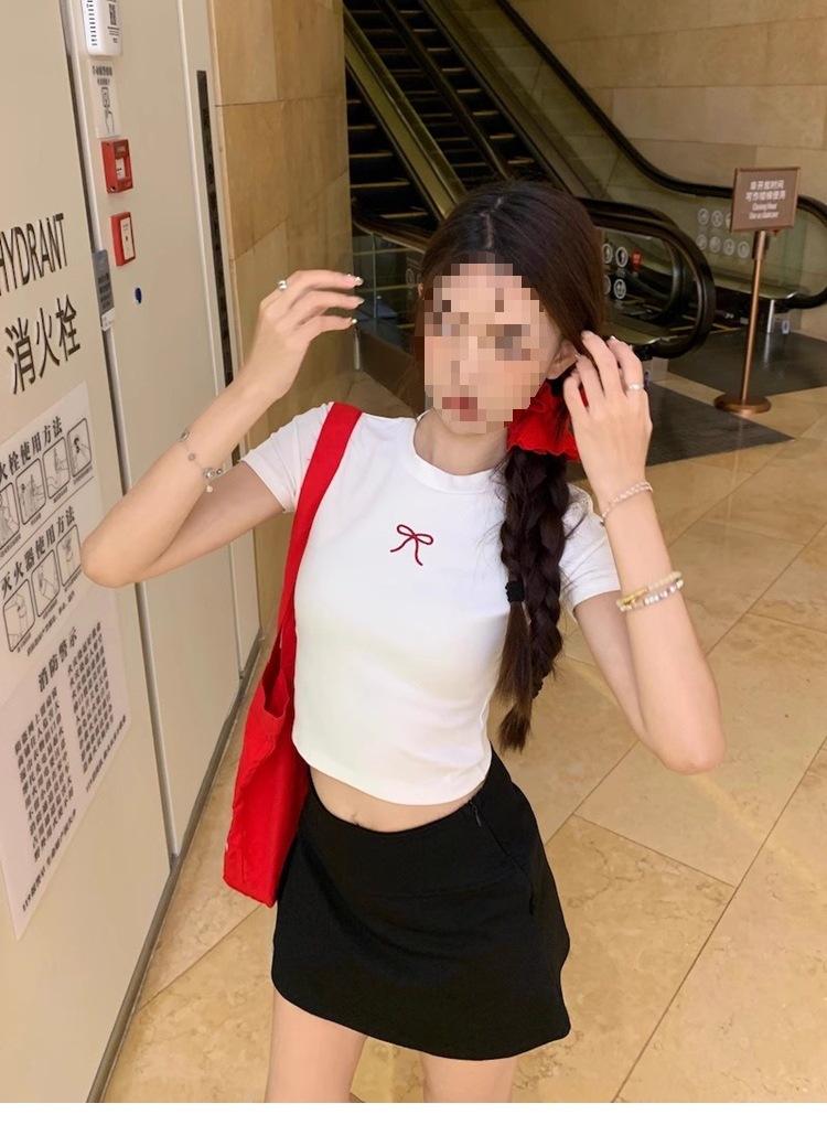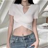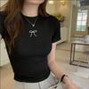 Playera con Lazo para Mujer Verano 2024 Corta con Ombligo Descubierto Sexy Spice Girl Manga Corta Ajustada Combinable Top de Color Puro