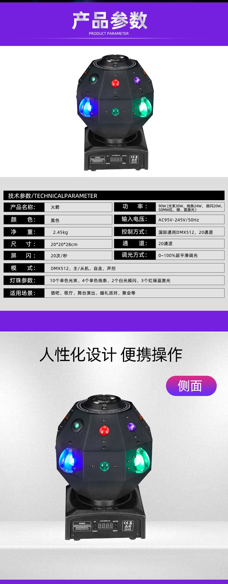 Luces de escenario de cohete al por mayor, barra de discoteca, luz de color, luz suave, sala de karaoke KTV, luz láser giratoria, flash