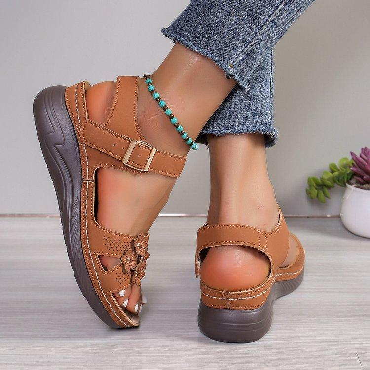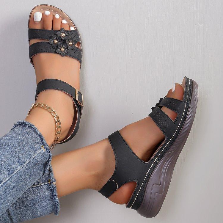 Comercio Exterior Transfronterizo Talla Grande 2024 Verano Nuevas Sandalias de Cuña Sandalias Planas de Flores para Mujer para Exterior Sandalias de Suela Gruesa