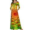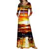 Nuevo Vestido Largo de Manga Larga con Cuello Redondo Europeo y Americano, Estampado Viral, Verano Suelto Casual para Mujer Talla Grande