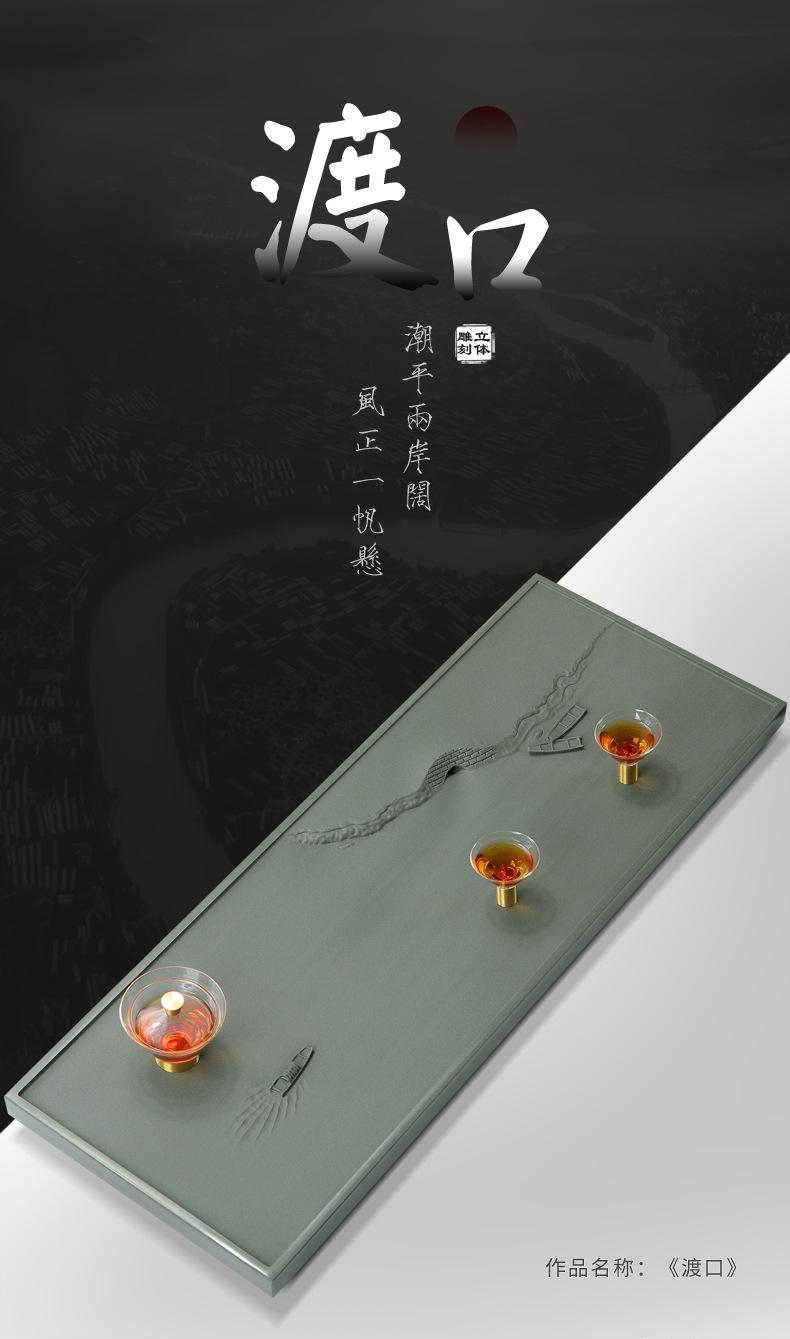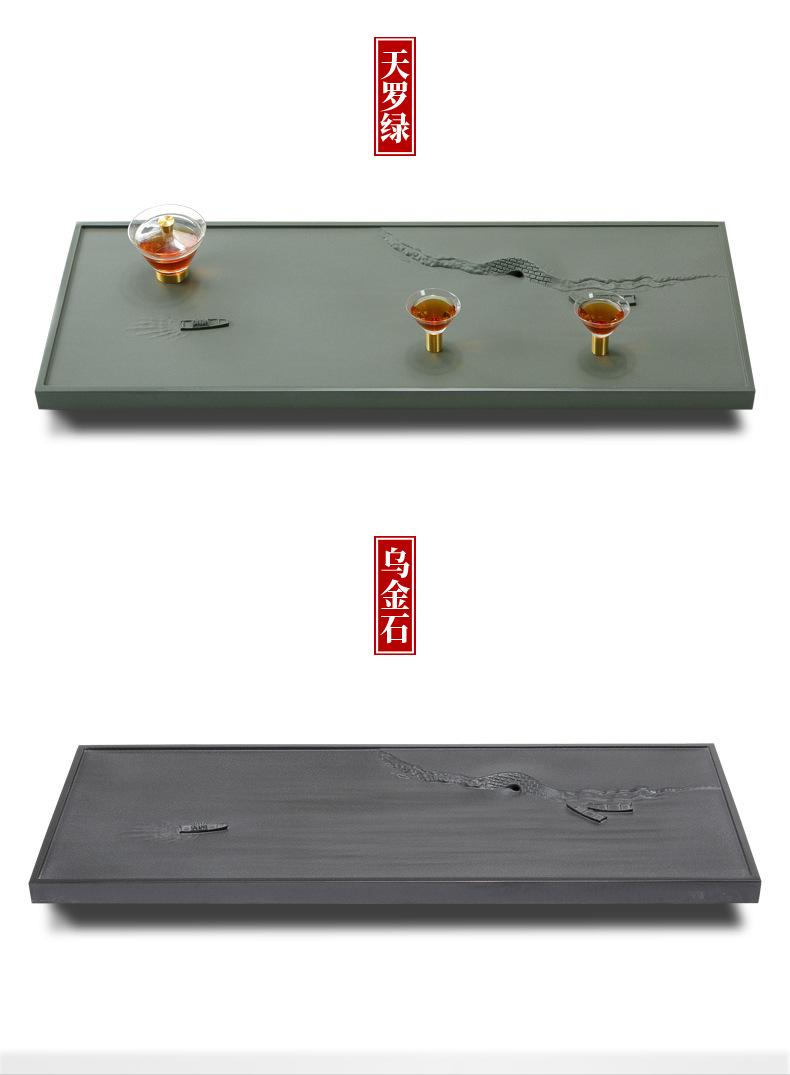 Bandeja de Té Natural Entera de Oro Negro y Piedra de Alta Gama Repujada para Hogar Mesa de Té Grande Tianluo Piedra Verde Juego de Té Pizarra Mar de Té